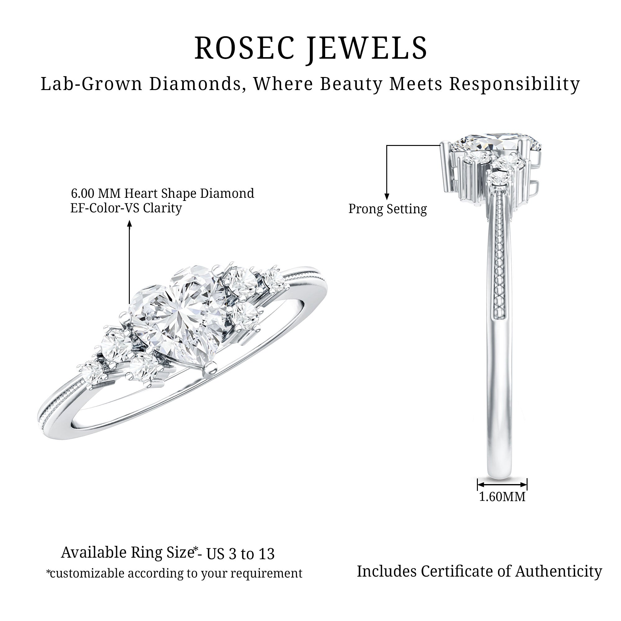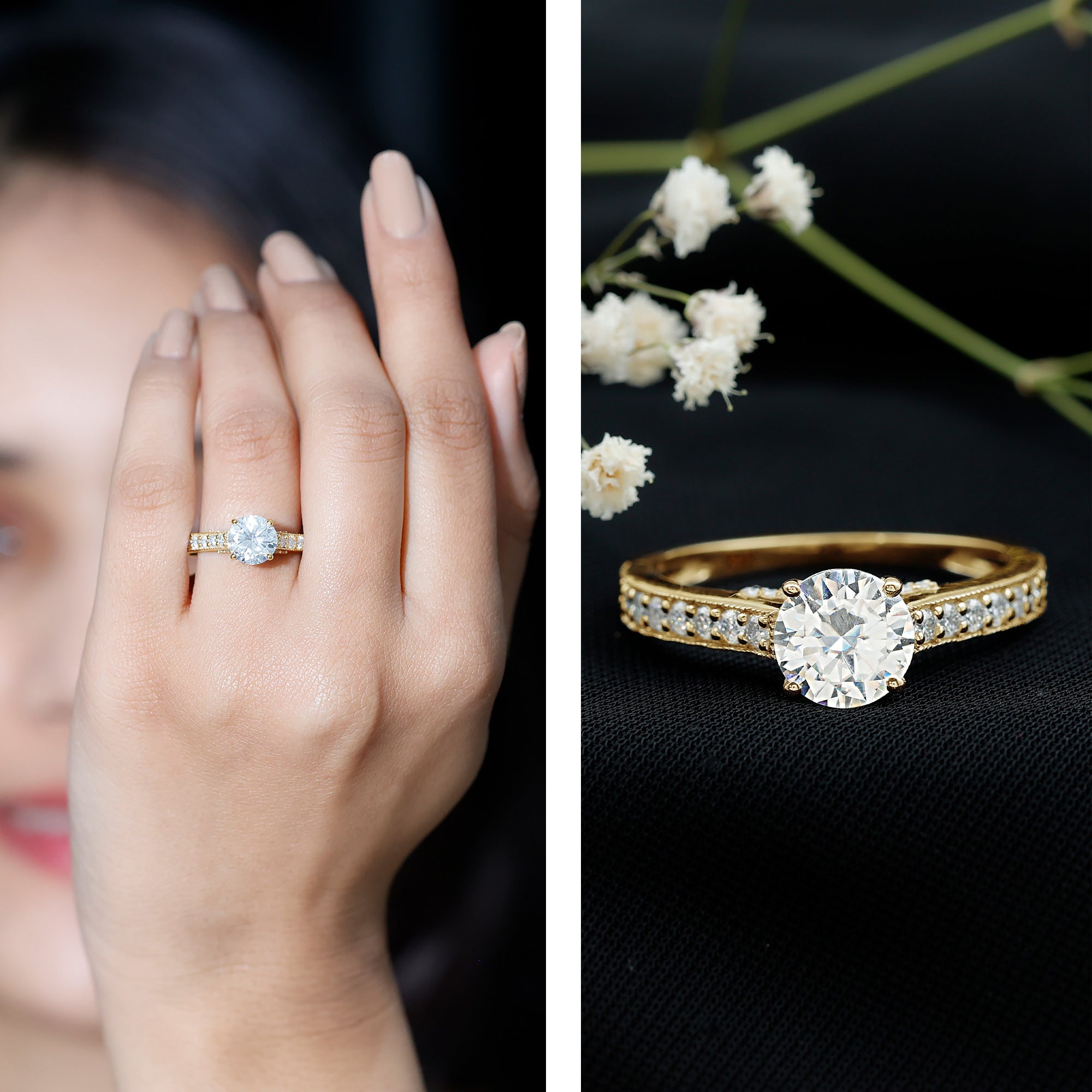 The Center Stone could be of the most traditional round shape or be on the fancier end of the spectrum (pear, marquise, etc.) or even ooze a vintage vibe (Asscher, emerald, etc). You’d be surprised to note what big a difference the shape plays in defining the aesthetics of your Solitaire Ring. The options are endless and everything ultimately boils down to your preference.