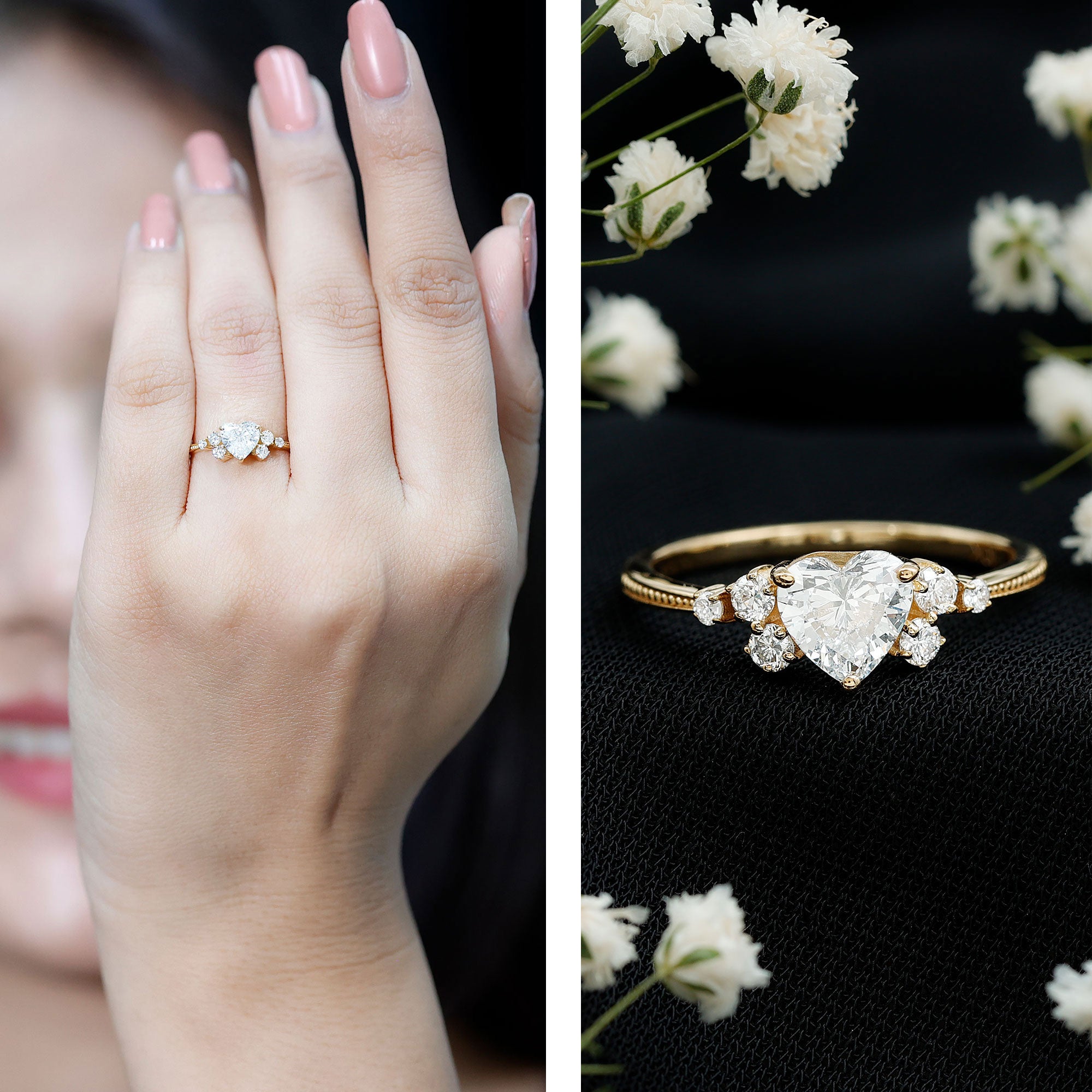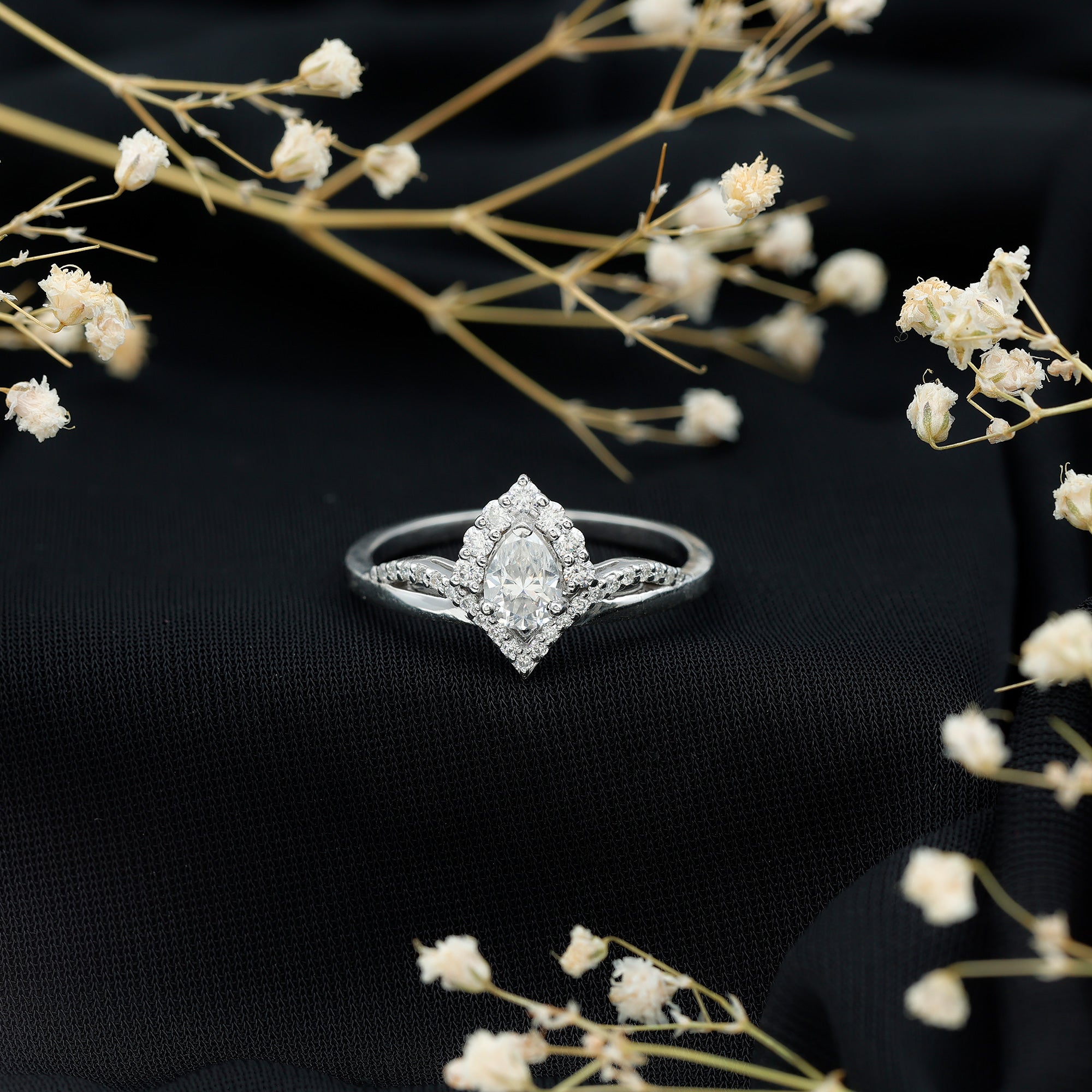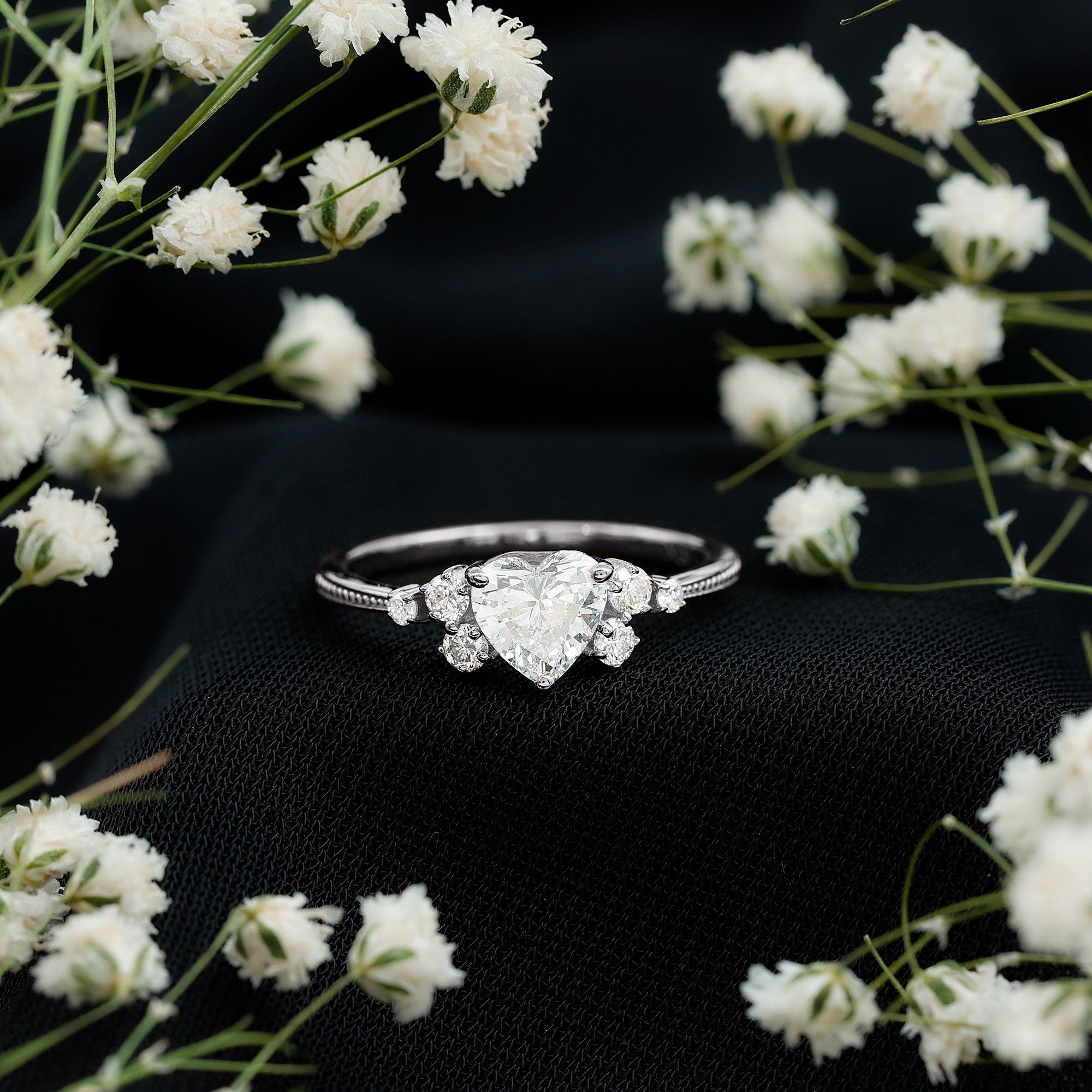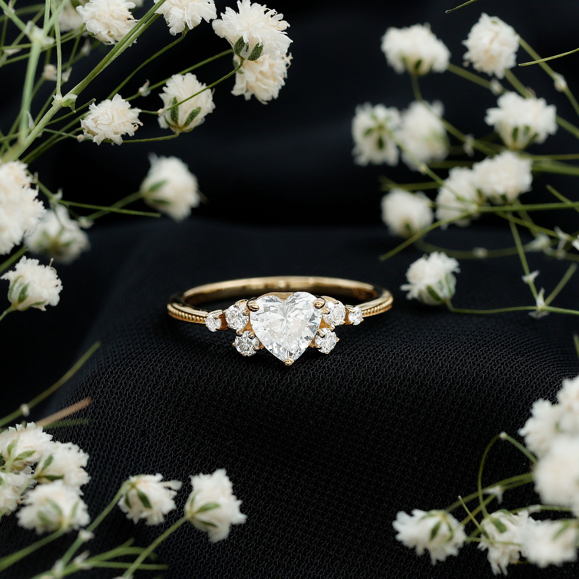 Wish to know a little secret? Not only does it sparkle at its best, but also deceives your eye by offering the illusion of a bigger center stone. So, you could totally take it to mean that it offers you the best of both worlds, making it one of the most unique gemstone rings for women out there!
