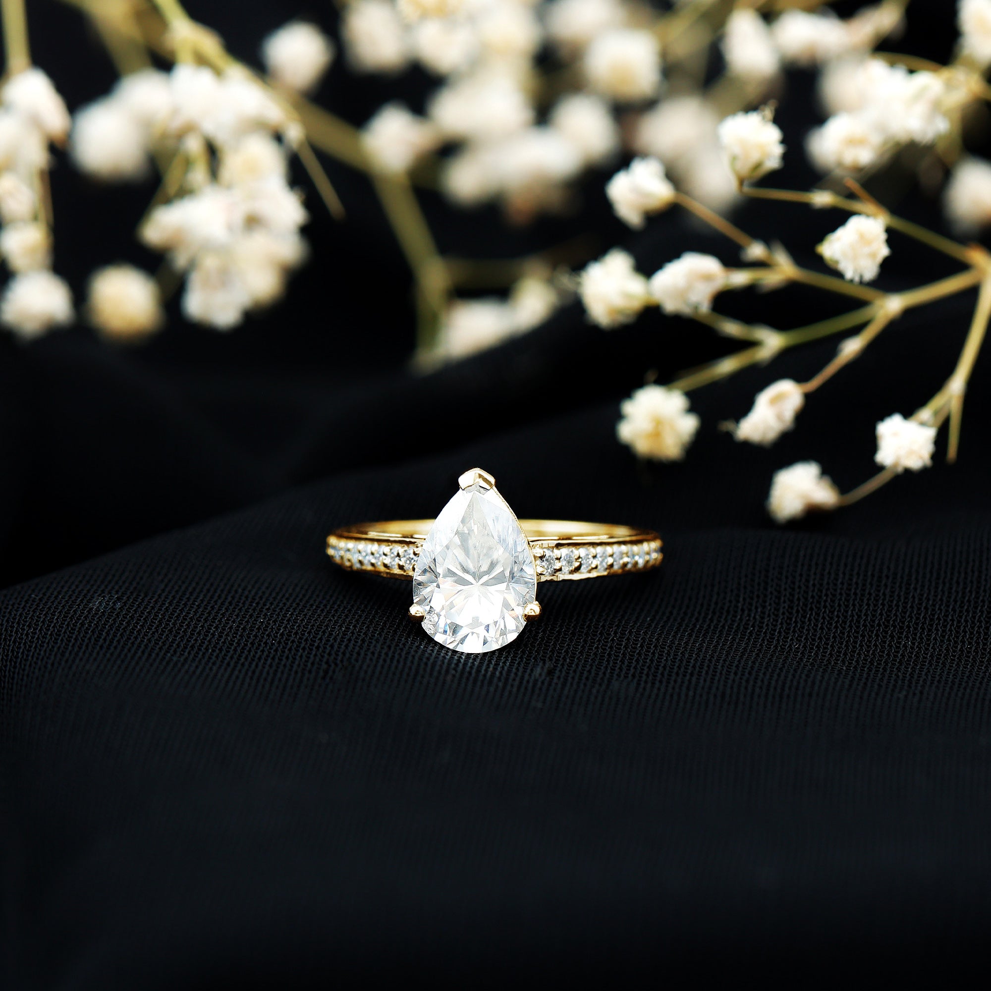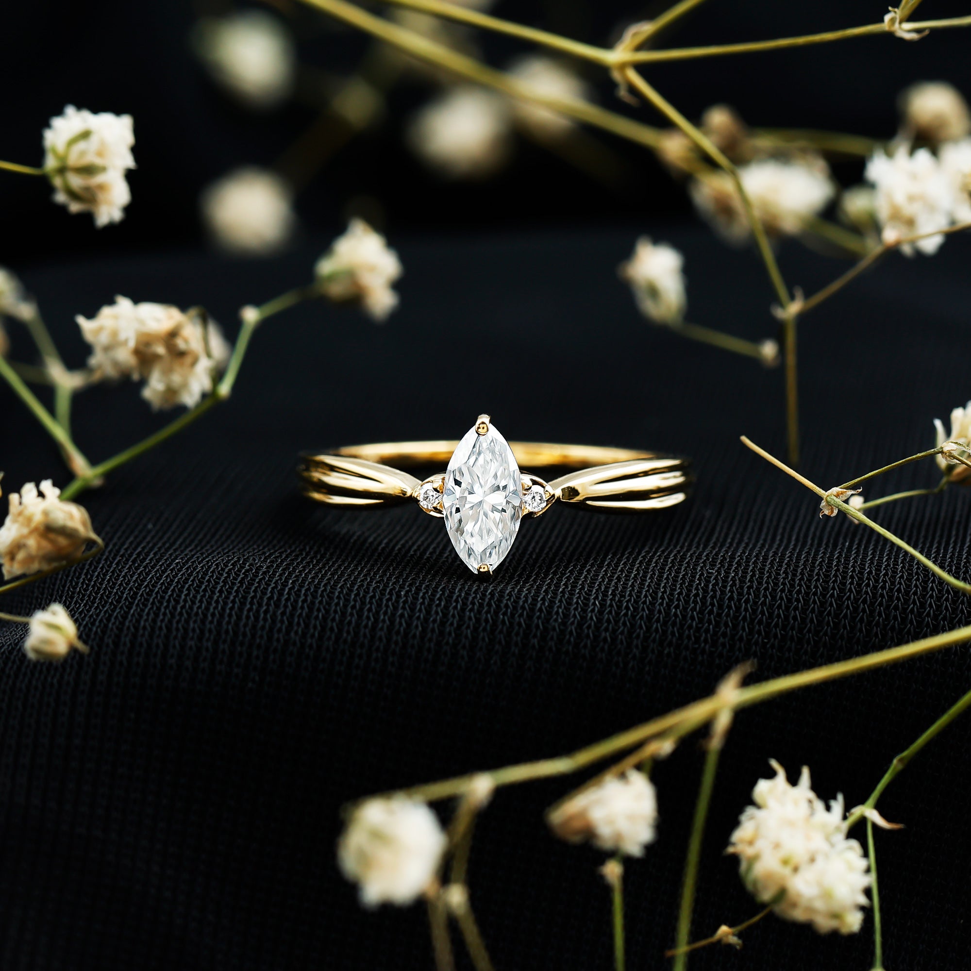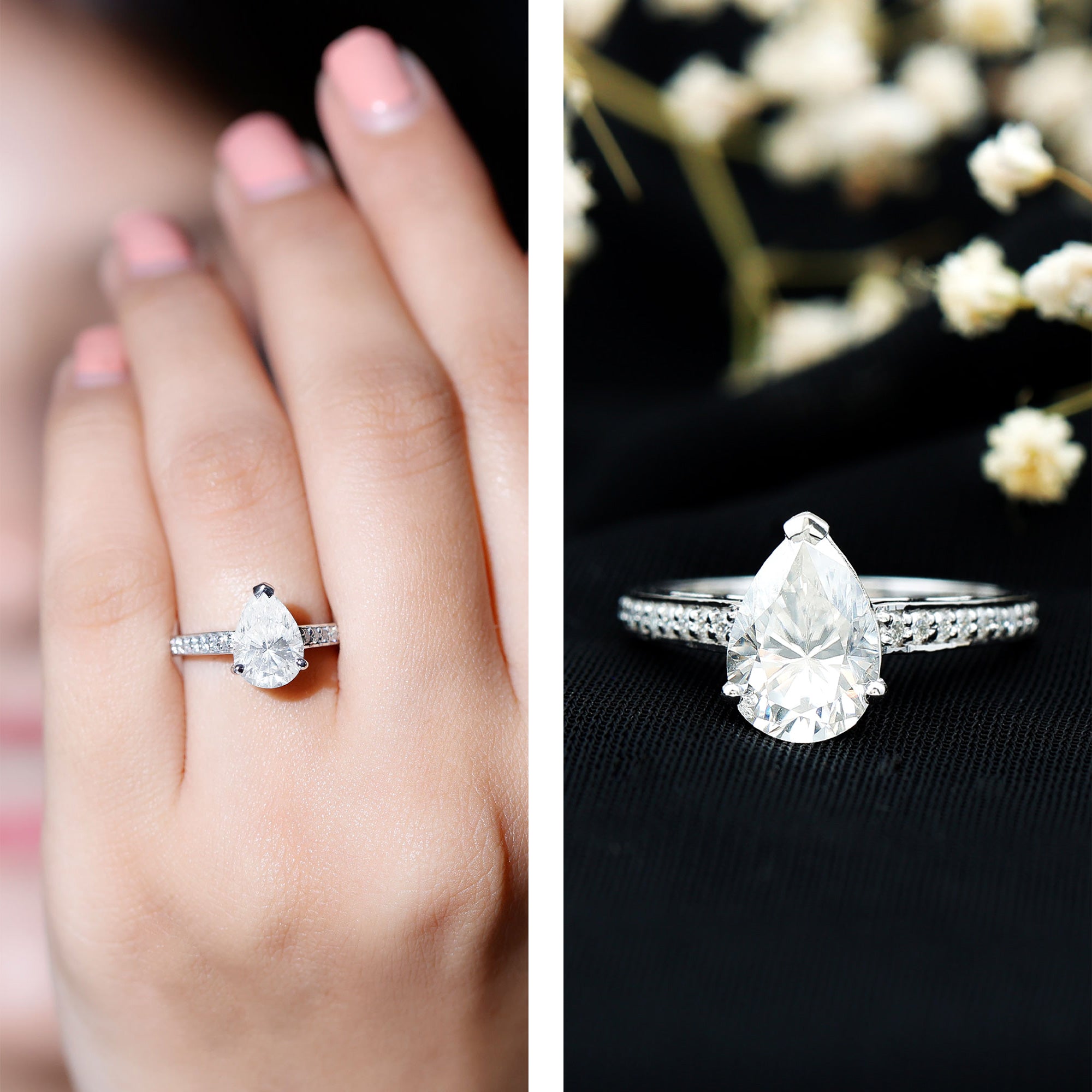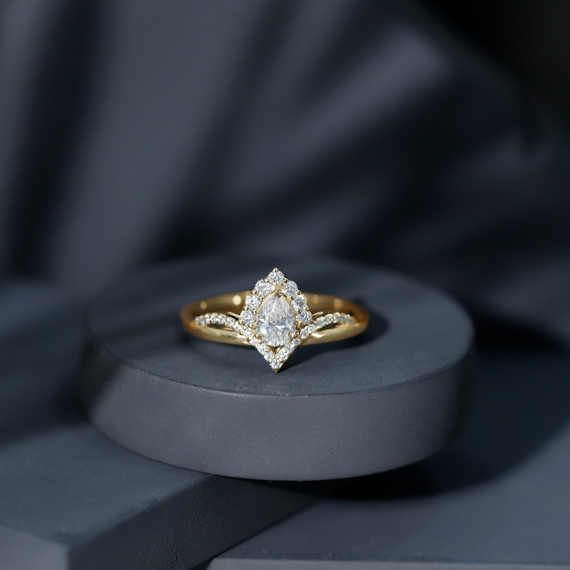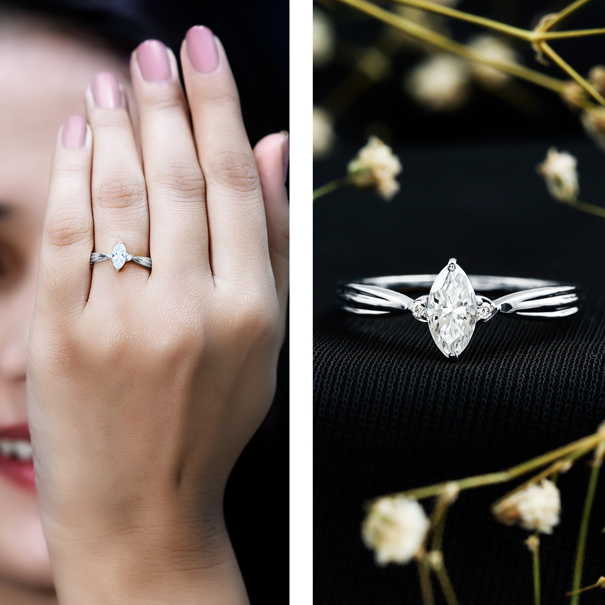 Wish to know a little secret? Not only does it sparkle at its best, but also deceives your eye by offering the illusion of a bigger center stone. So, you could totally take it to mean that it offers you the best of both worlds, making it one of the most unique gemstone rings for women out there!