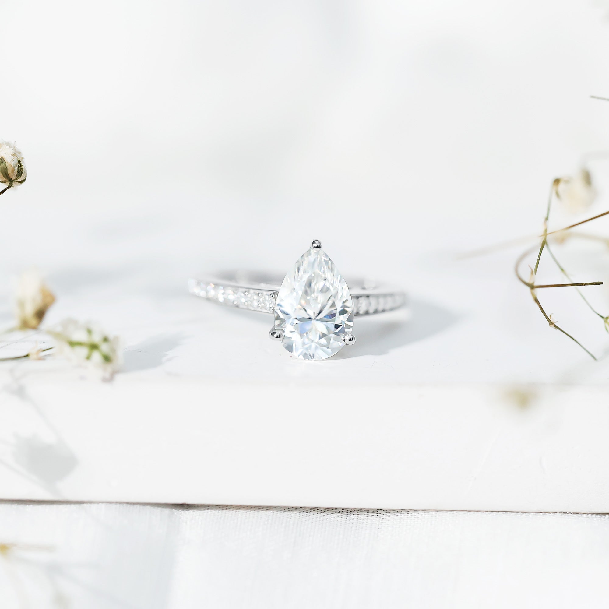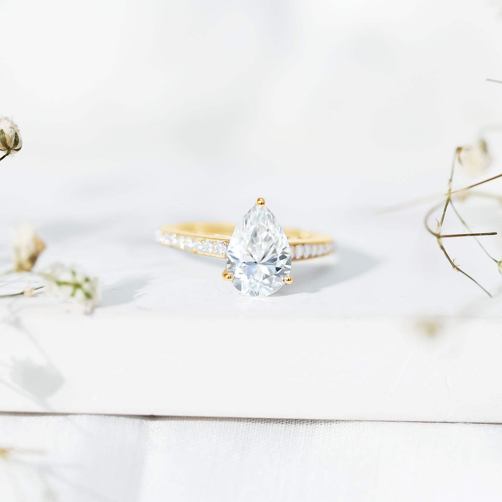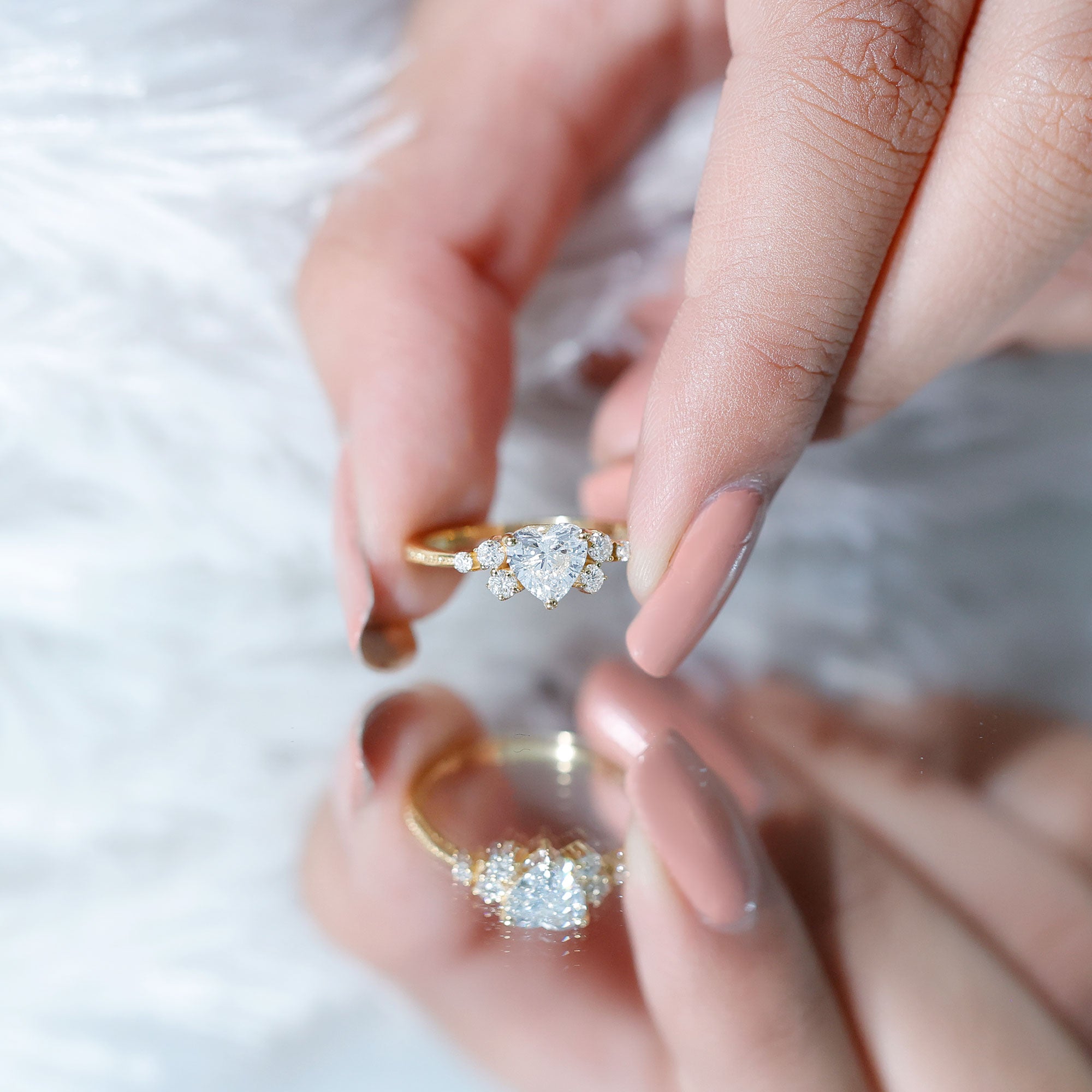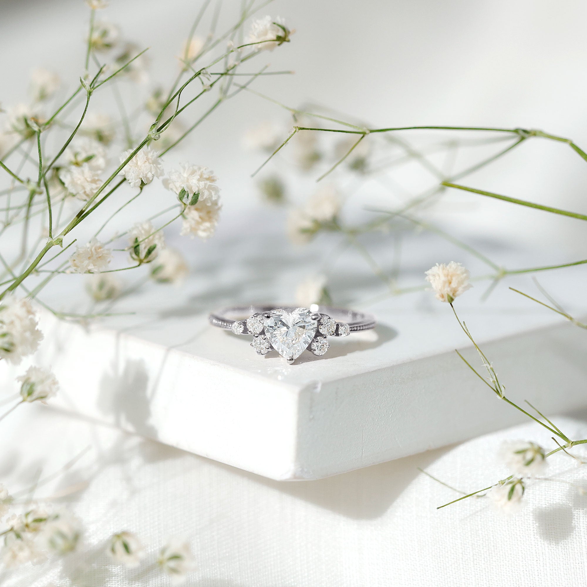Wish to know a little secret? Not only does it sparkle at its best, but also deceives your eye by offering the illusion of a bigger center stone. So, you could totally take it to mean that it offers you the best of both worlds, making it one of the most unique gemstone rings for women out there!