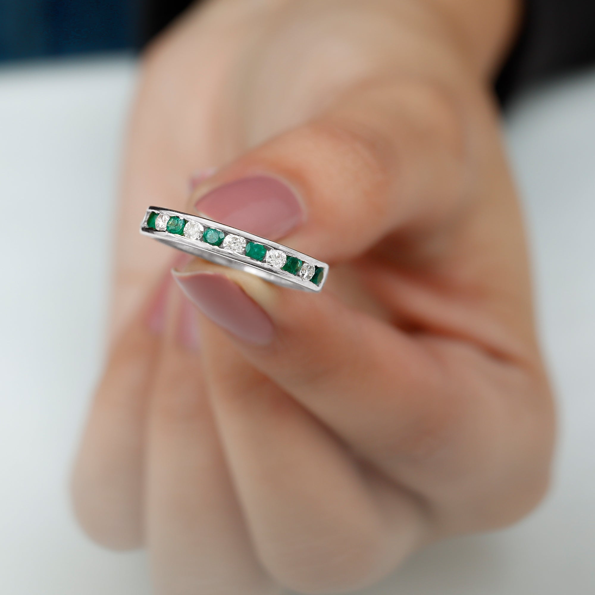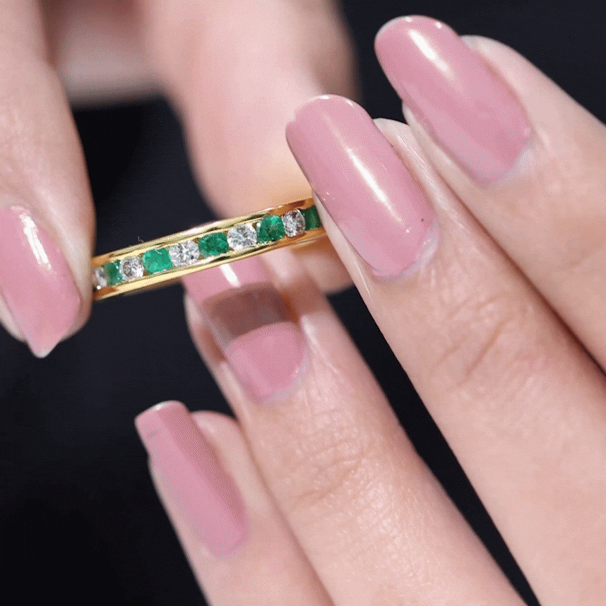 Typically, it is a type of metal ring that features gemstones set in a continuous band around the circumference of the ring. If you’re seeking something simple to flaunt regularly, a band with subtle colored stones such as Morganite, Aquamarine, Moissanite, or a Classic 14K White Gold Gemstone Band could be the one. While if you’re a little more fond of a pop of color, deeply hued stones such as Ruby, Blue Sapphire, Emerald etc., or a Yellow or Rose Gold Gemstone Band might do the job right.