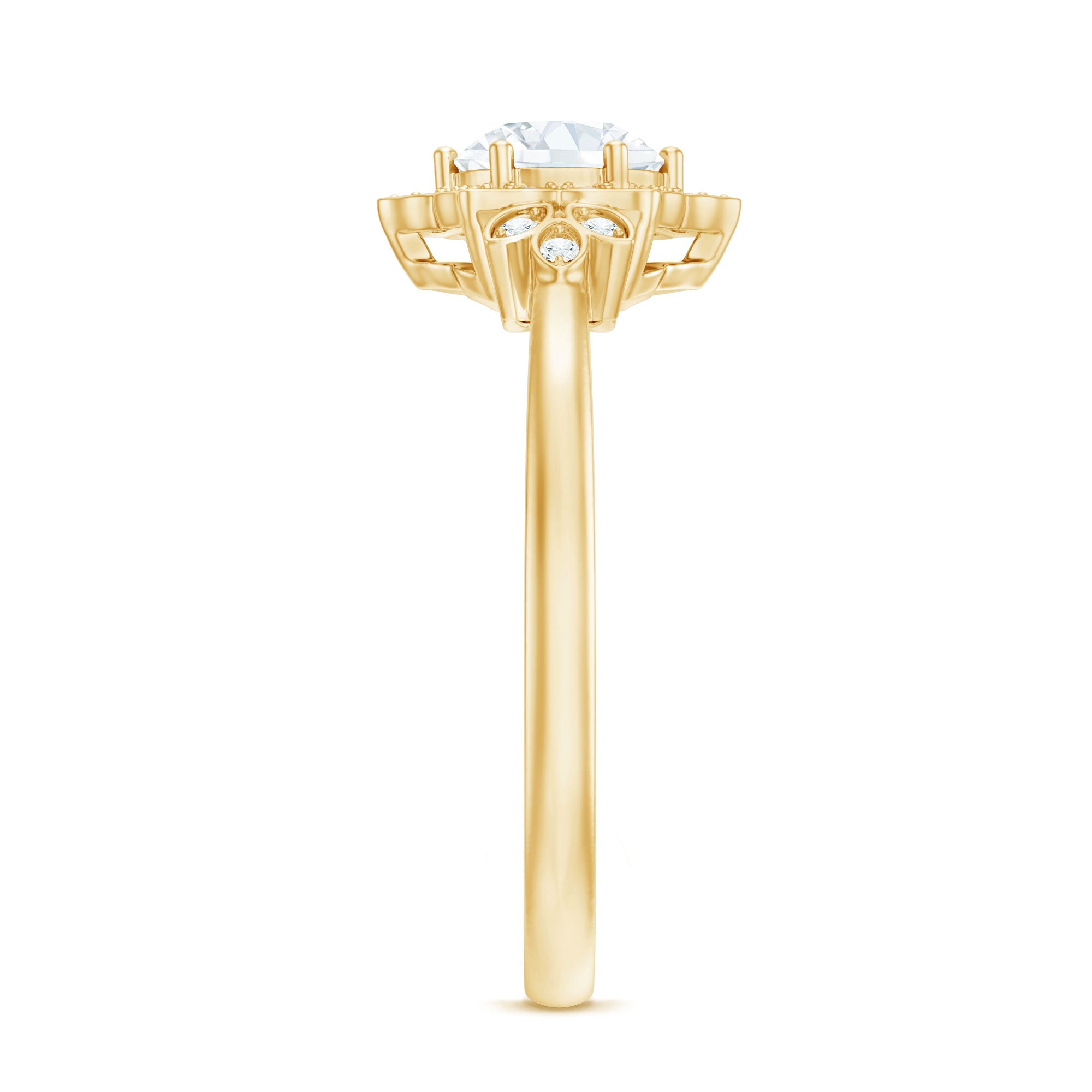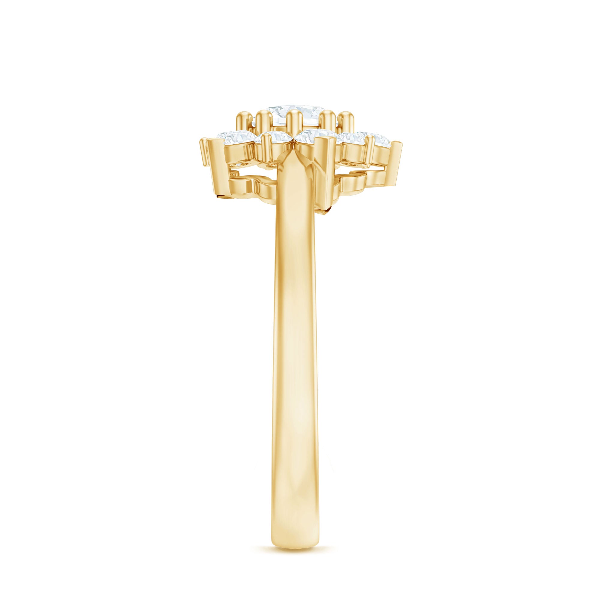 Wish to know a little secret? Not only does it sparkle at its best, but also deceives your eye by offering the illusion of a bigger center stone. So, you could totally take it to mean that it offers you the best of both worlds, making it one of the most unique gemstone rings for women out there!