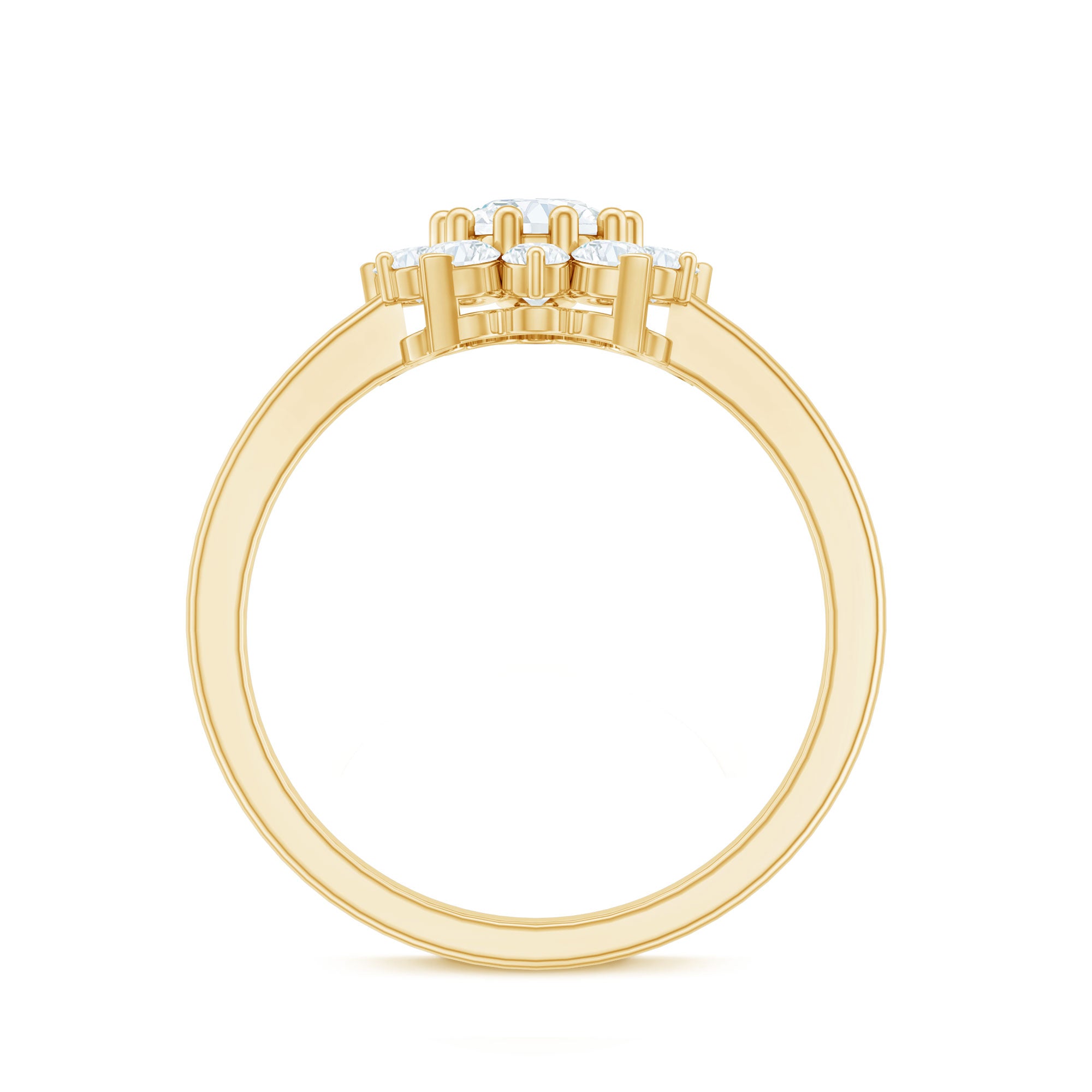 An added layer of sparkle is always a big yes! And that’s practically what drives the appeal for Gemstone Halo Rings. That’s because this style is all about sparkles and is characterized by a row of petite stones (usually diamond or moissanite) that encircle the center stone. Also, a pop of color of a colored gemstone accompanied by brilliance of diamonds/moissanite can get too hard to resist.