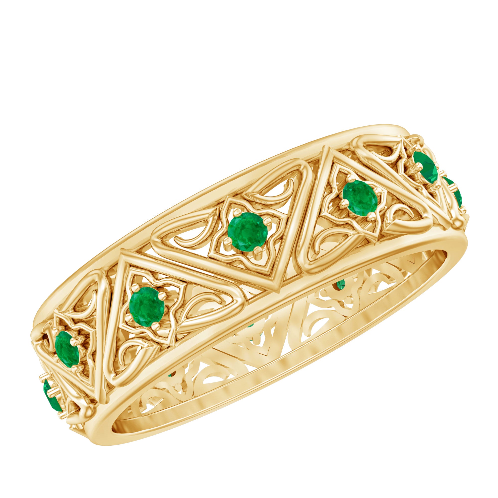 Typically, it is a type of metal ring that features gemstones set in a continuous band around the circumference of the ring. If you’re seeking something simple to flaunt regularly, a band with subtle colored stones such as Morganite, Aquamarine, Moissanite, or a Classic 14K White Gold Gemstone Band could be the one. While if you’re a little more fond of a pop of color, deeply hued stones such as Ruby, Blue Sapphire, Emerald etc., or a Yellow or Rose Gold Gemstone Band might do the job right.