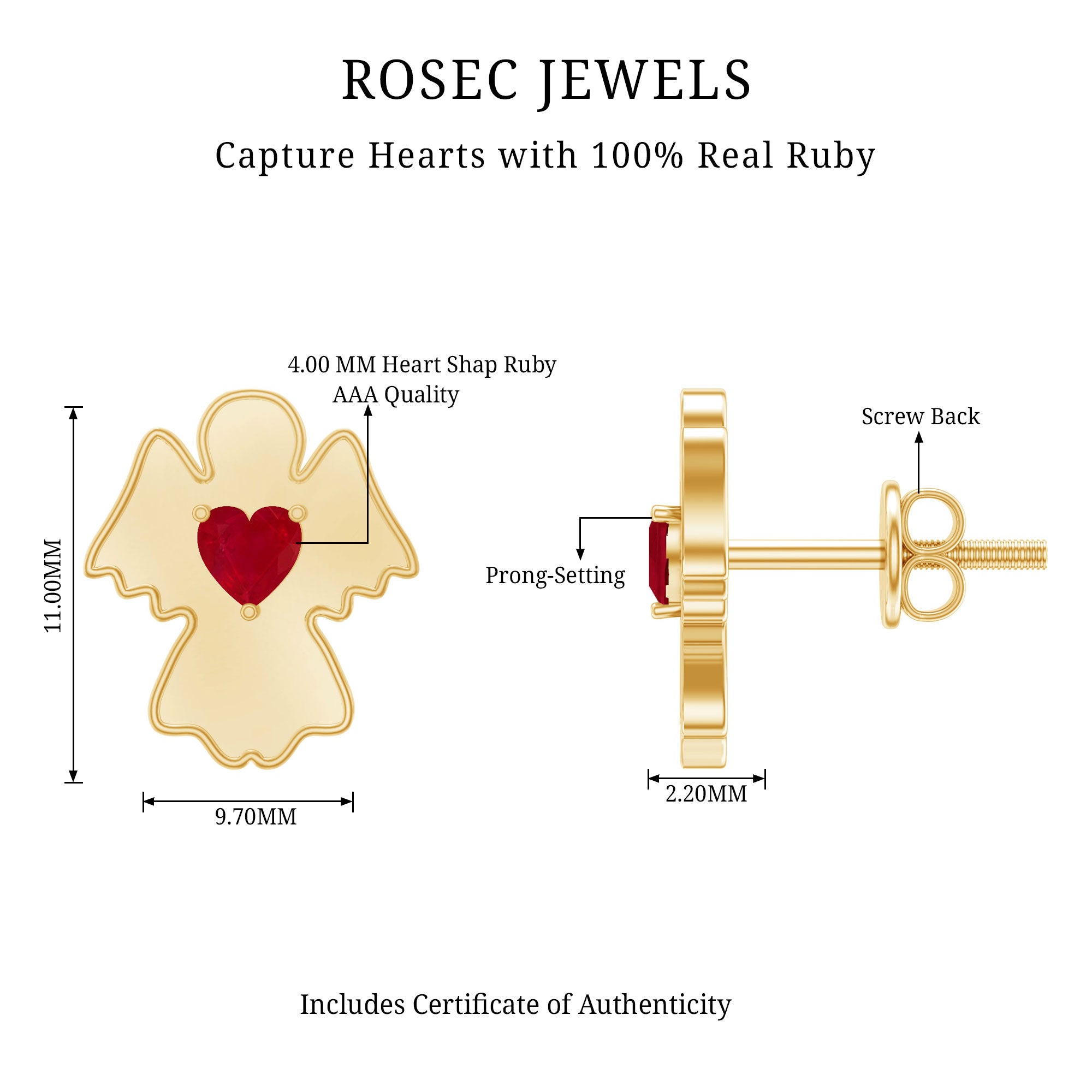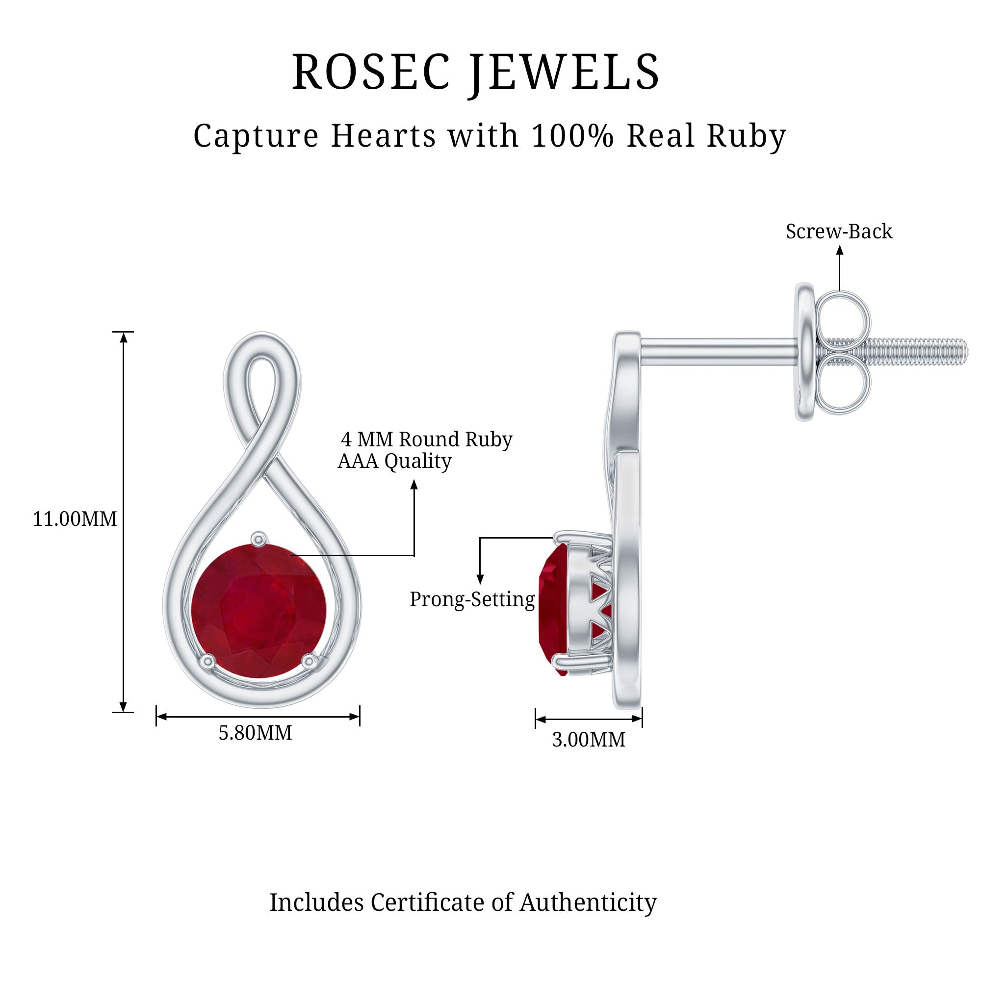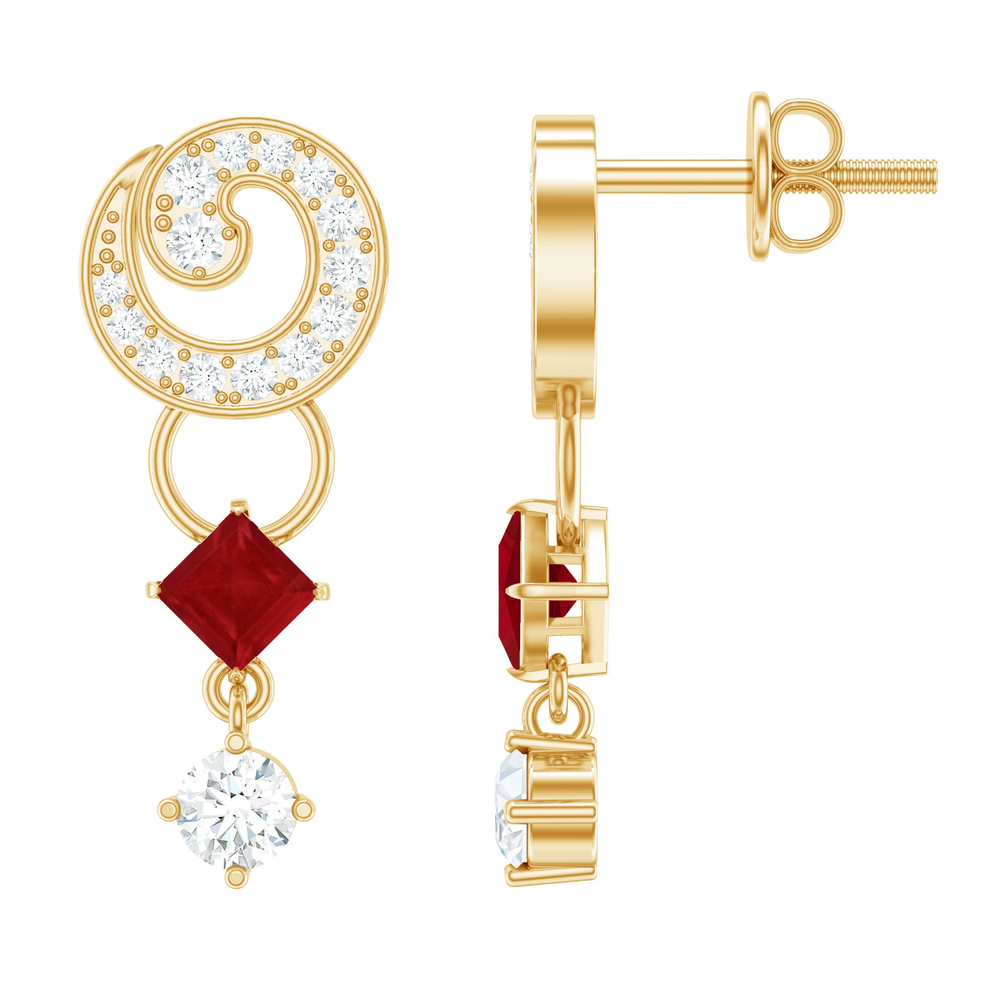 Selecting ruby as the focal point for earrings will be a worthy decision. Being a birthstone for July, Ruby is the true symbol of love, passion, health, and wealth, which also perfect for romantic gifts. This gem is renowned for its captivating deep red hue and ability to infuse passion into the wearer's life, ruby is capable of garnering instant attention.