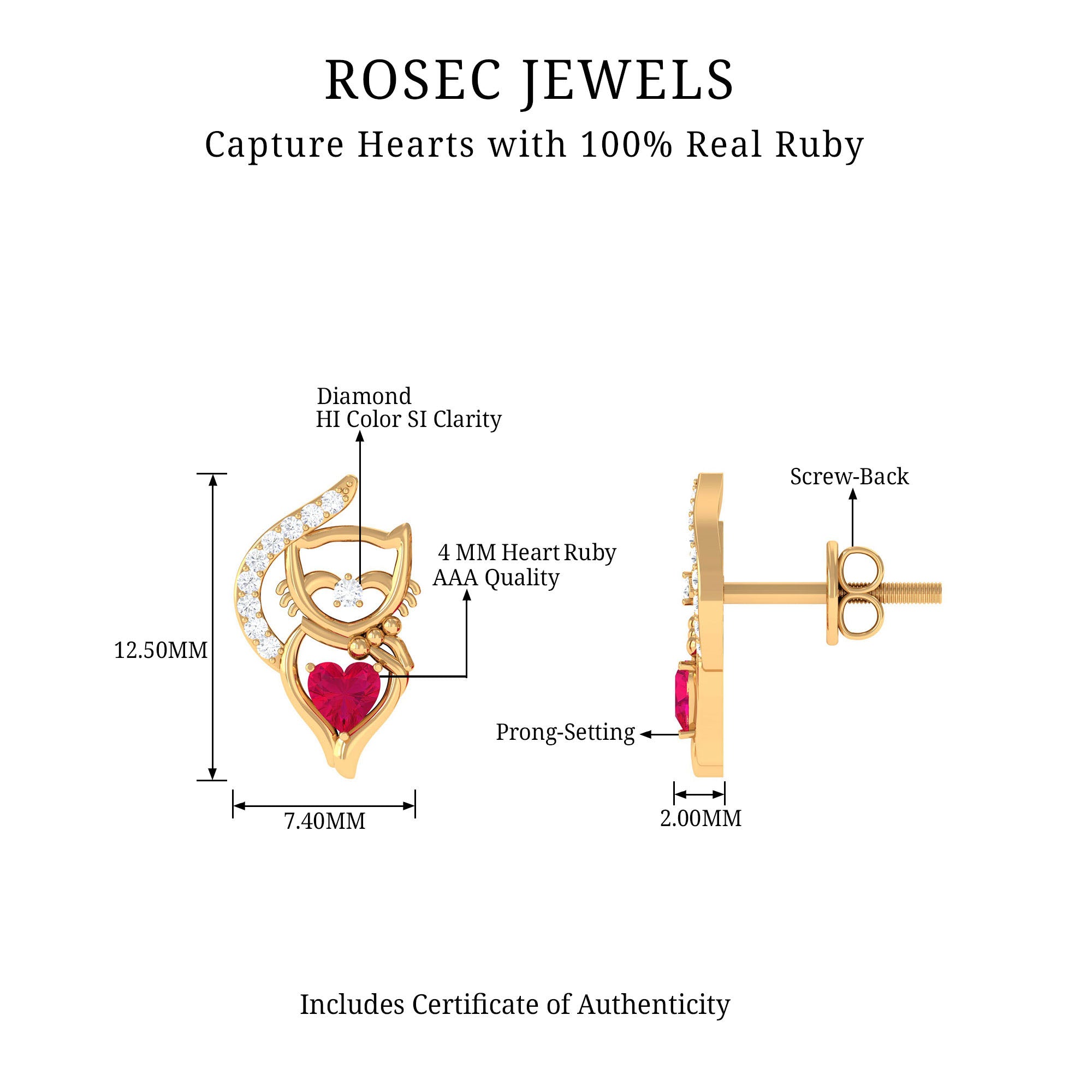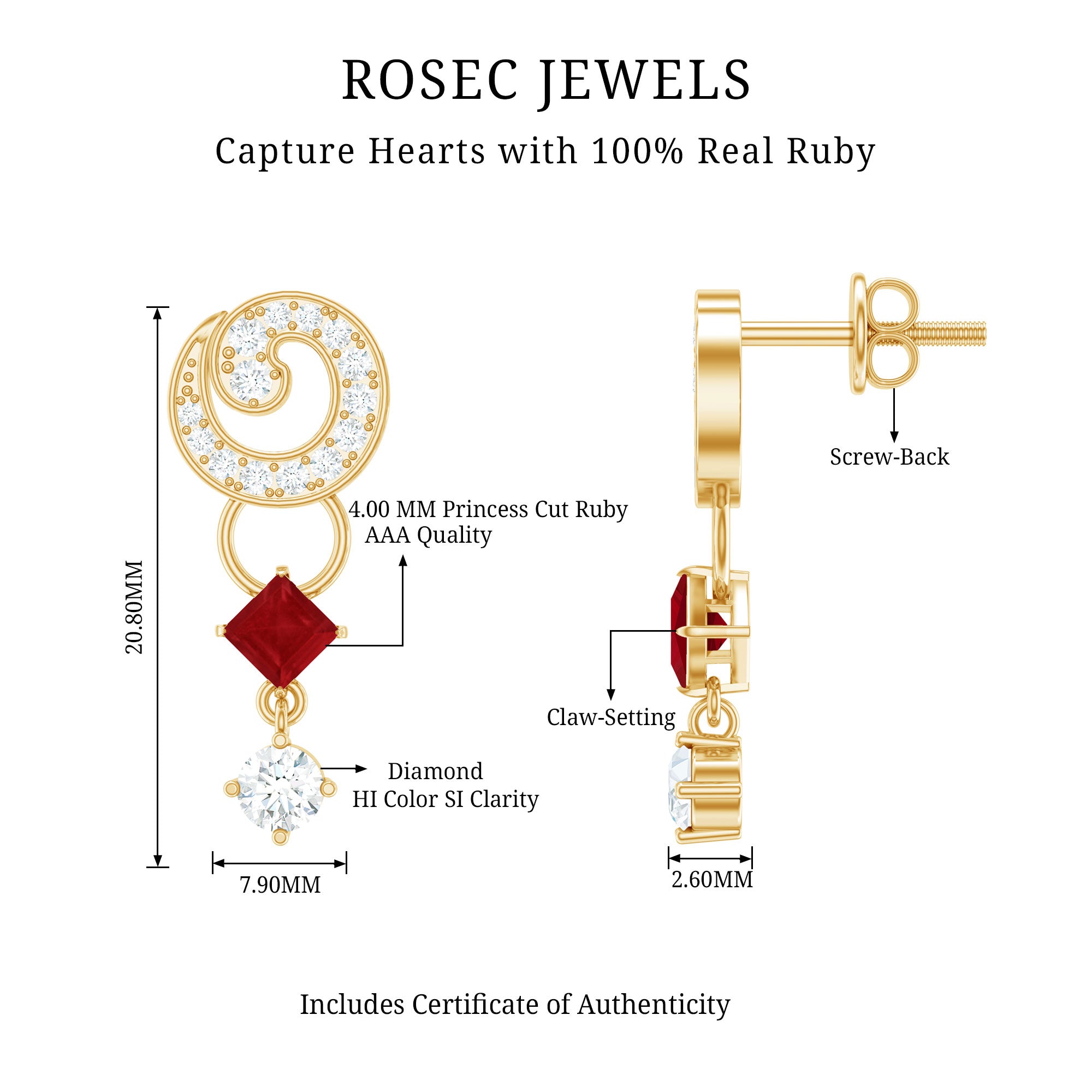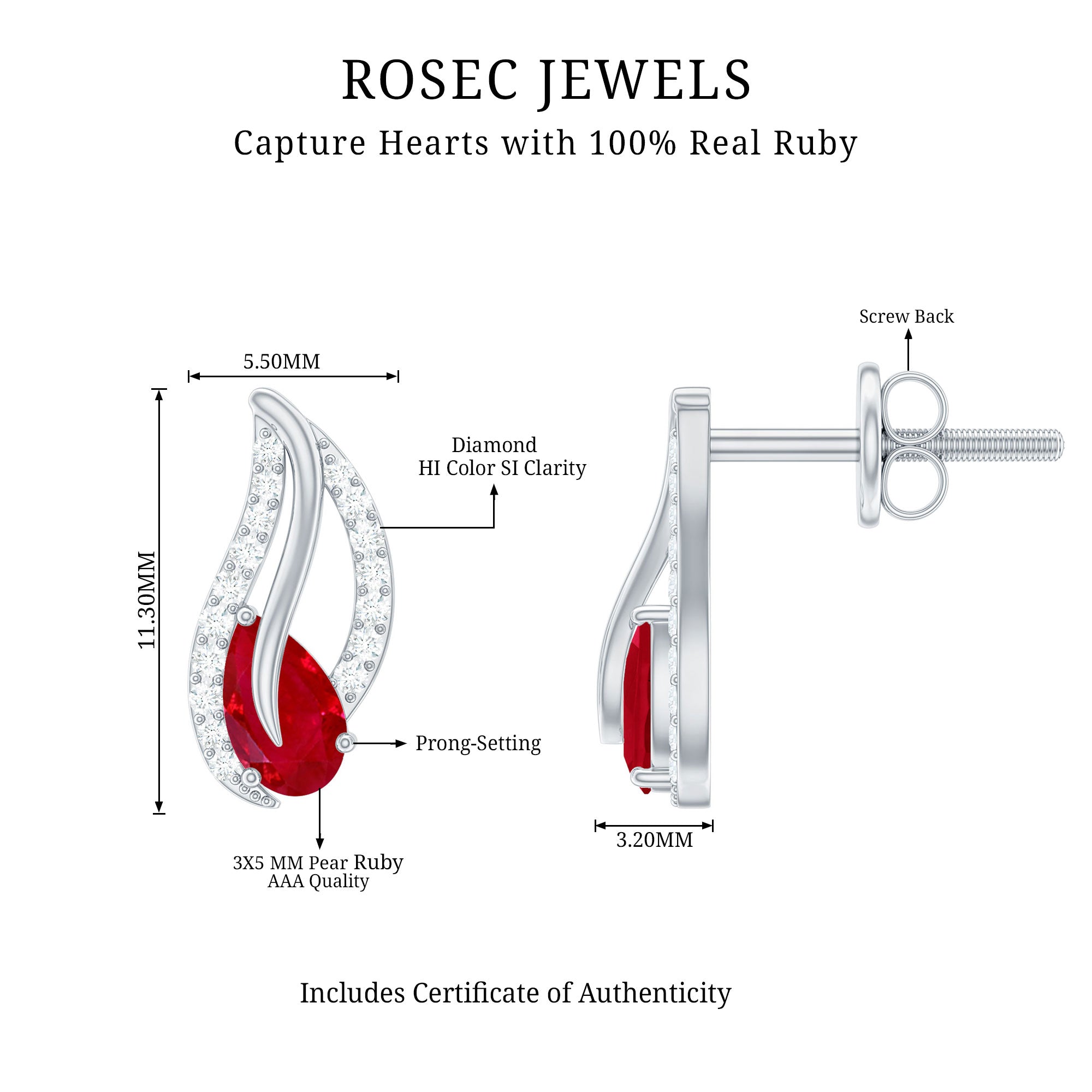 Selecting ruby as the focal point for earrings will be a worthy decision. Being a birthstone for July, Ruby is the true symbol of love, passion, health, and wealth, which also perfect for romantic gifts. This gem is renowned for its captivating deep red hue and ability to infuse passion into the wearer's life, ruby is capable of garnering instant attention.