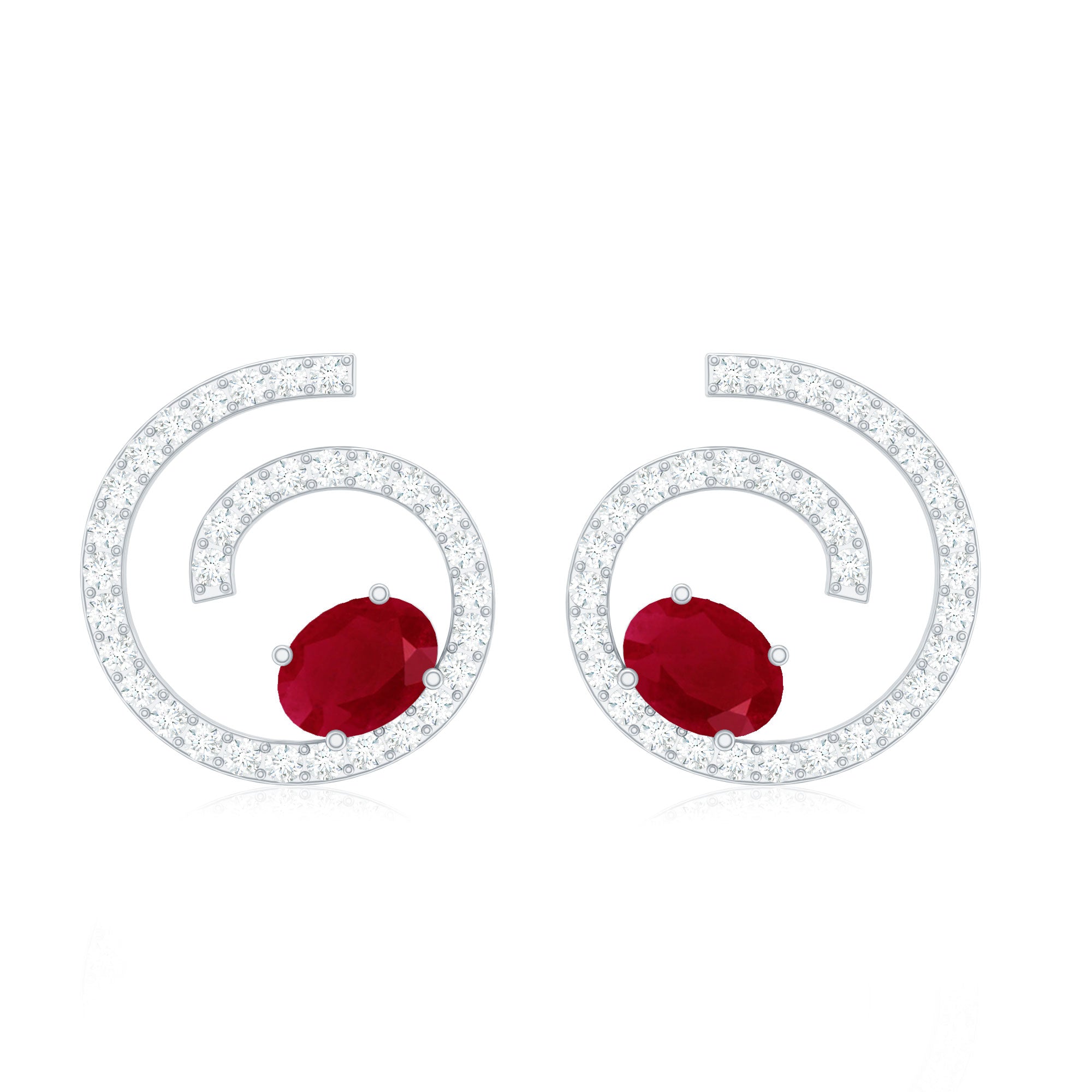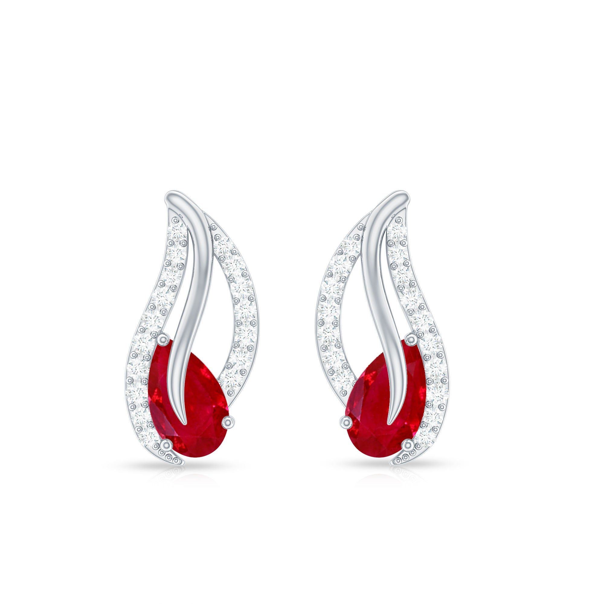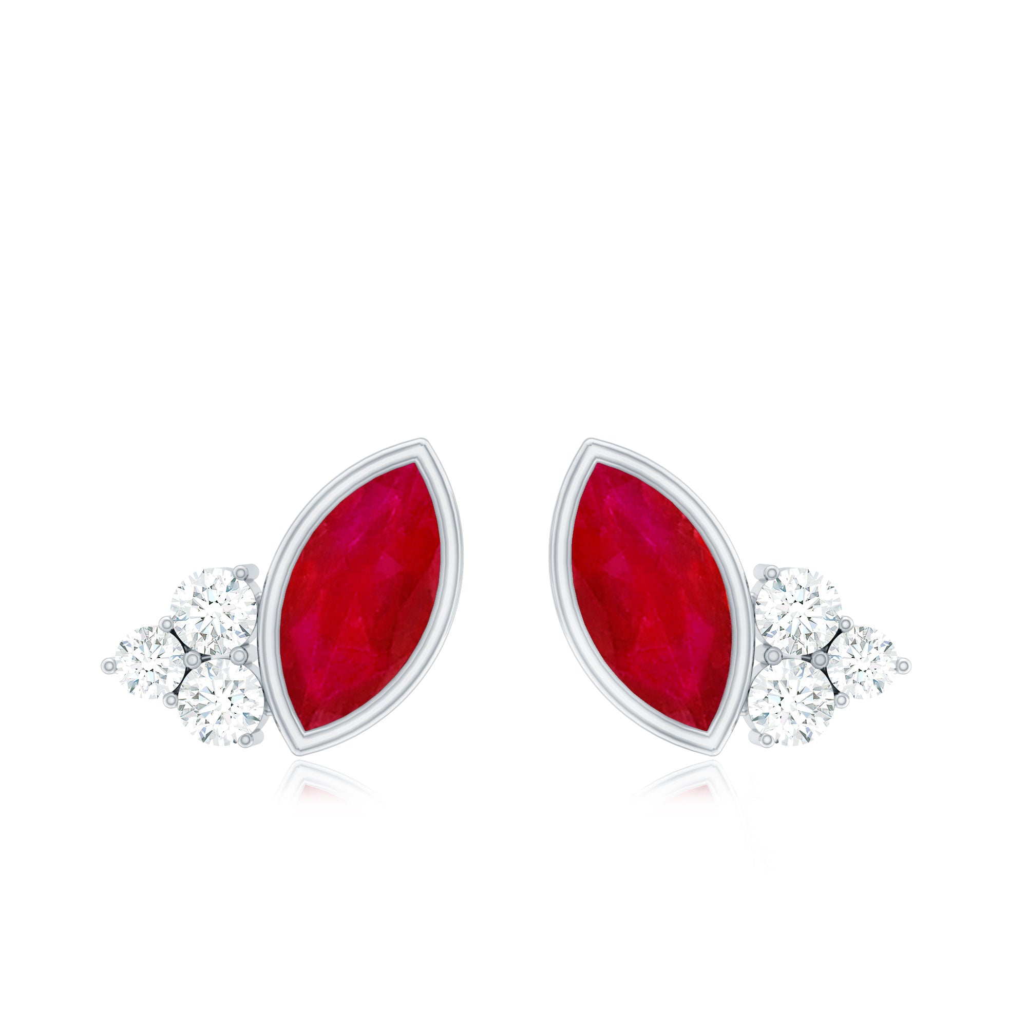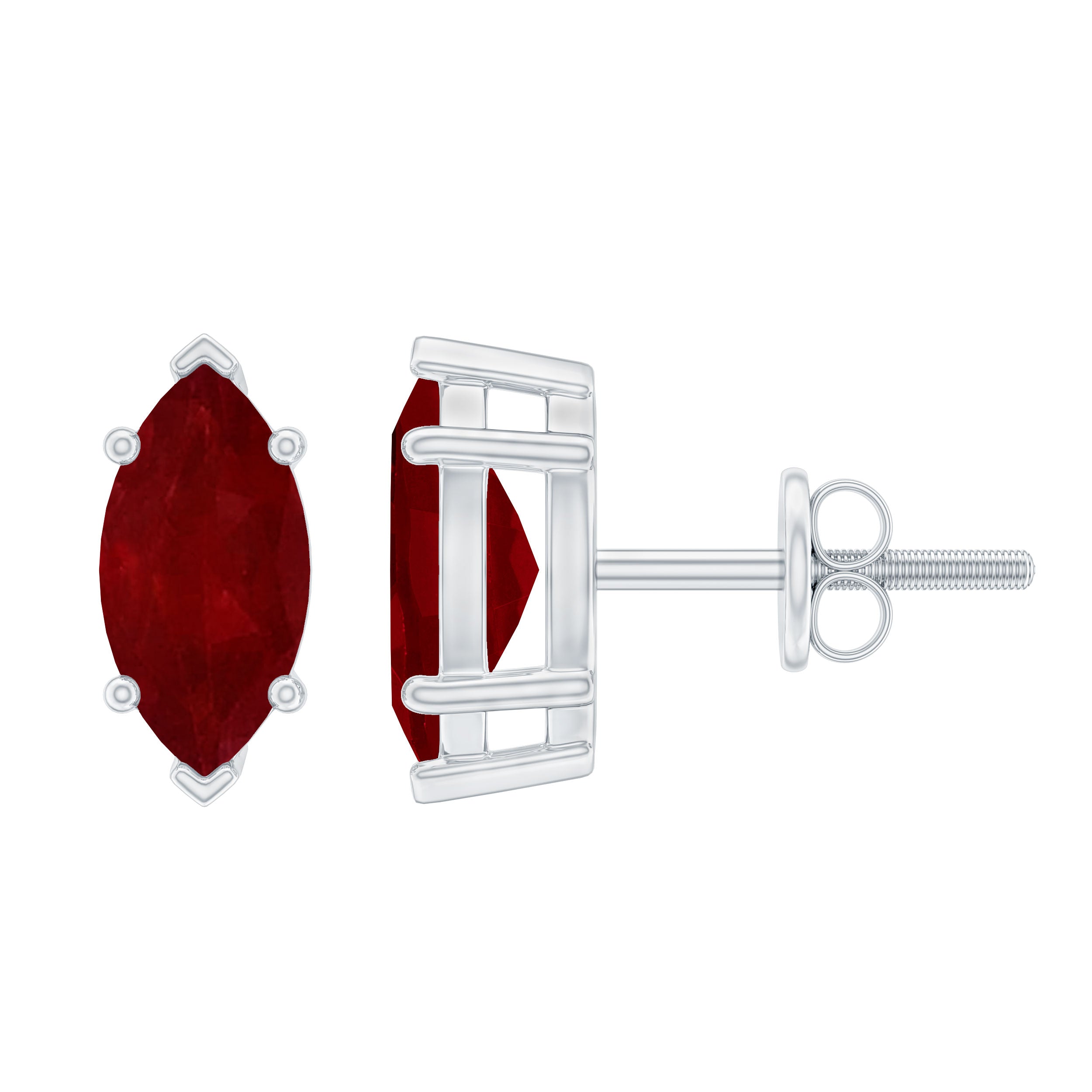 Mainly, this design of studs highlights the beauty and brilliance of ruby. These earrings are available in various metals like white gold, yellow gold, and sterling silver. The choice depends on your budget and preferences.