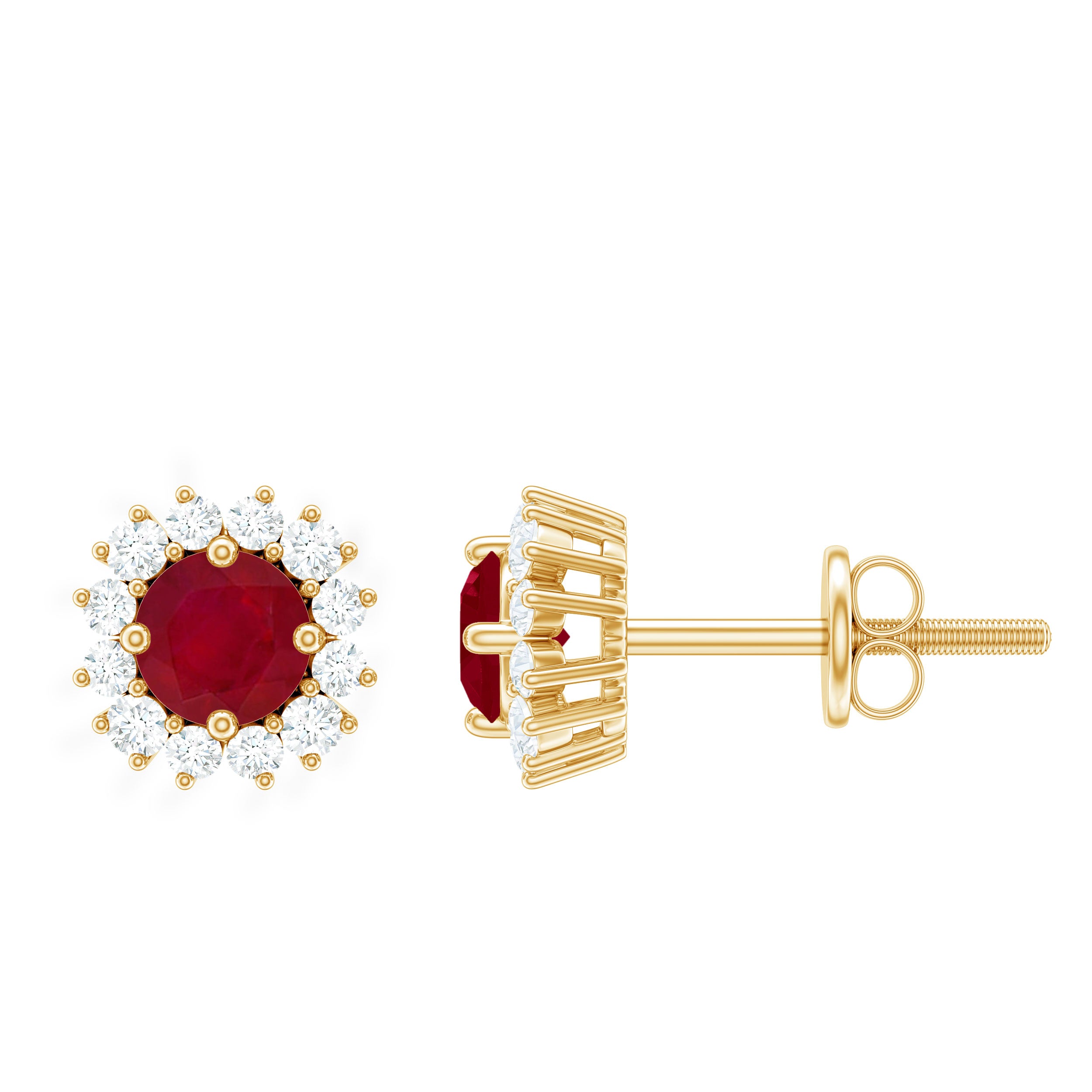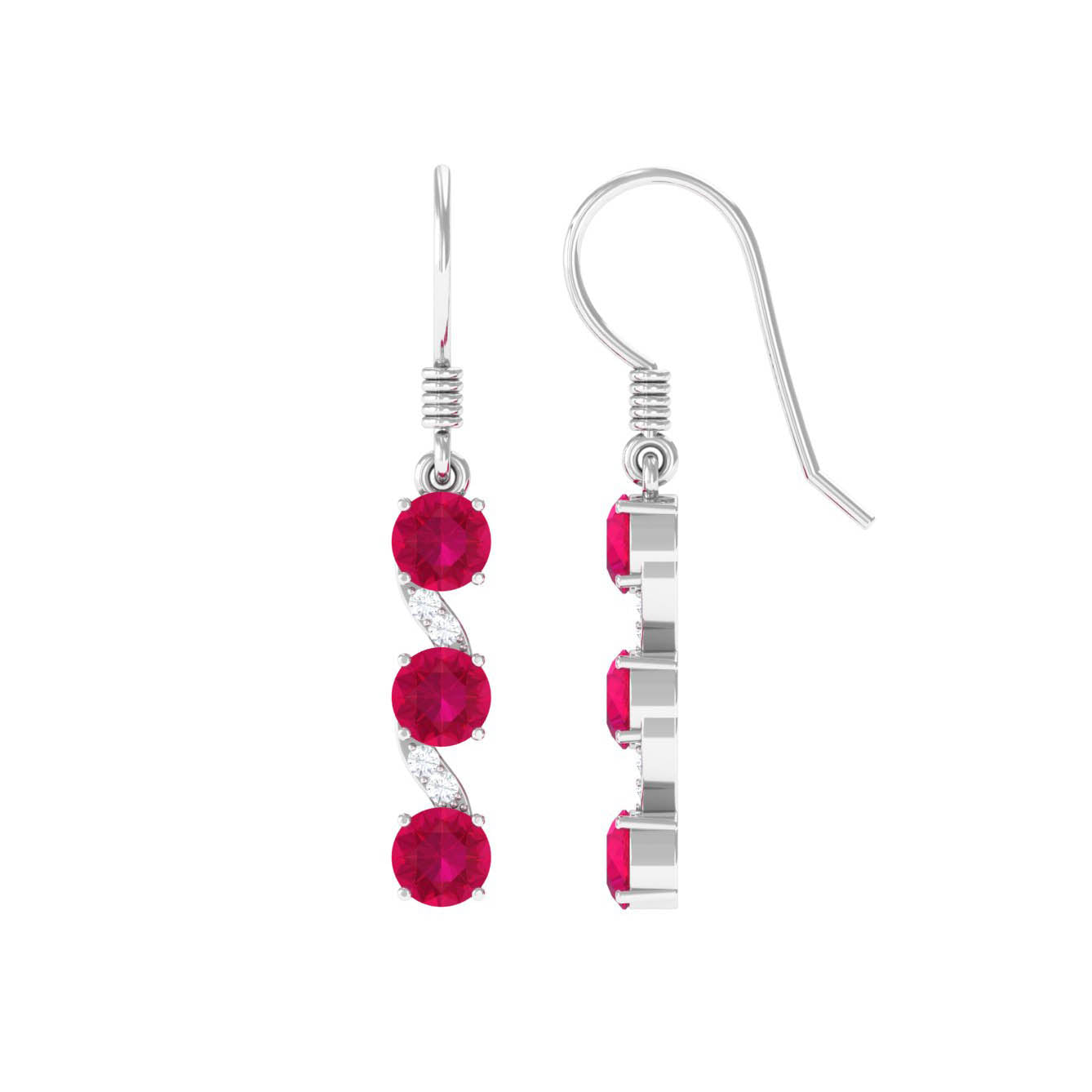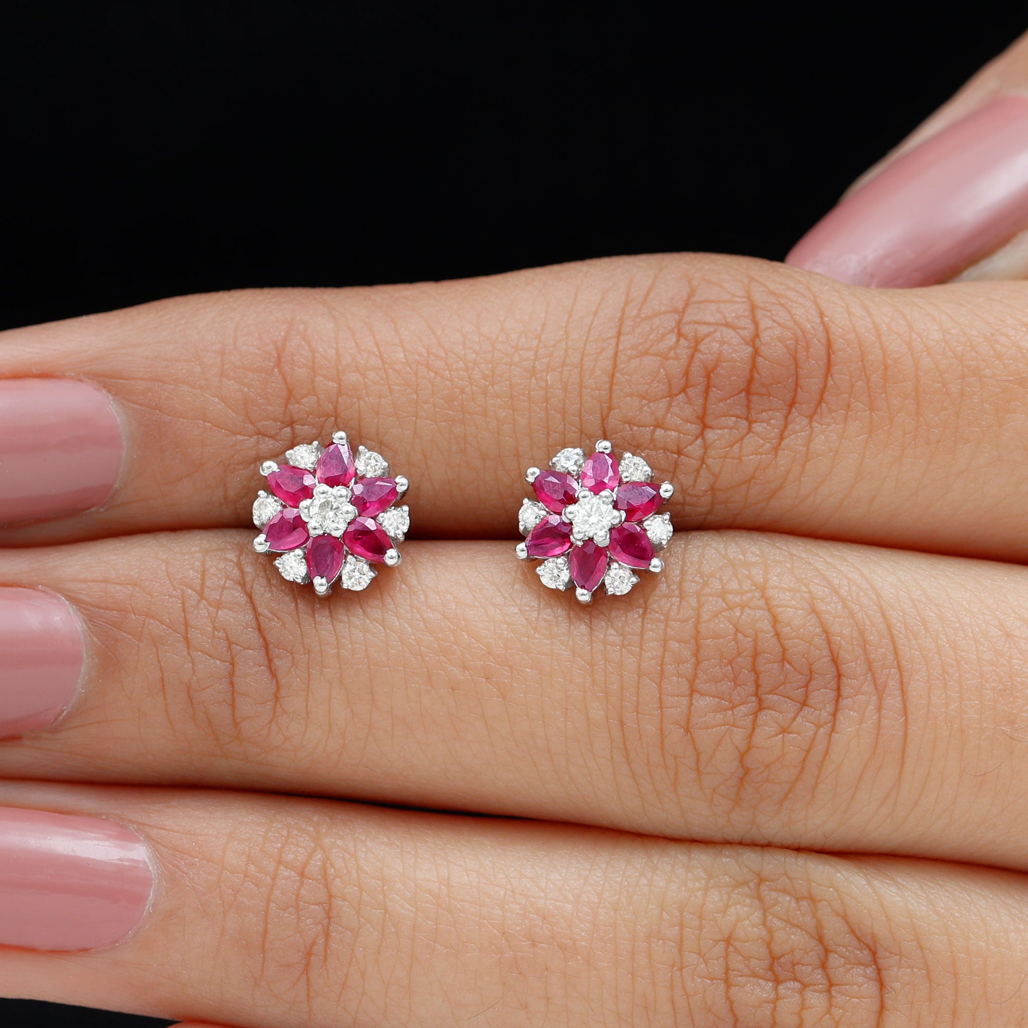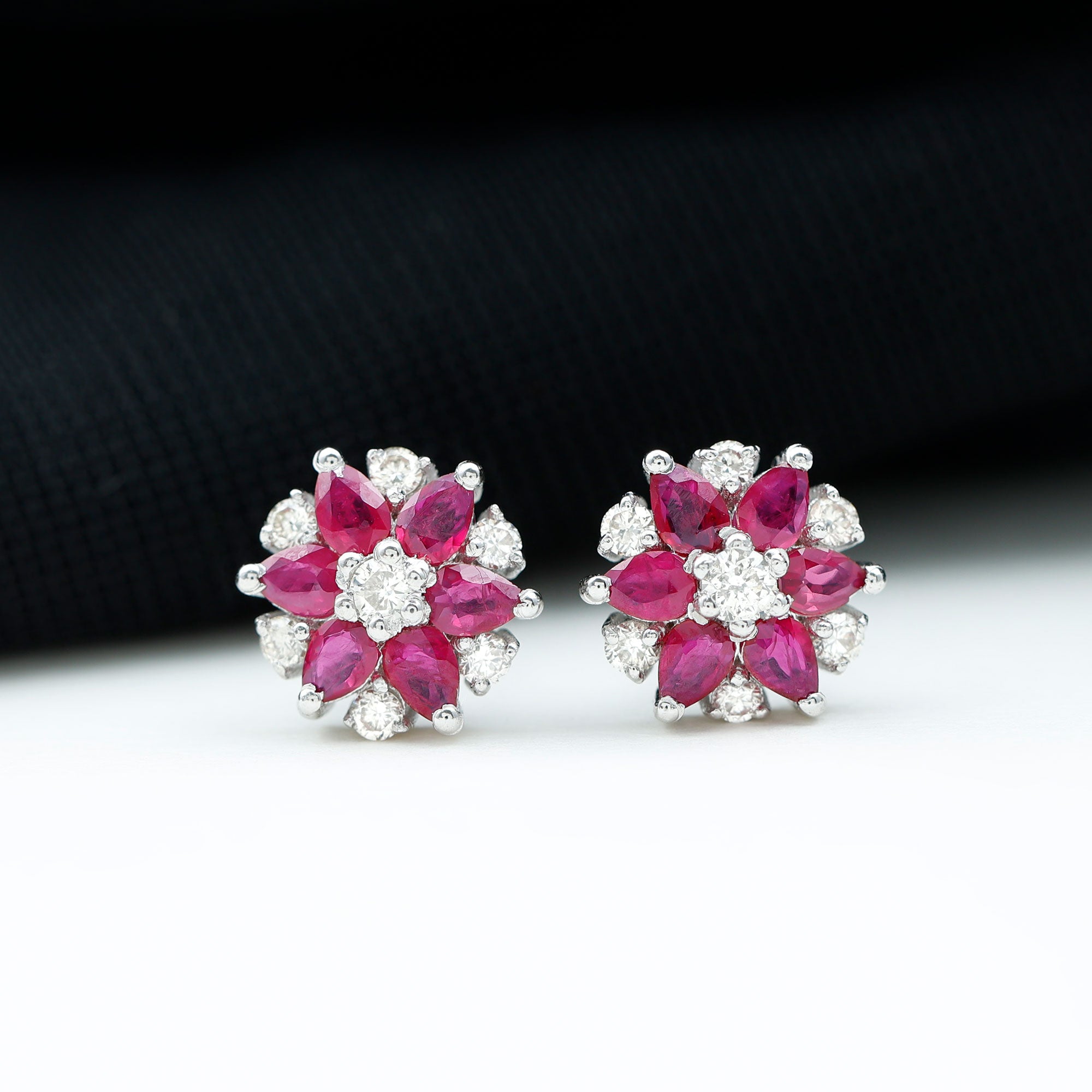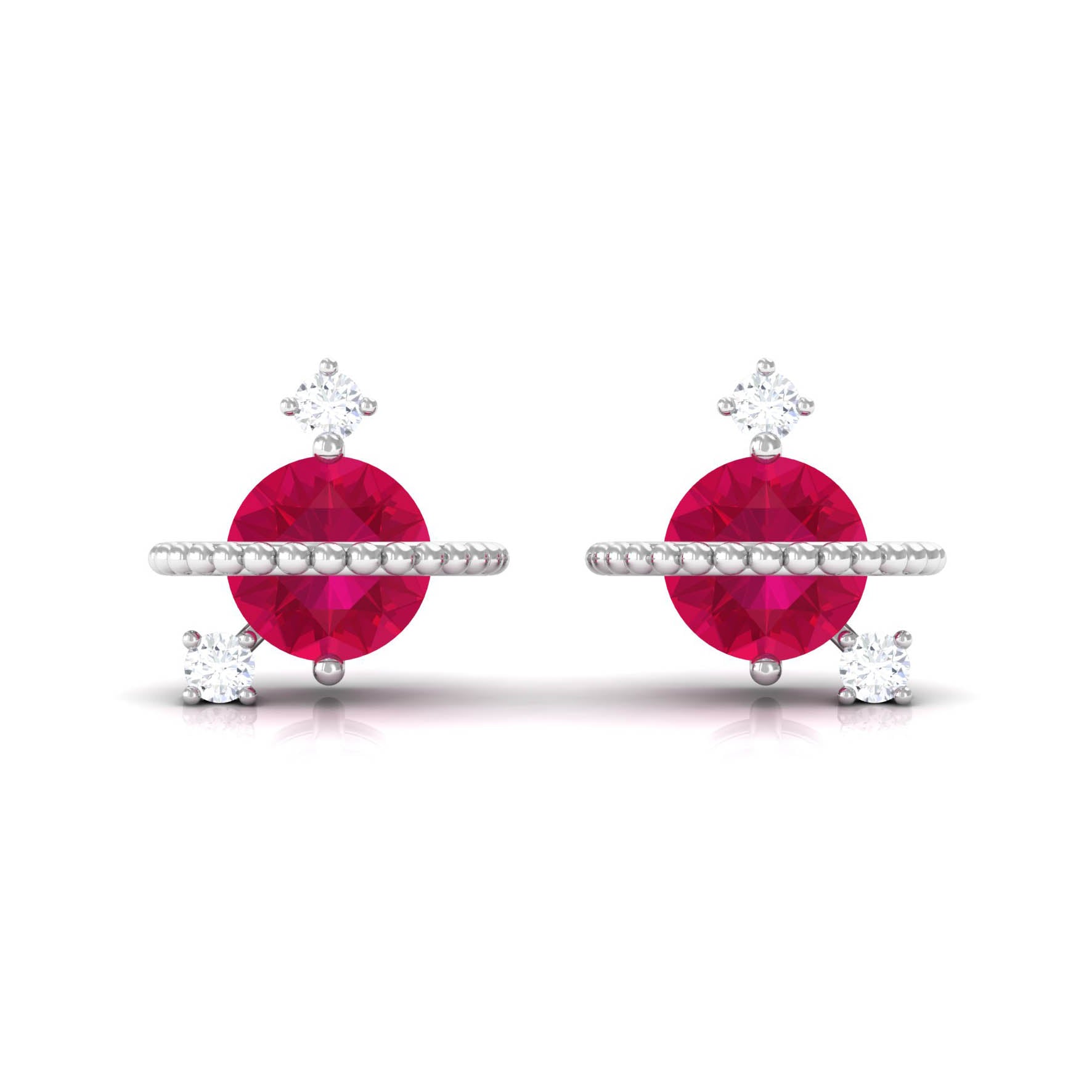 Mainly, this design of studs highlights the beauty and brilliance of ruby. These earrings are available in various metals like white gold, yellow gold, and sterling silver. The choice depends on your budget and preferences.