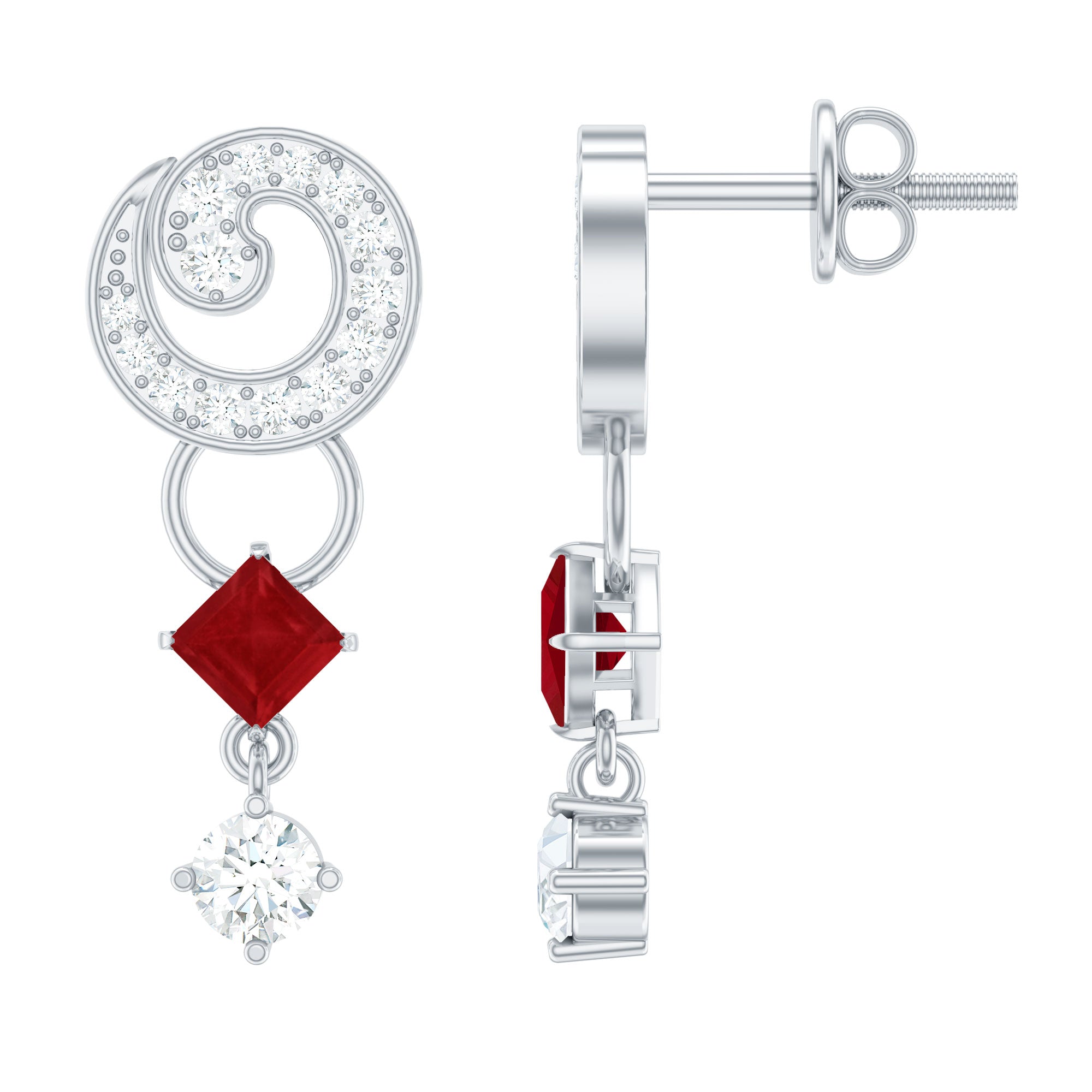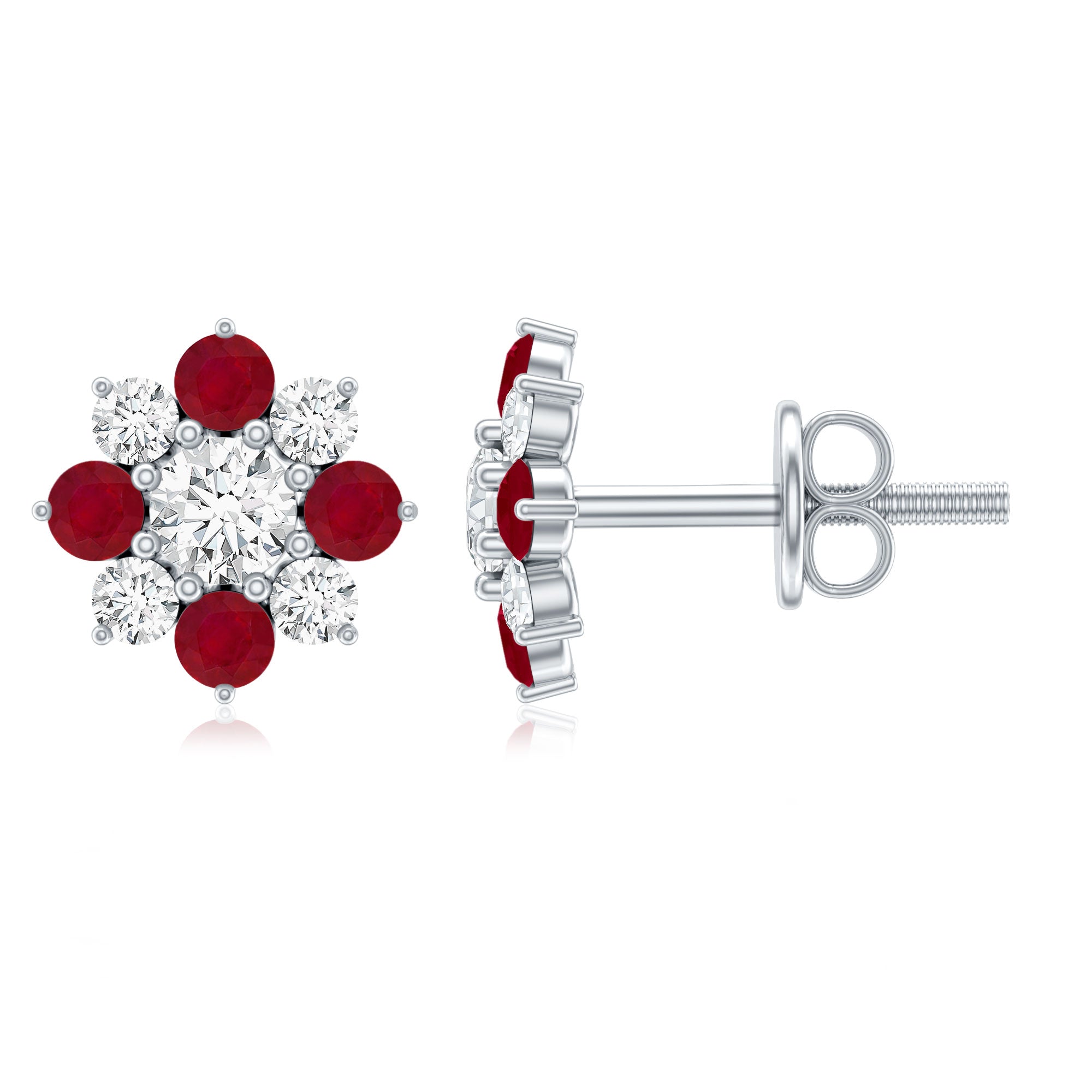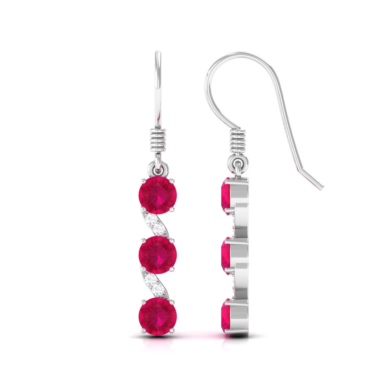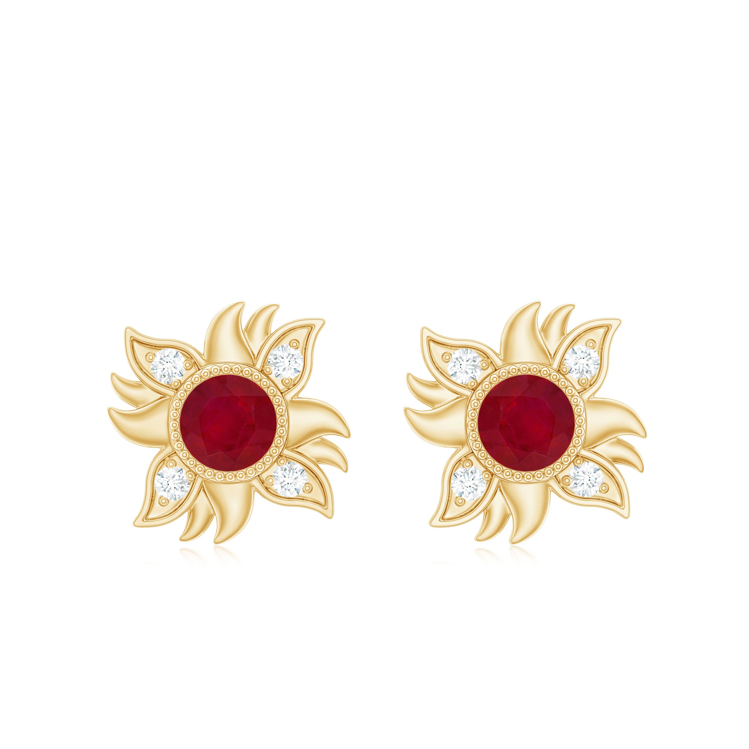 Mainly, this design of studs highlights the beauty and brilliance of ruby. These earrings are available in various metals like white gold, yellow gold, and sterling silver. The choice depends on your budget and preferences.