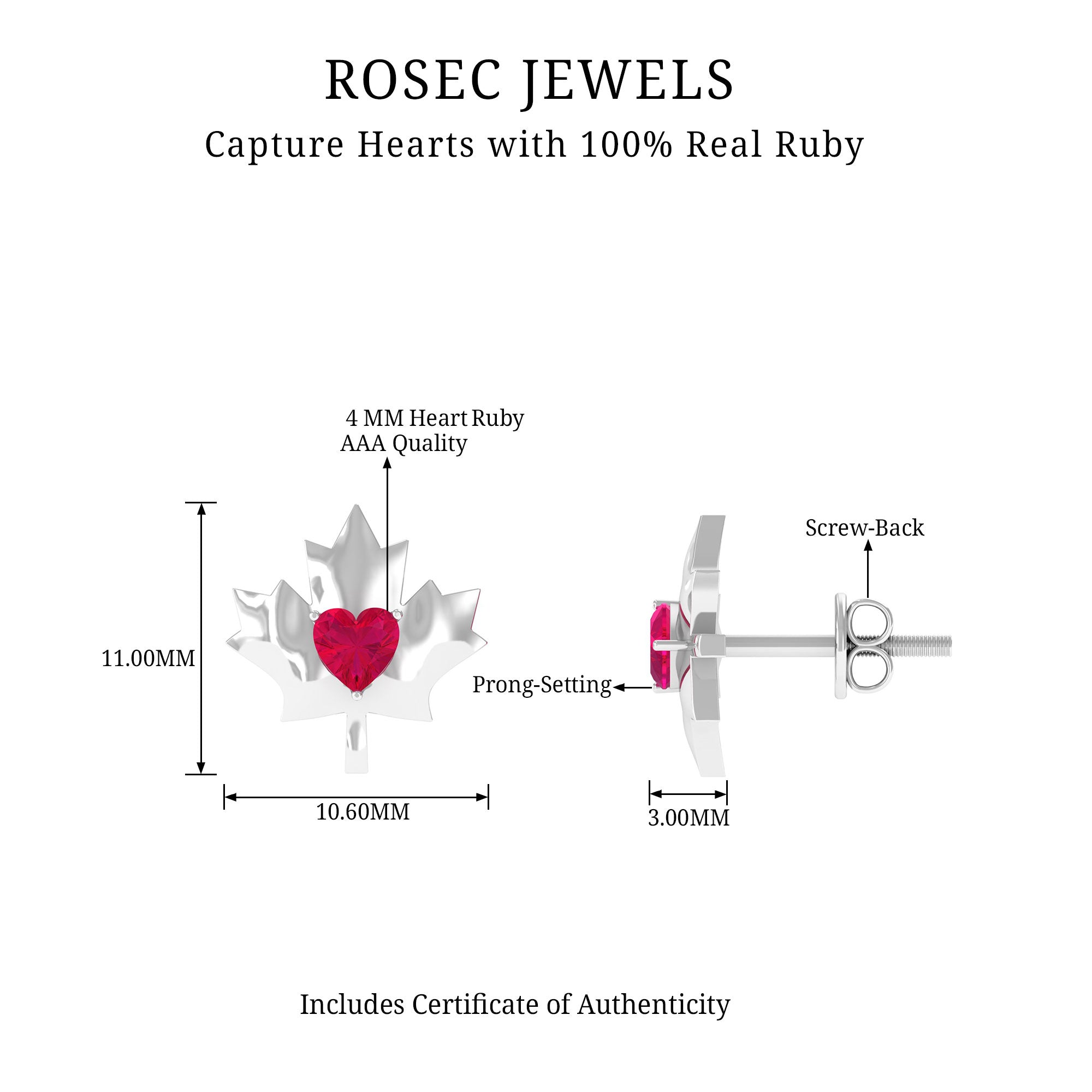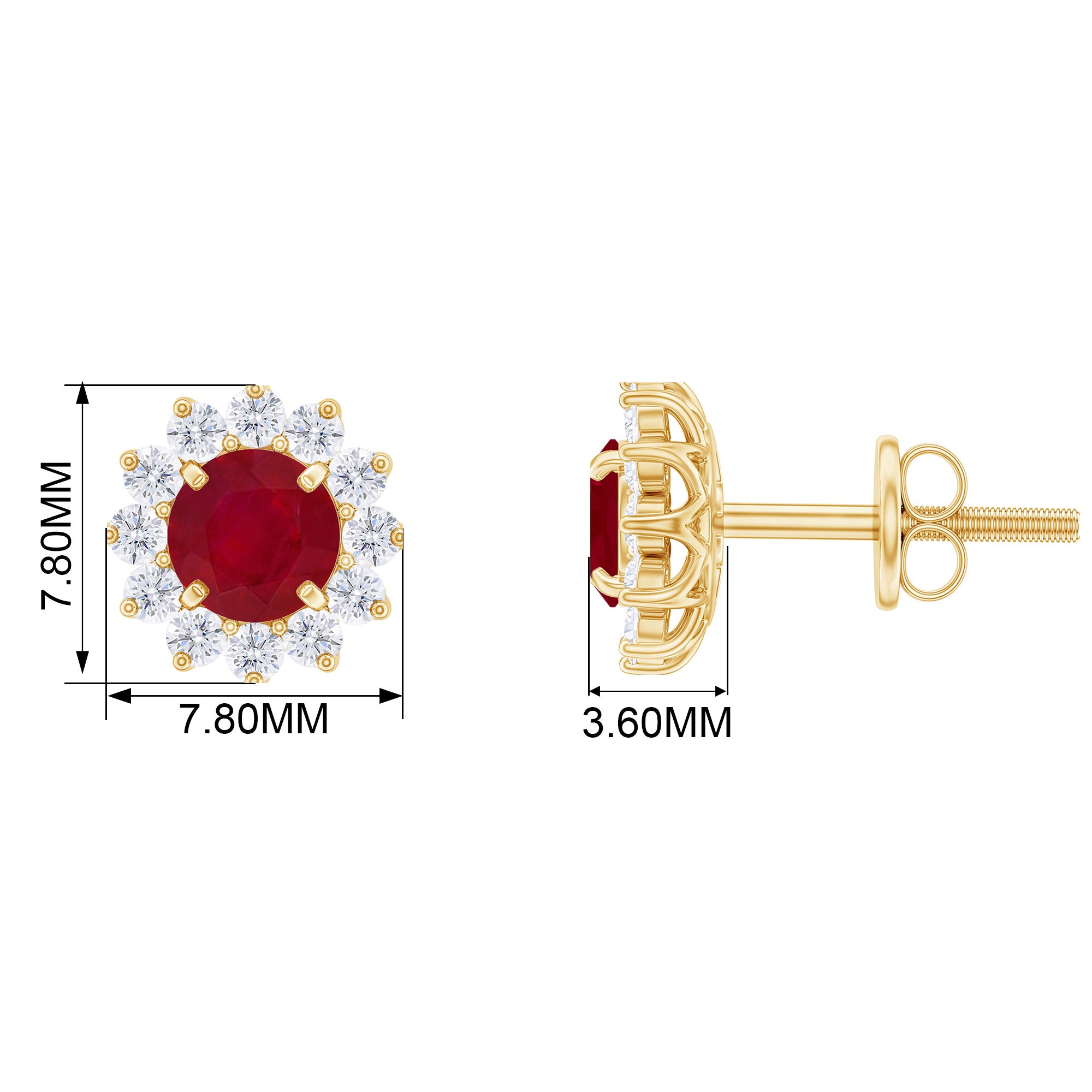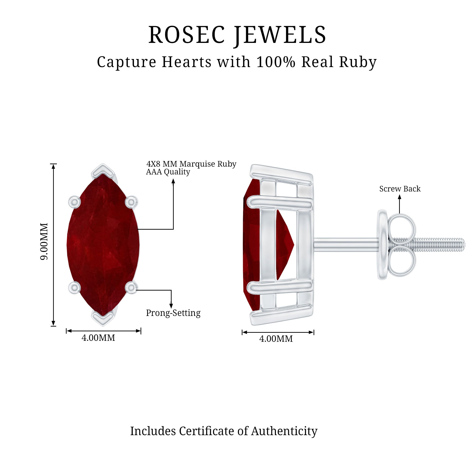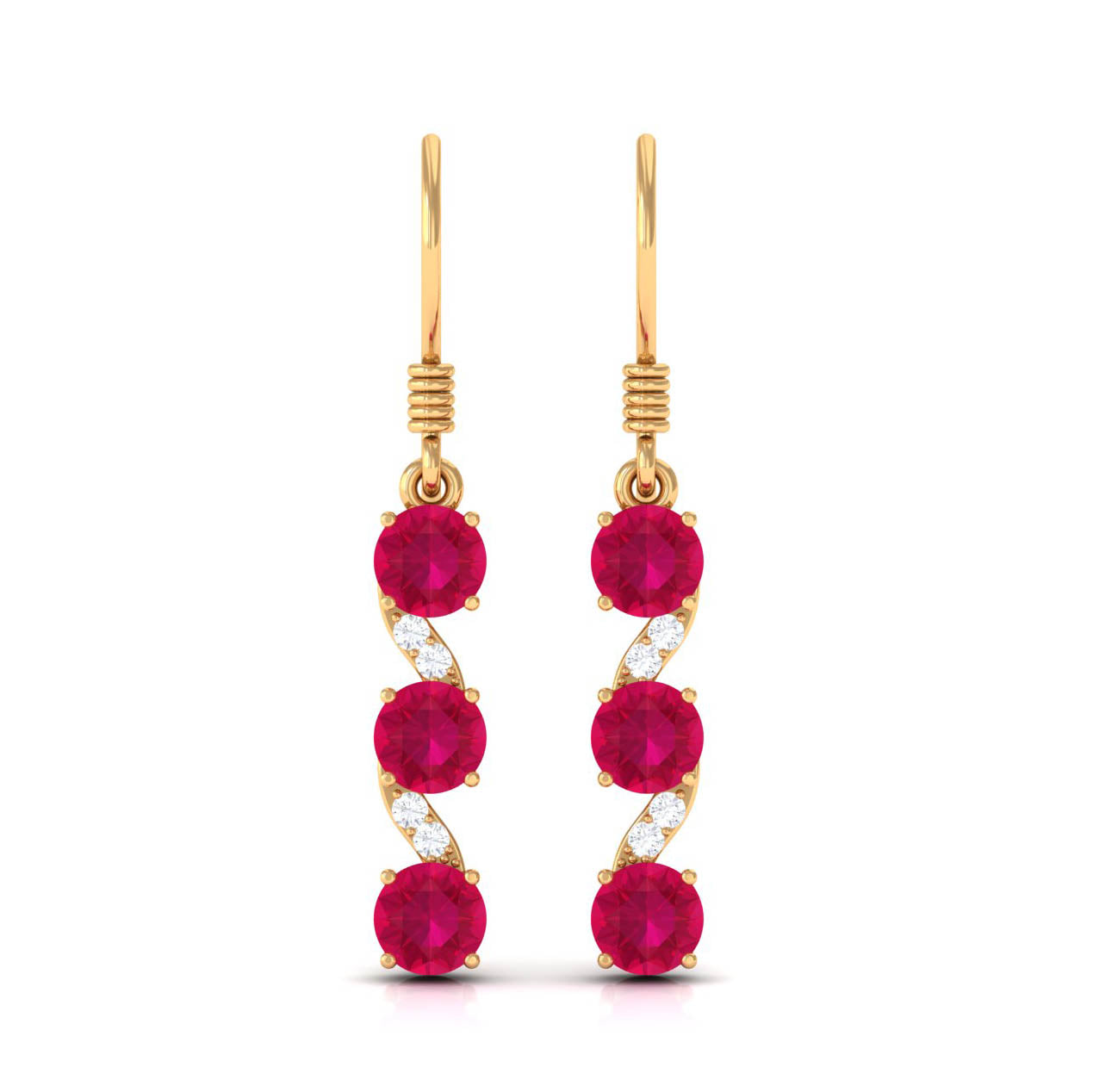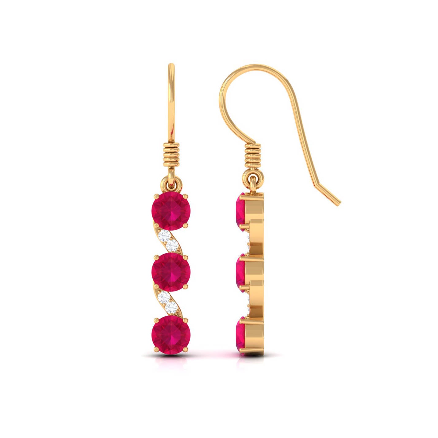 Mainly, this design of studs highlights the beauty and brilliance of ruby. These earrings are available in various metals like white gold, yellow gold, and sterling silver. The choice depends on your budget and preferences.