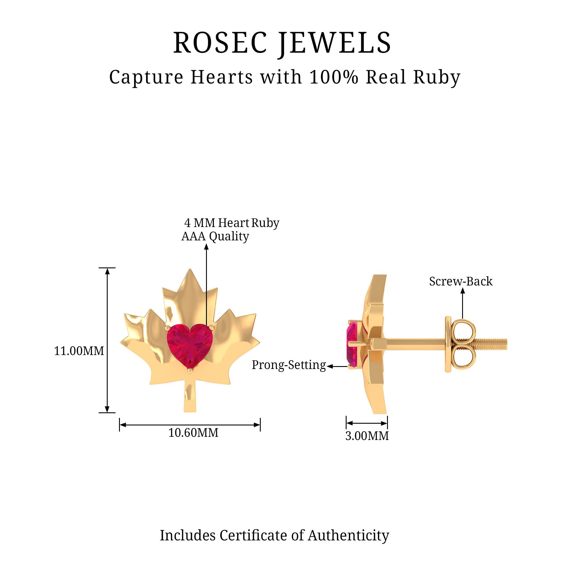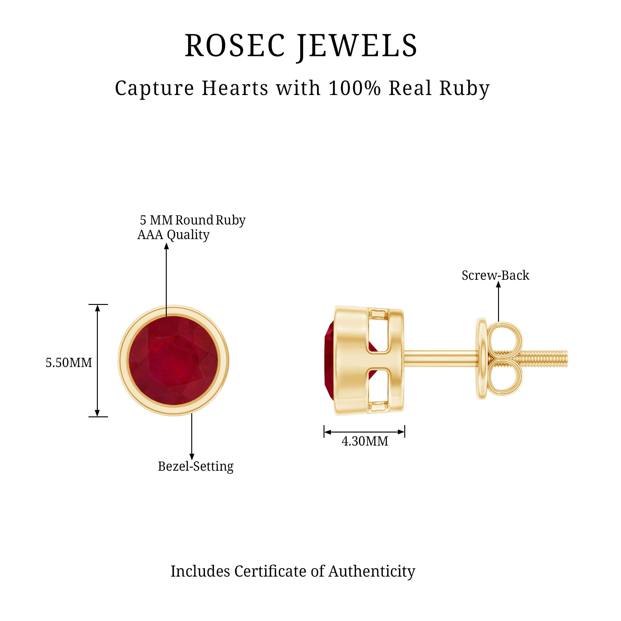 Besides its aesthetic appeal, this highly desired gemstone boasts remarkable durability, scoring a 9 out of 10 on the Mohs scale of hardness. Their versatility ensures that ruby is a perfect for daily wear, and also suitable for real gold jewelry.