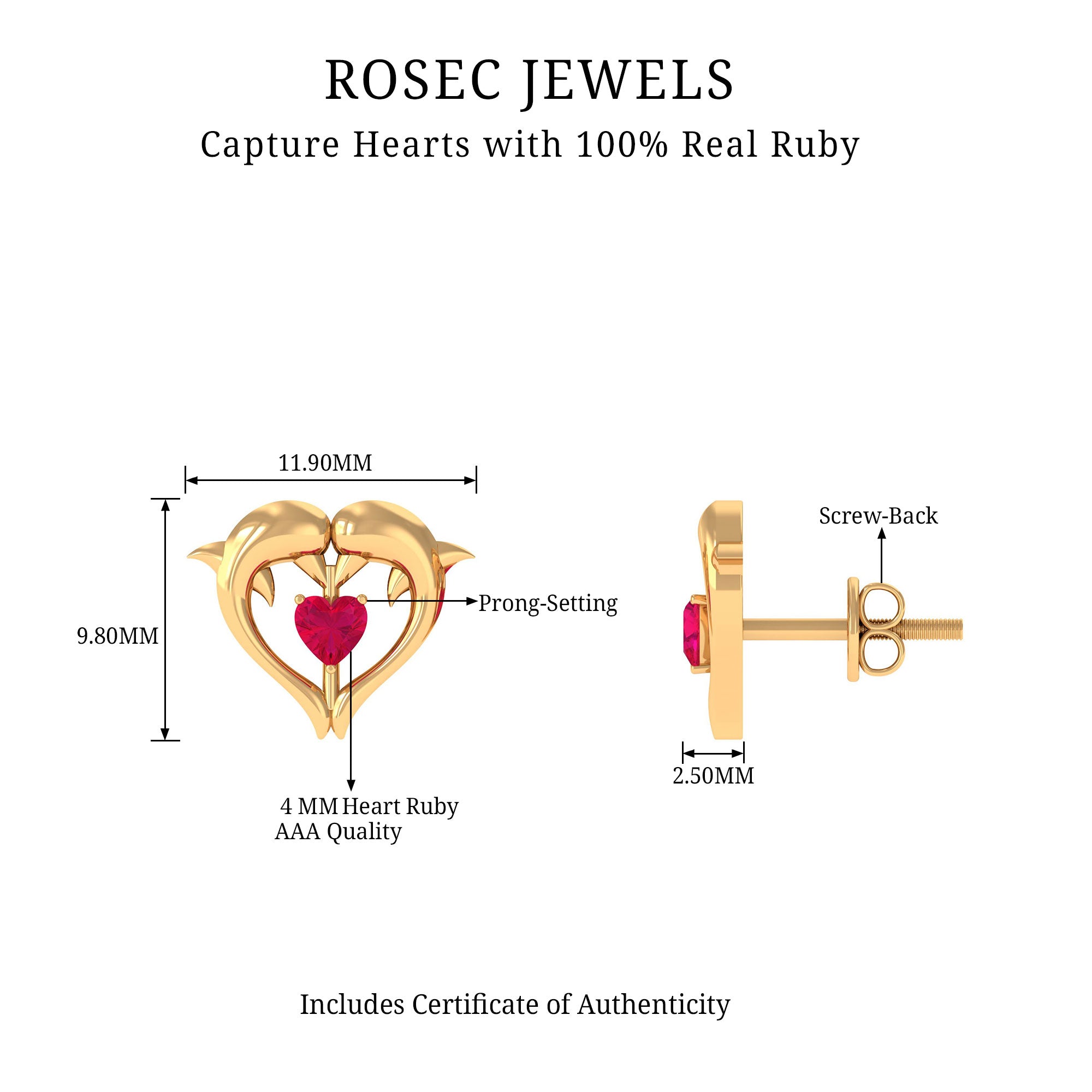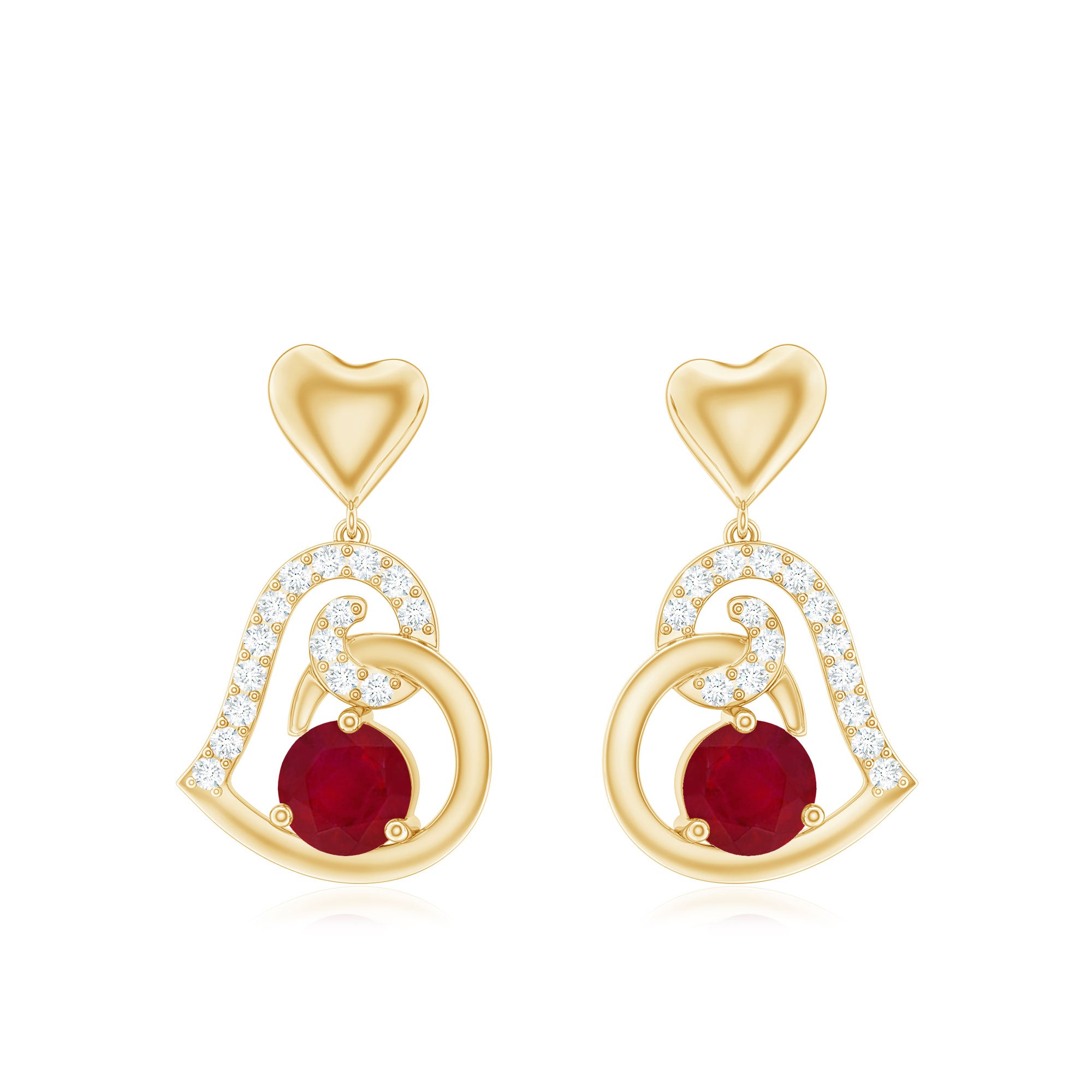 Nothing will be better than gifting the heart studs to love of your life. These studs feature heart shape red ruby, symbolizing love, passion, and never-ending commitment.