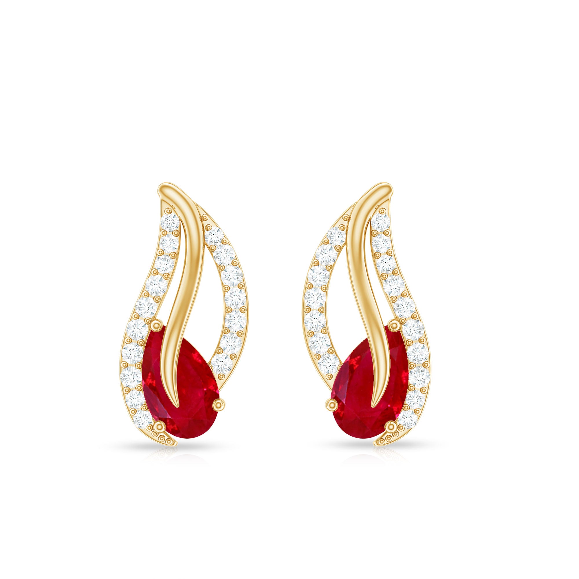 Ruby earrings are available in wide variety of styles and designs. Ranging from classic solitaire to mesmerizing halo, these earrings offers comfort and a perfect companion to any outfit.