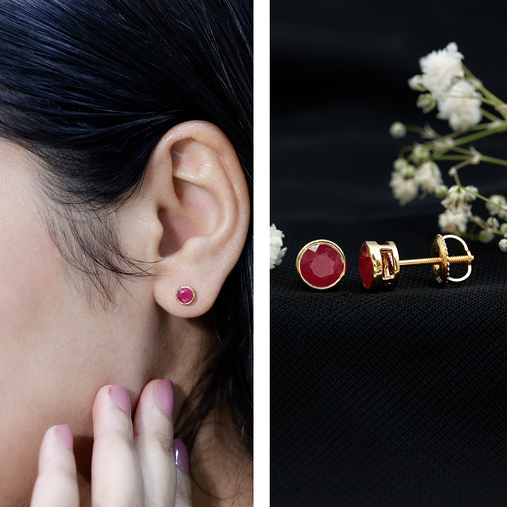 Stud earrings are classy, versatile, and comfortable to wear and have the power to elevate any ensemble. Whether aiming for simplicity and formal office attire, opting for these ruby solitaire stud earrings can effortlessly complement your outfit while maintaining a professional appearance.