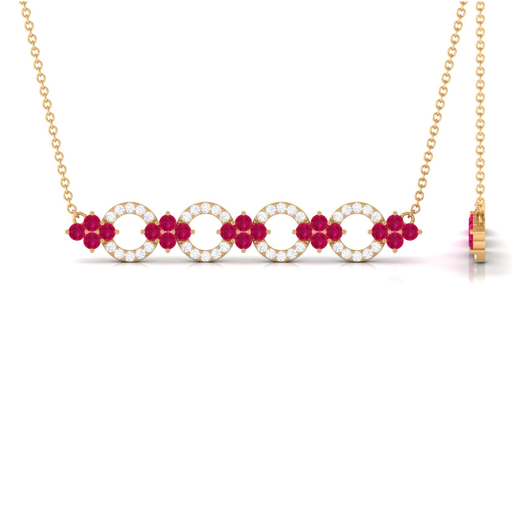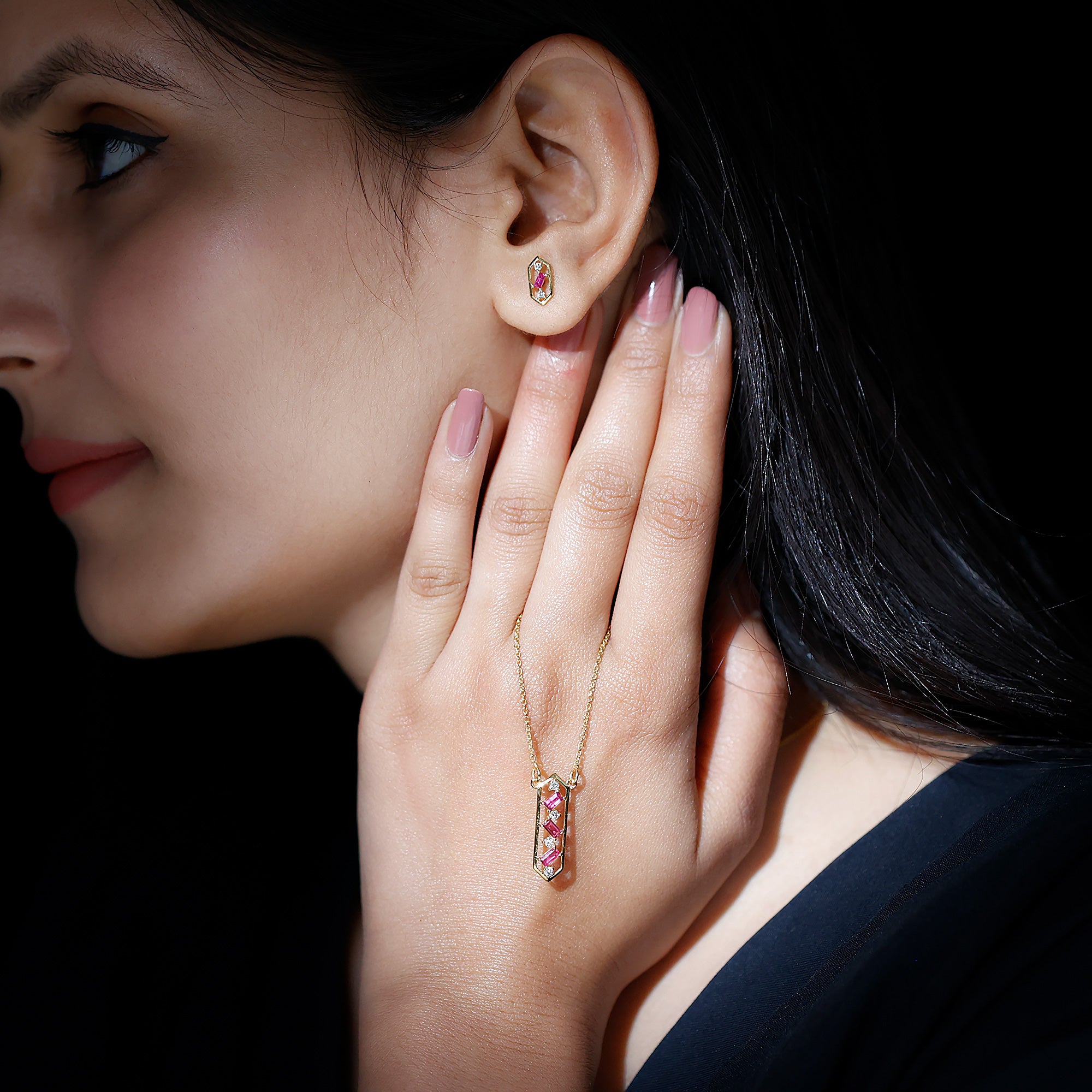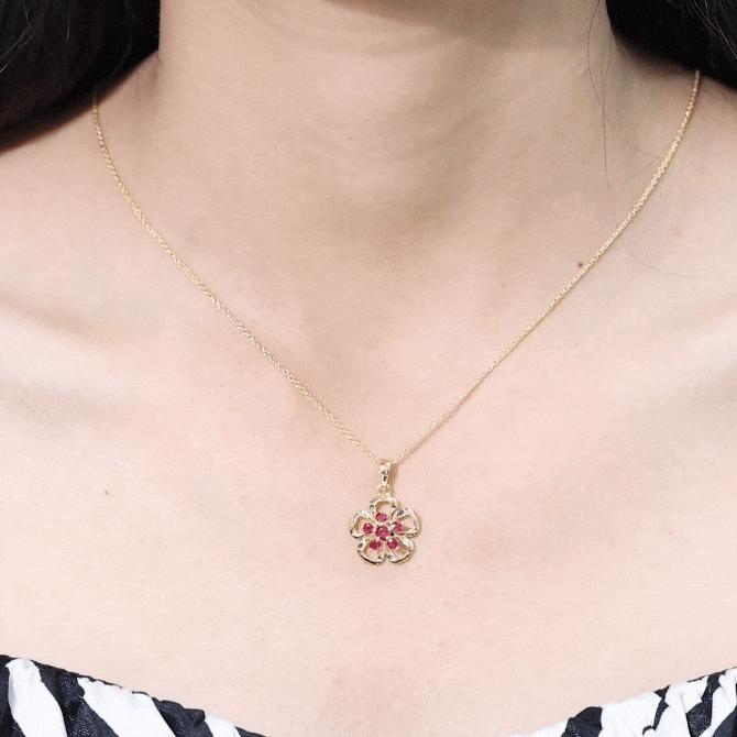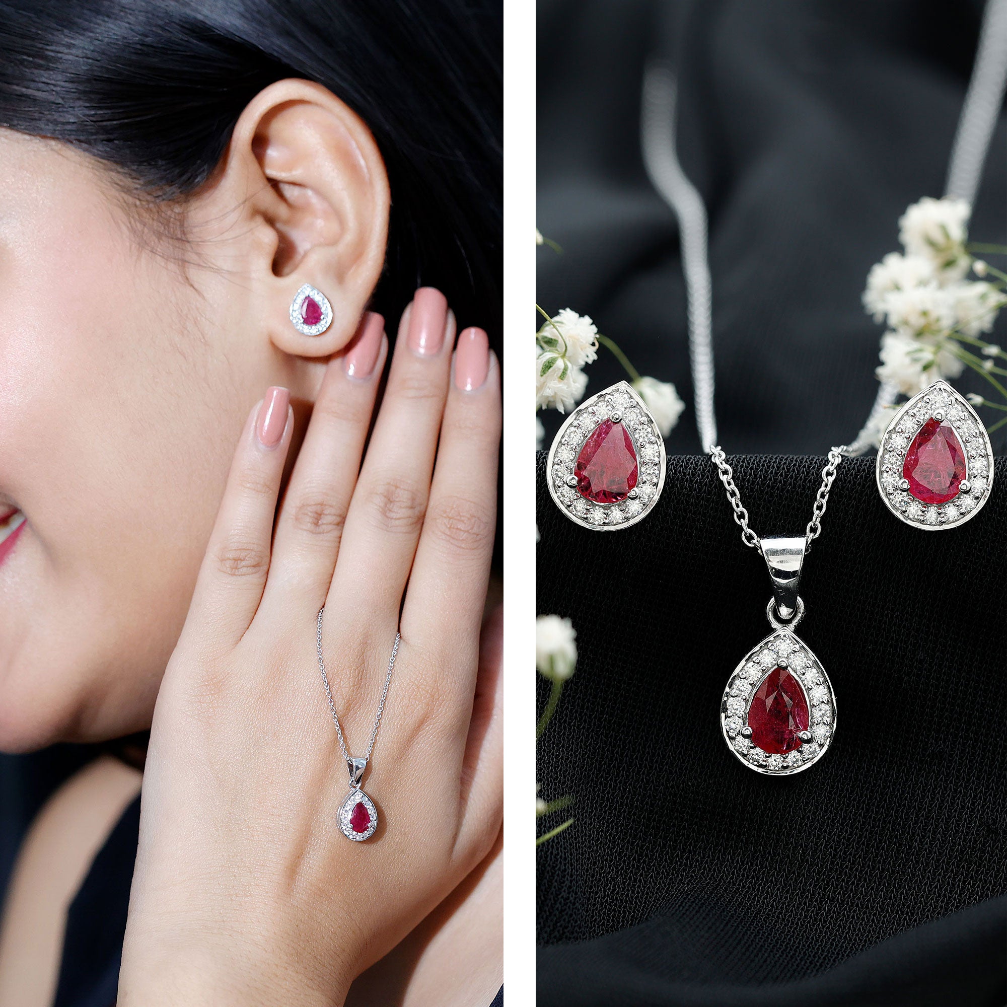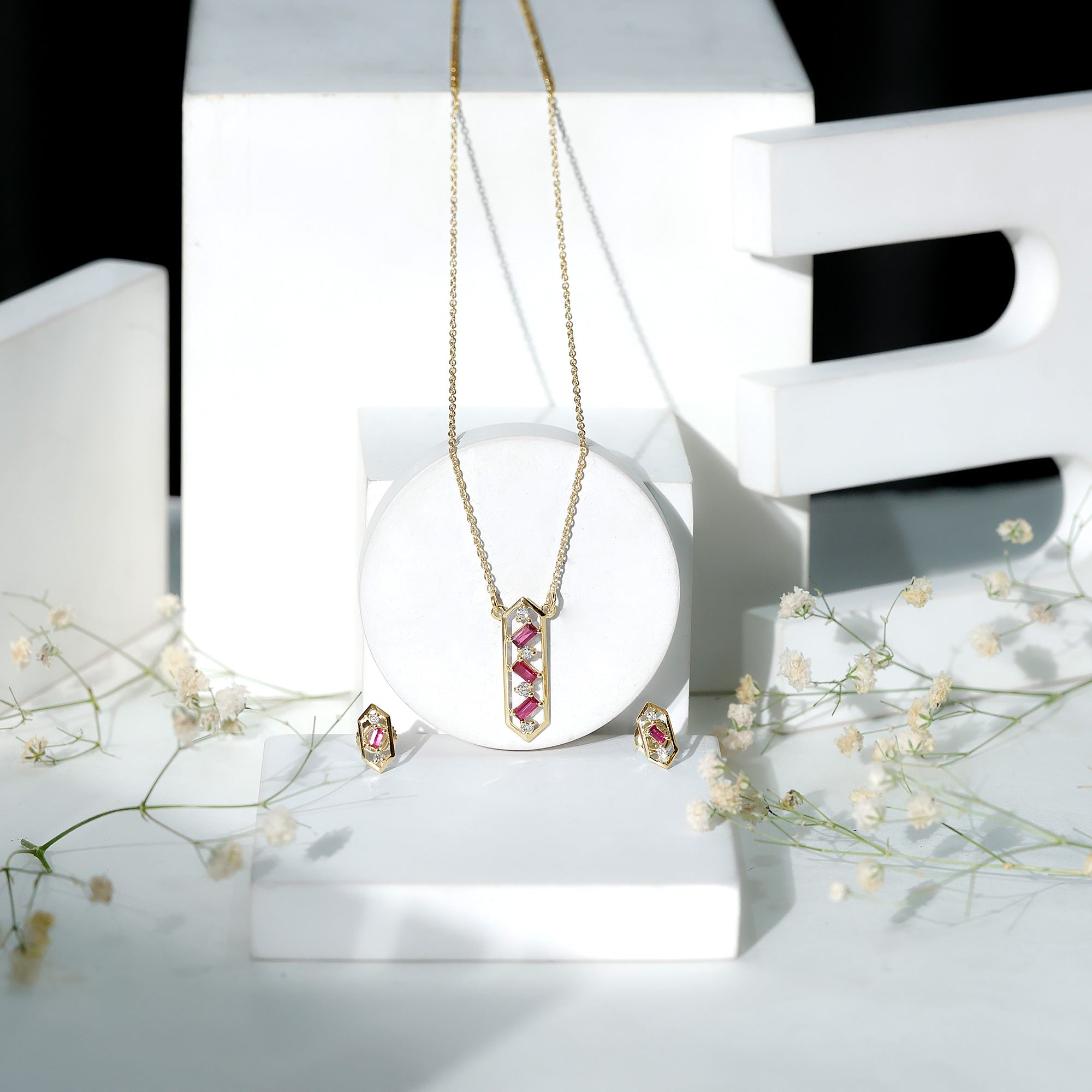 Explore our women's ruby necklace with versatile options in both white and yellow gold. Whether you love to wear them alone or as a set, ruby necklaces add a unique flair to charm to any look. Their dazzling appearance and versatility make red ruby necklaces a graceful addition to your wardrobe.