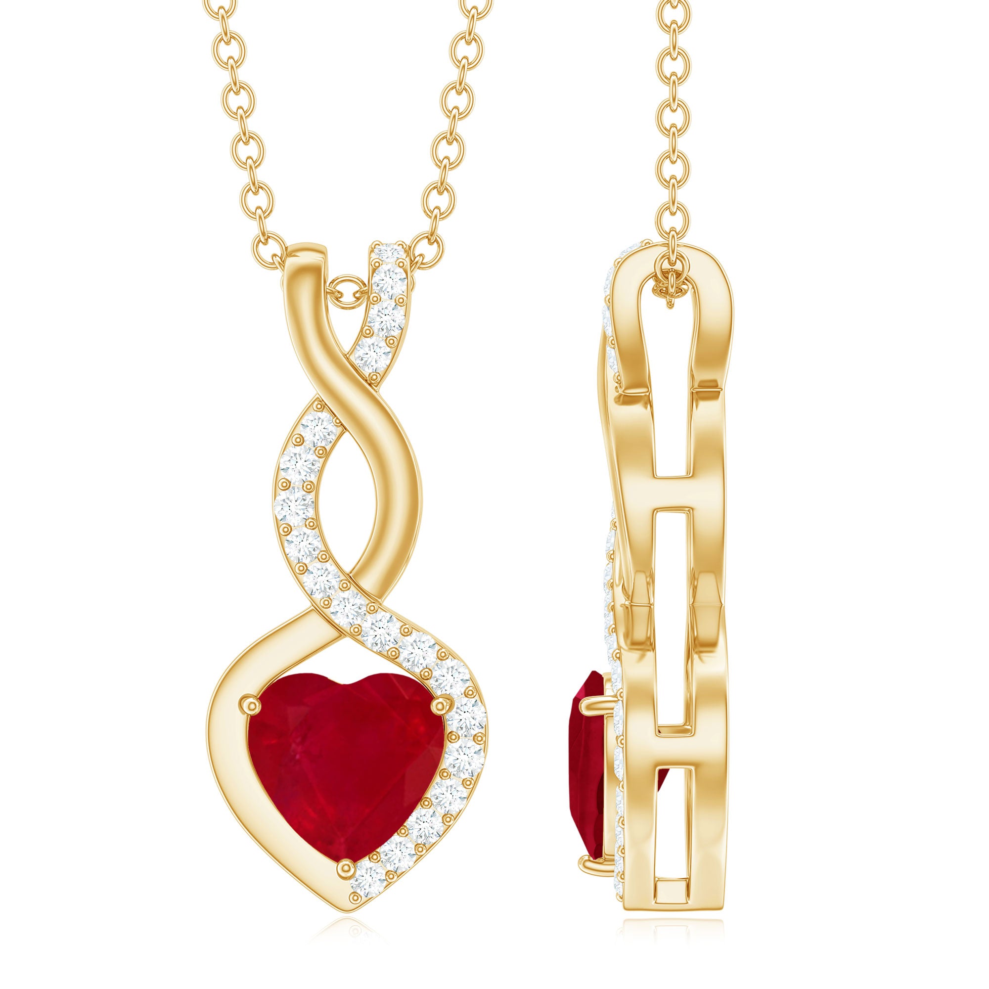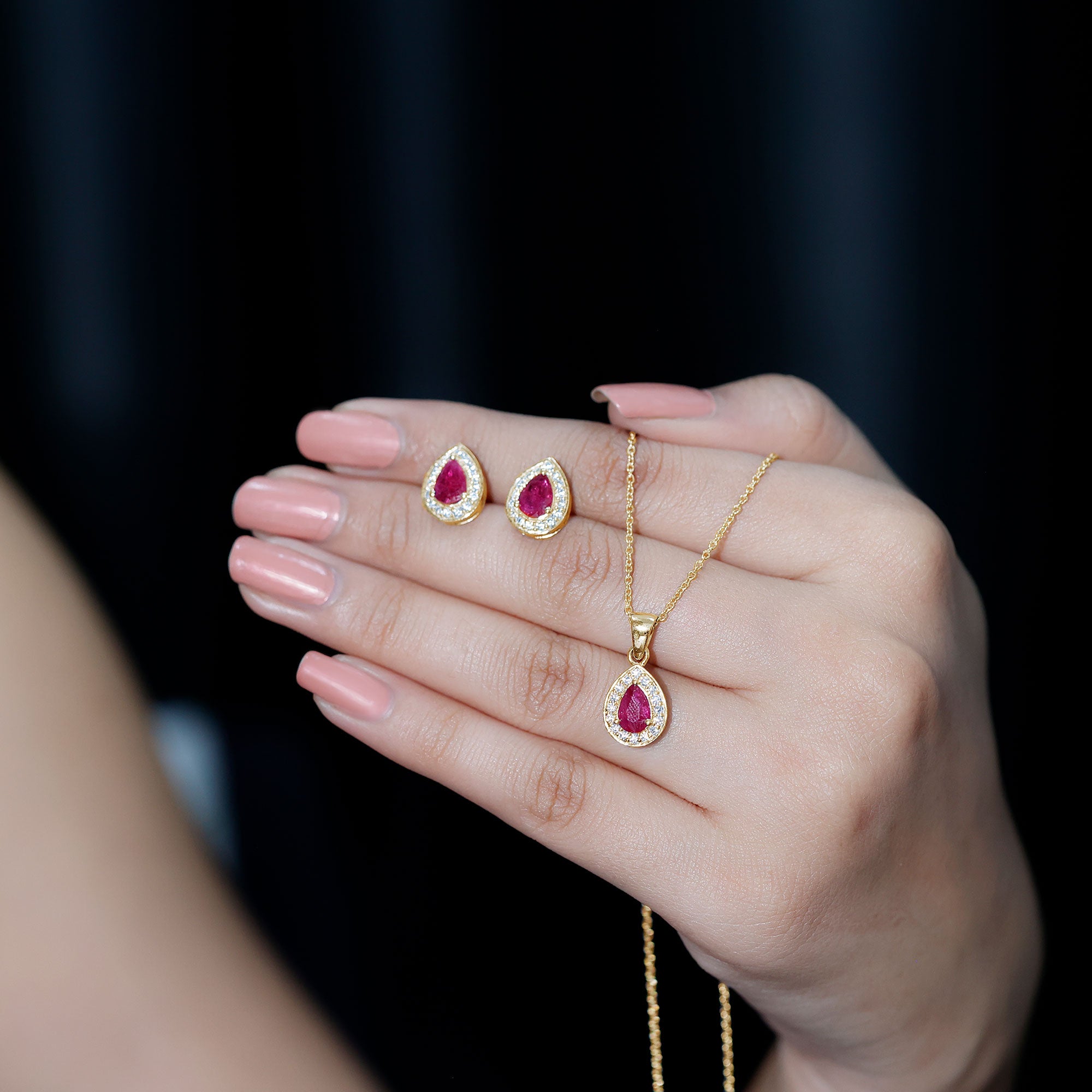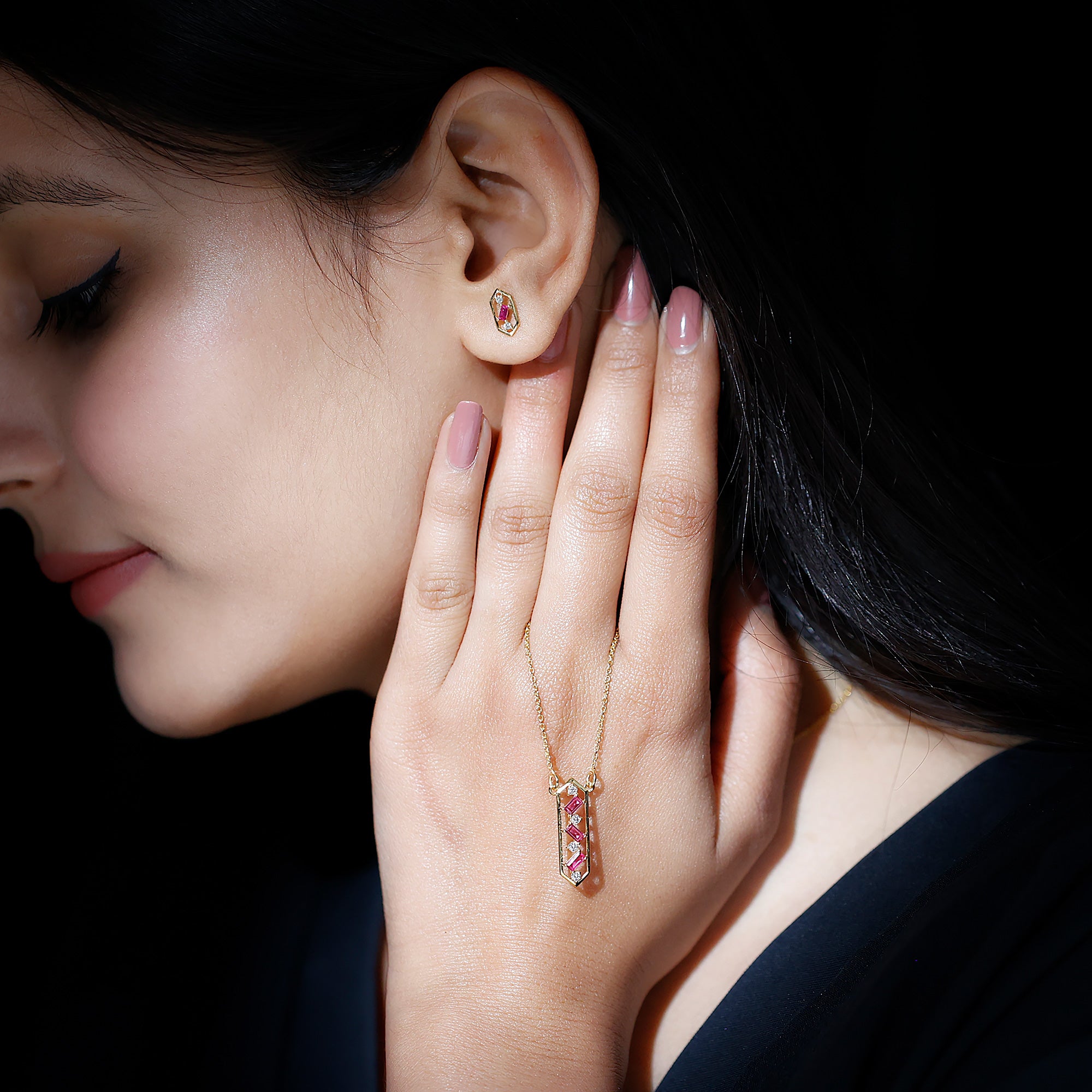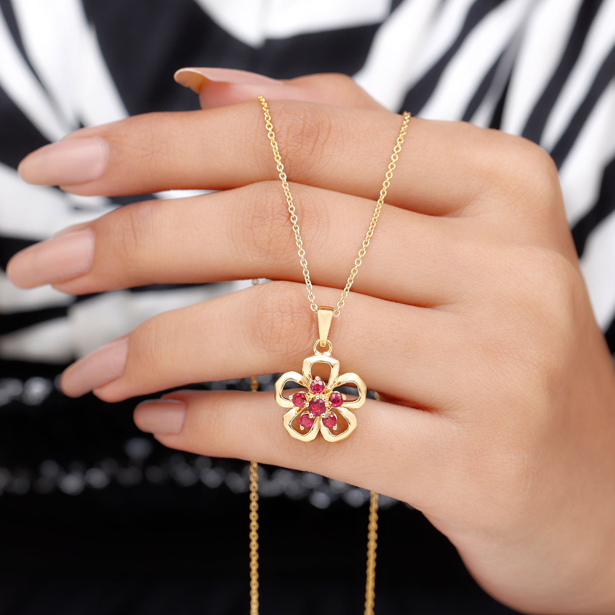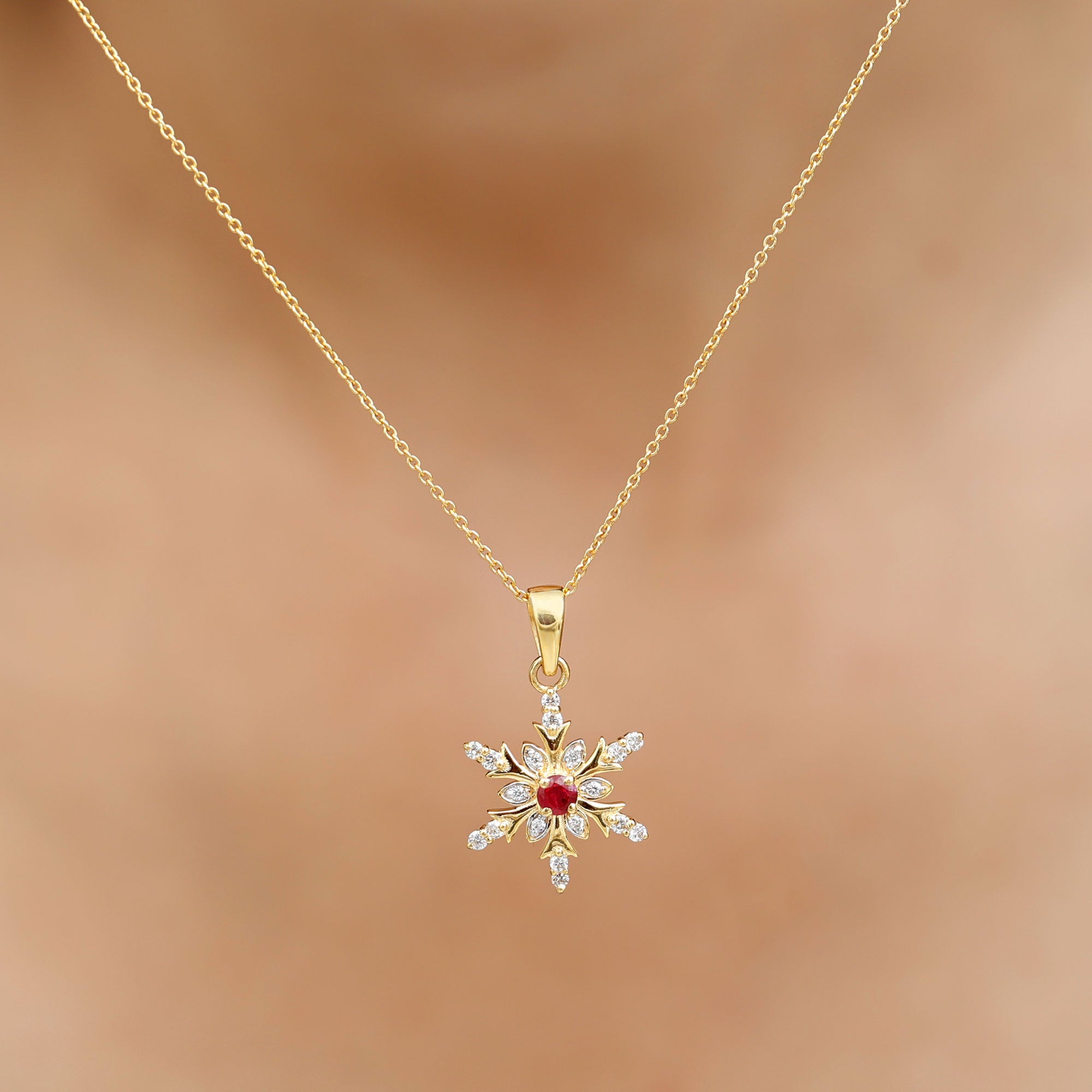 Explore our women's ruby necklace with versatile options in both white and yellow gold. Whether you love to wear them alone or as a set, ruby necklaces add a unique flair to charm to any look. Their dazzling appearance and versatility make red ruby necklaces a graceful addition to your wardrobe.