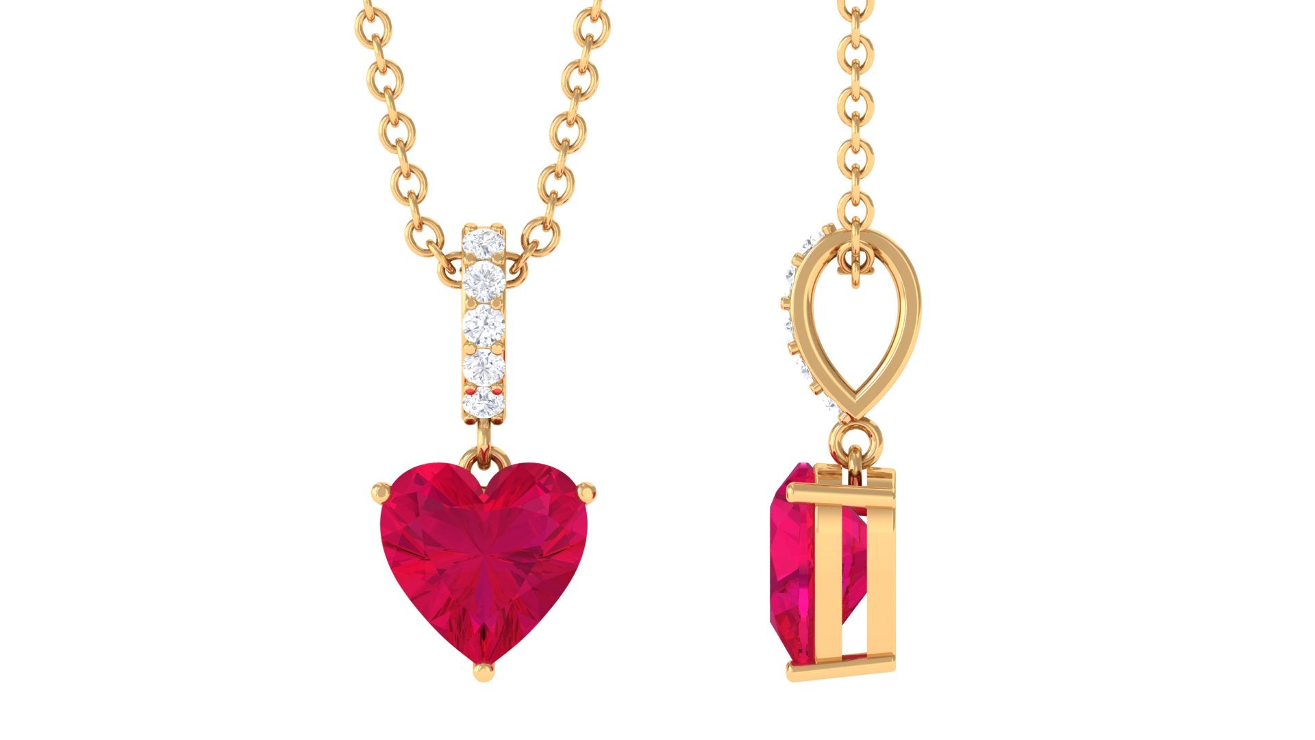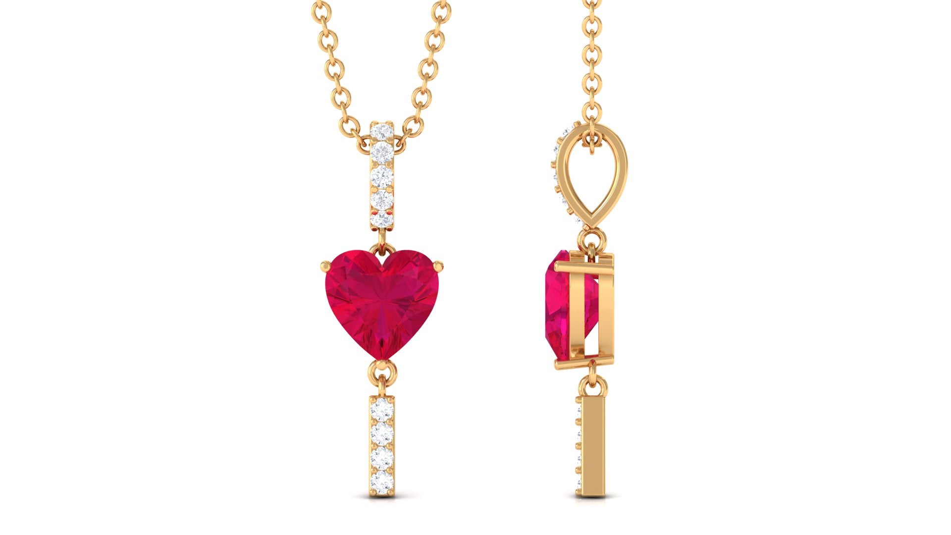 Ruby Heart Necklaces:- Beyond their aesthetic allure, our ruby heart necklaces have an essence of love itself. These rubes are the true symbol of love and romance, shimmering as brilliantly as both the heart-shaped ruby and small diamonds. Their union is divine adornment whispers tales of affection as well as devotion. A mere glimpse serves to convey sentiments beyond words, making it a token of love for your loved ones.