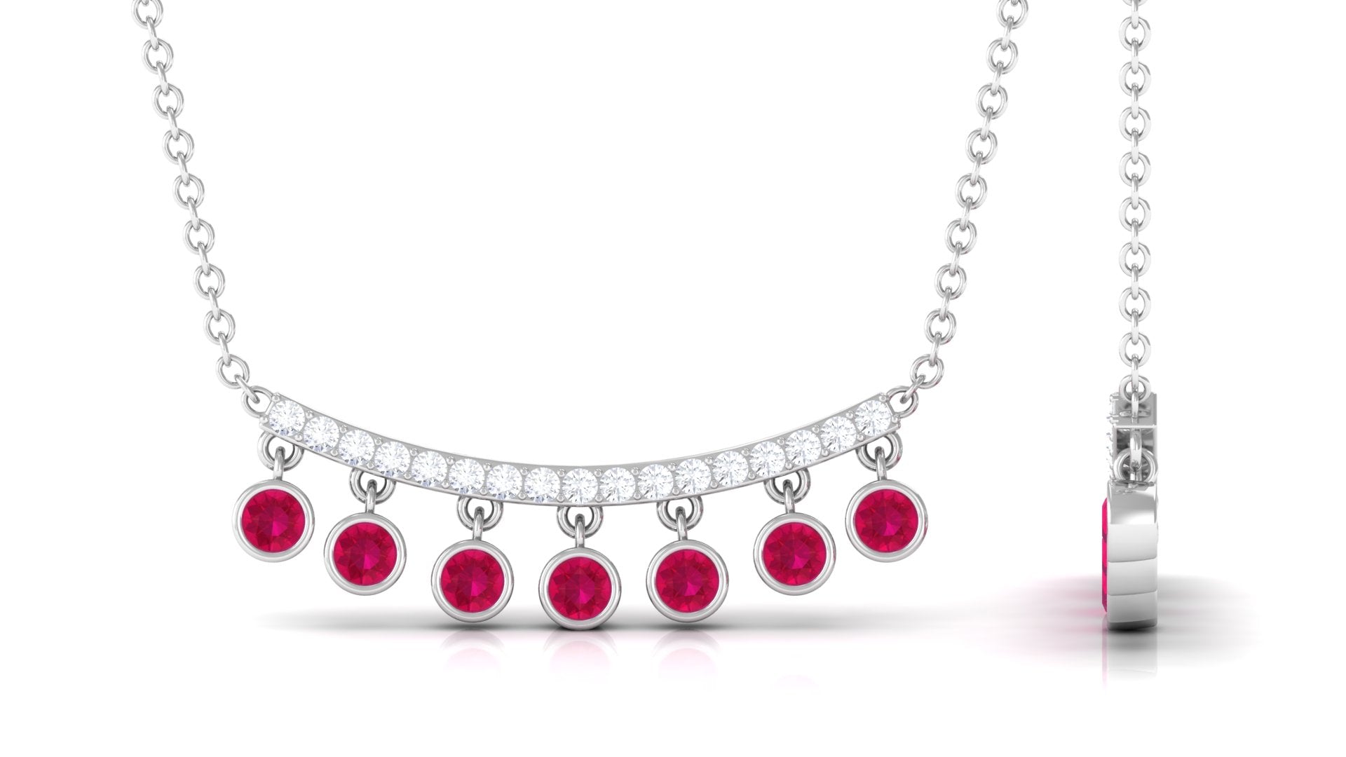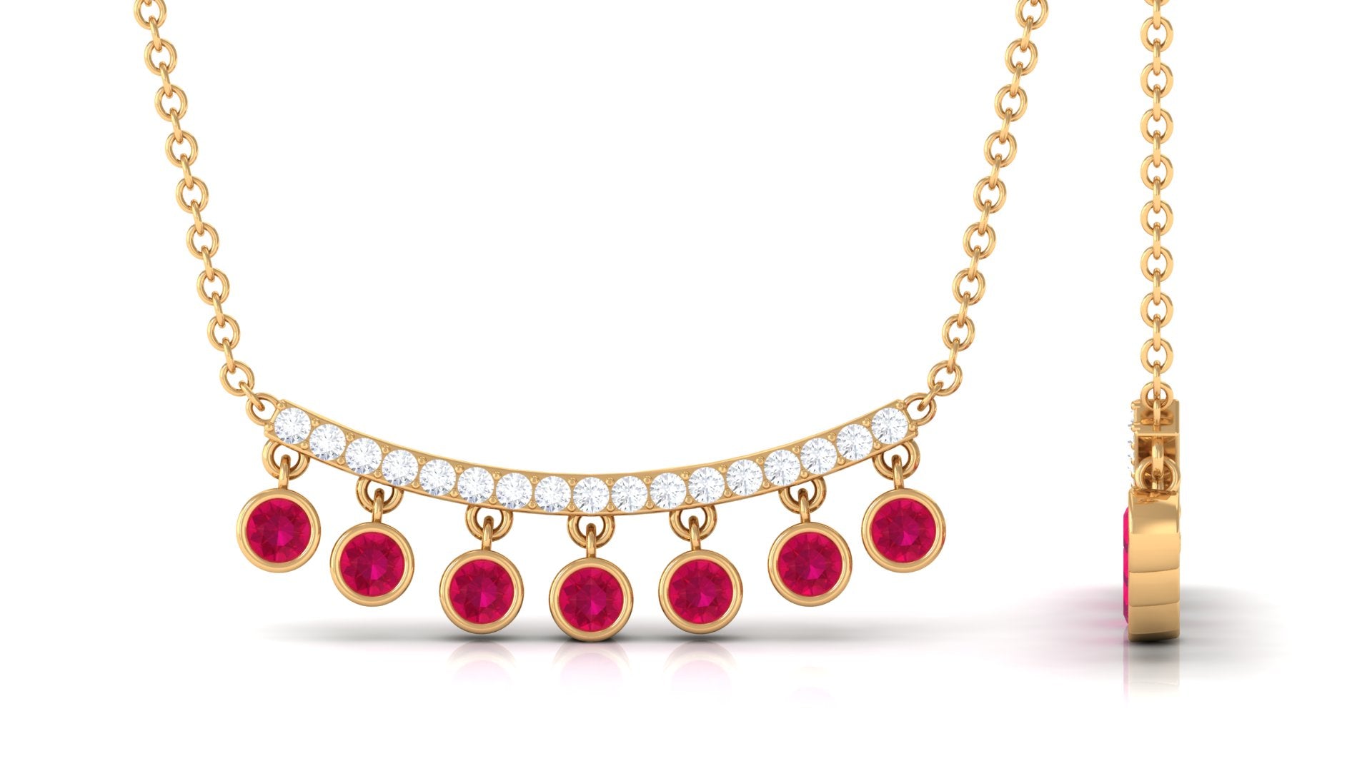 Dangle Ruby Necklaces:- Our dangle ruby necklaces hang gracefully from a looped chain. They gracefully drape to enhance the curve of your collarbones. This bold and stunning piece of jewelry makes a captivating statement with a striking design.