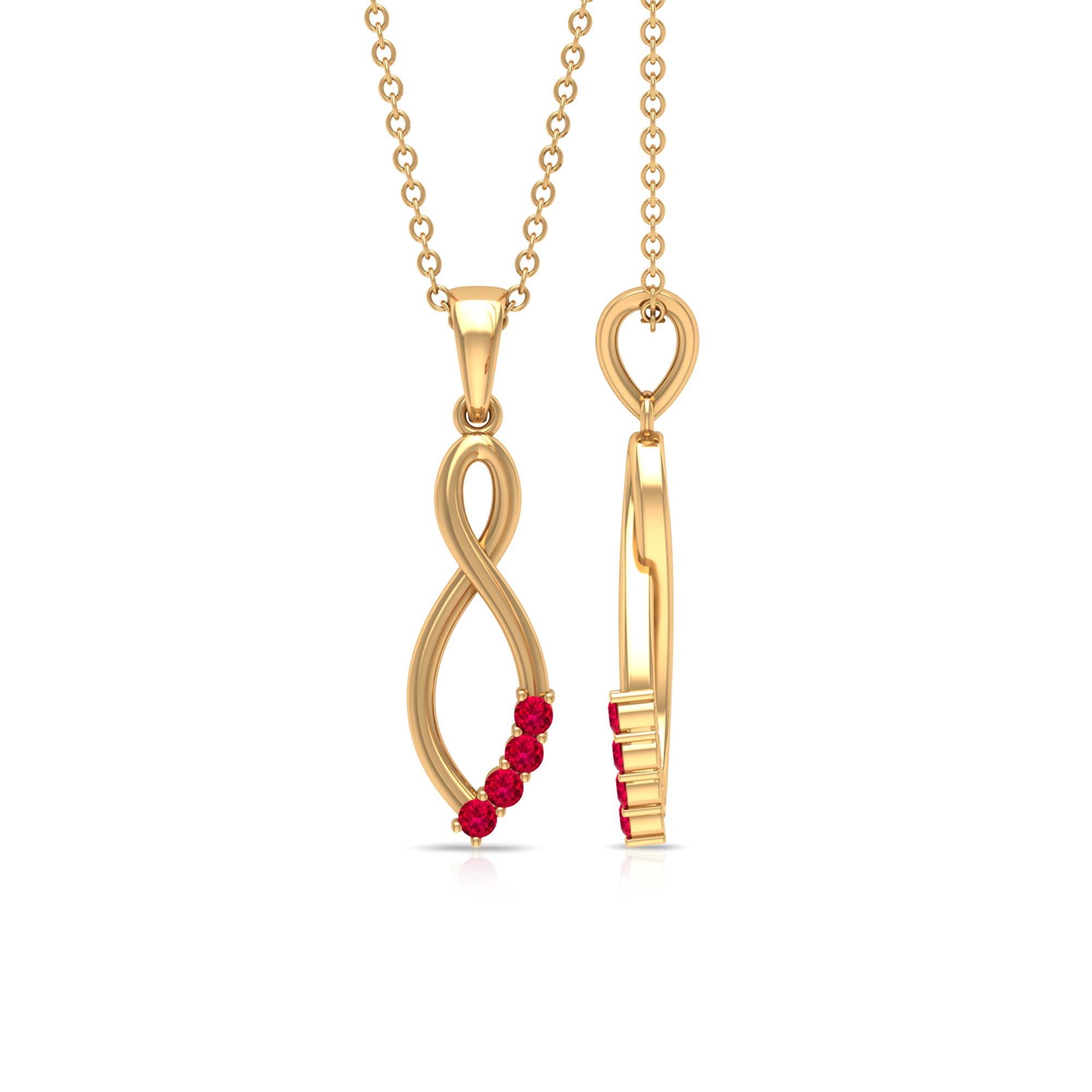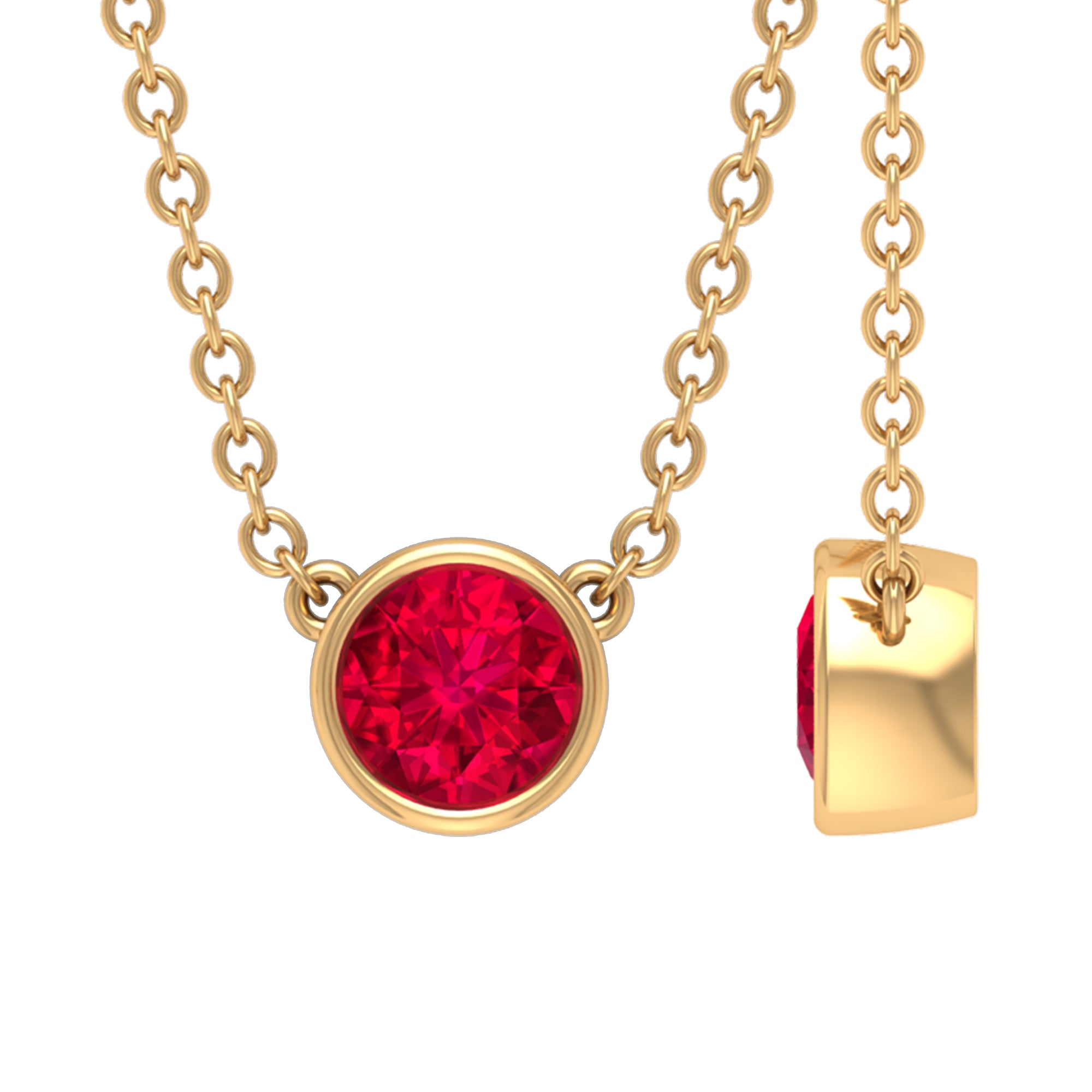 Solitaire Ruby Necklaces:- Features a single red ruby gemstone, hanging from the simple gold chain. These solitaire ruby necklaces offer a sophisticated and elegant look. Ruby pendants are the perfect piece to add a pop of color to any apparel.