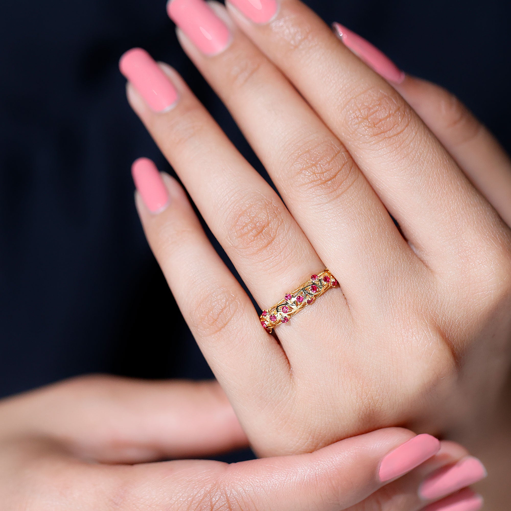 Nature Inspired Rings:- The designs of these rings are drawn from natural elements or greenery earth such as branches, flowers, and leaves. The nature-inspired ruby rings combine these essentials to create a dazzling look. This style of ring is crafted with attention to detail and adds the organic design, that grabs the attention of viewers. Ruby nature-inspired rings will be the perfect match for those who appreciate the beauty of the green world and want to carry its charm always with them.