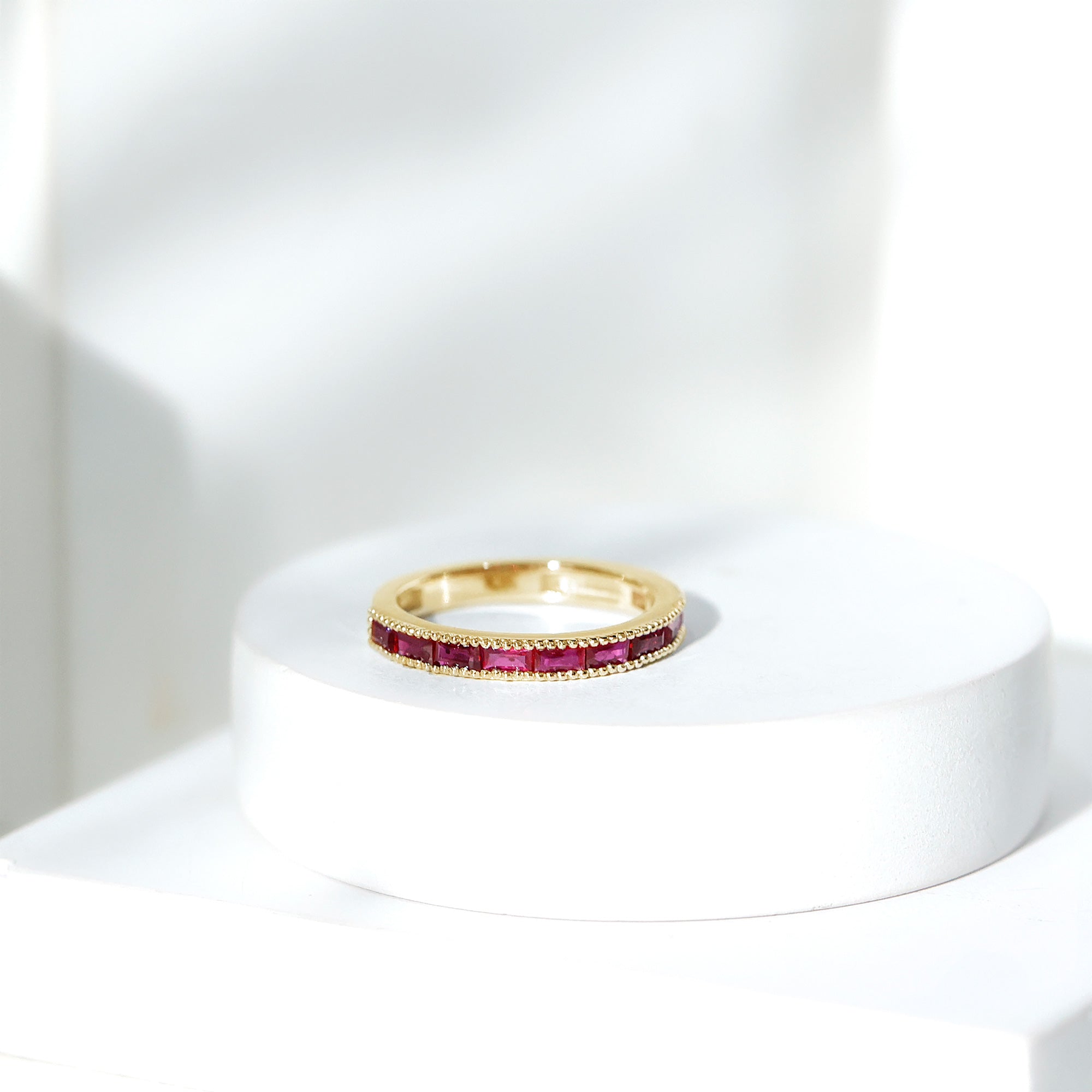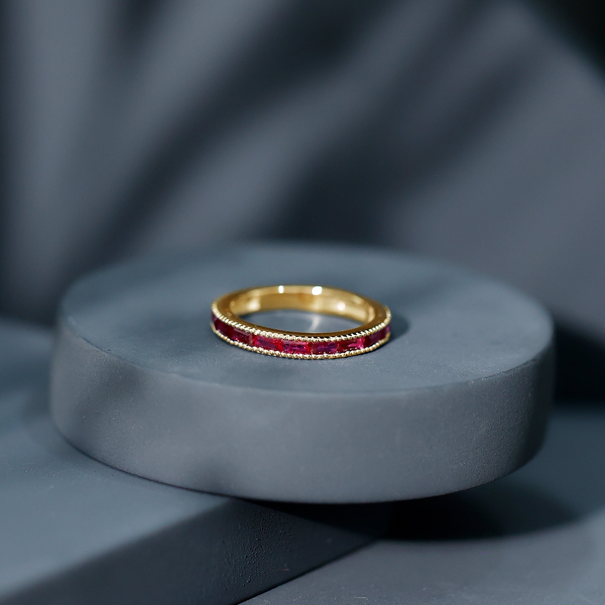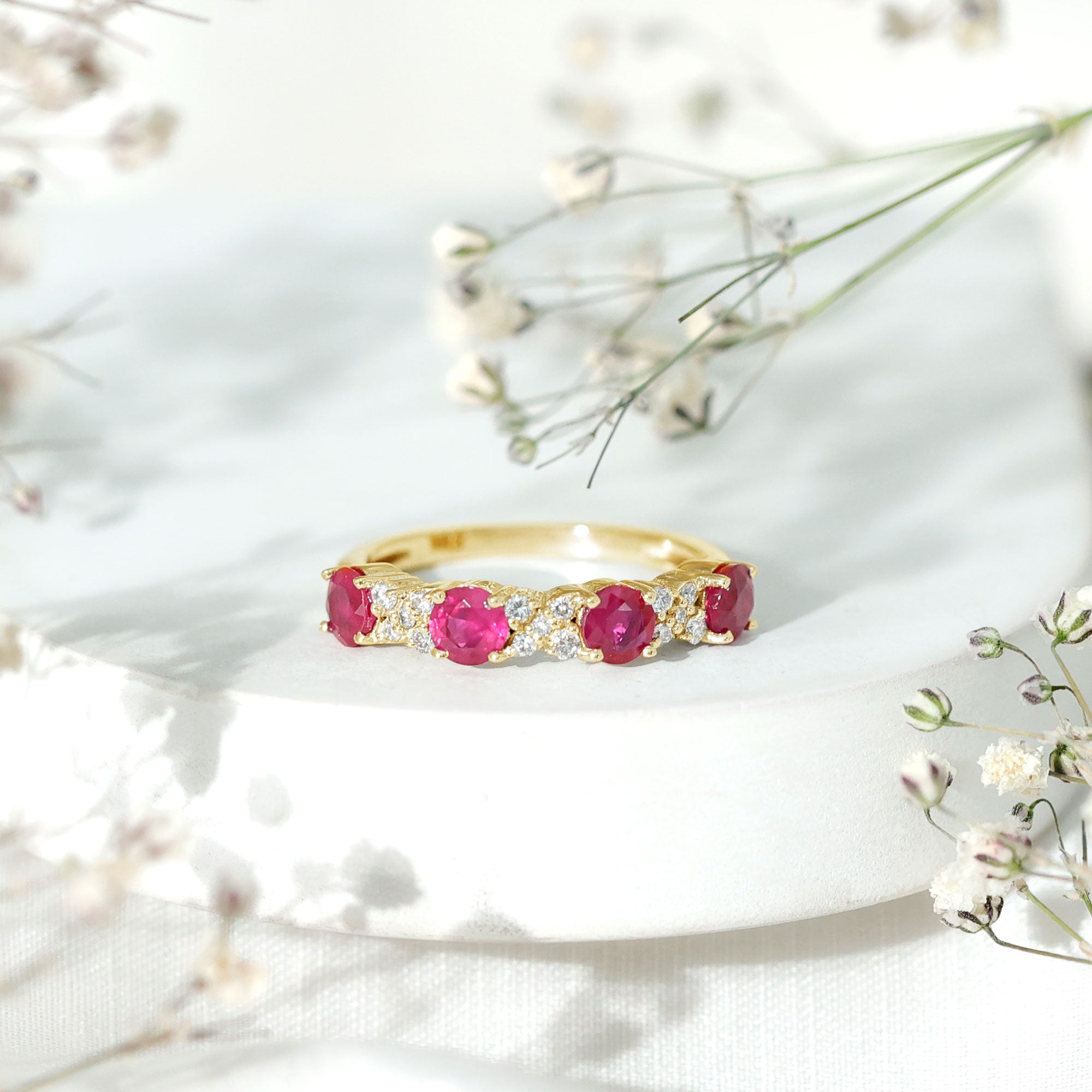 Ruby rings are chosen for their deep red color and enduring symbolism. As the July birthstone, ruby is traditionally associated with love and commitment, making it a meaningful choice for engagement, anniversary, and milestone jewelry.