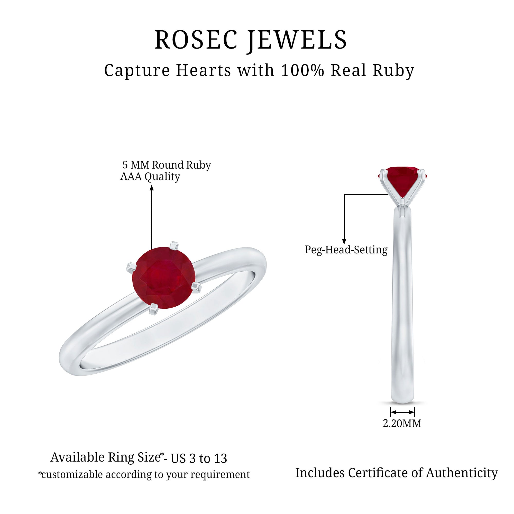 This collection brings together classic and modern designs that highlight the richness of the gemstone while maintaining comfort and balanced proportions. Whether you prefer a minimal solitaire or a more detailed halo setting, the focus remains on secure craftsmanship and refined presentation.