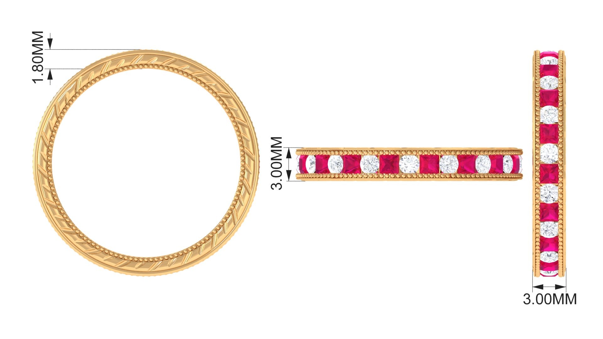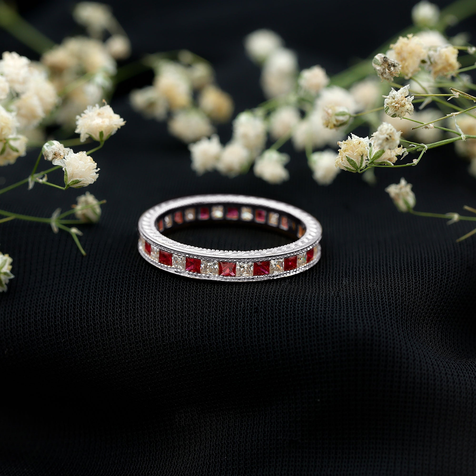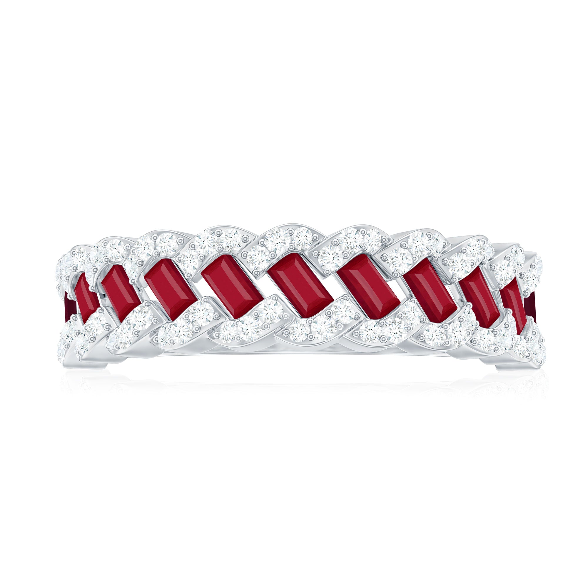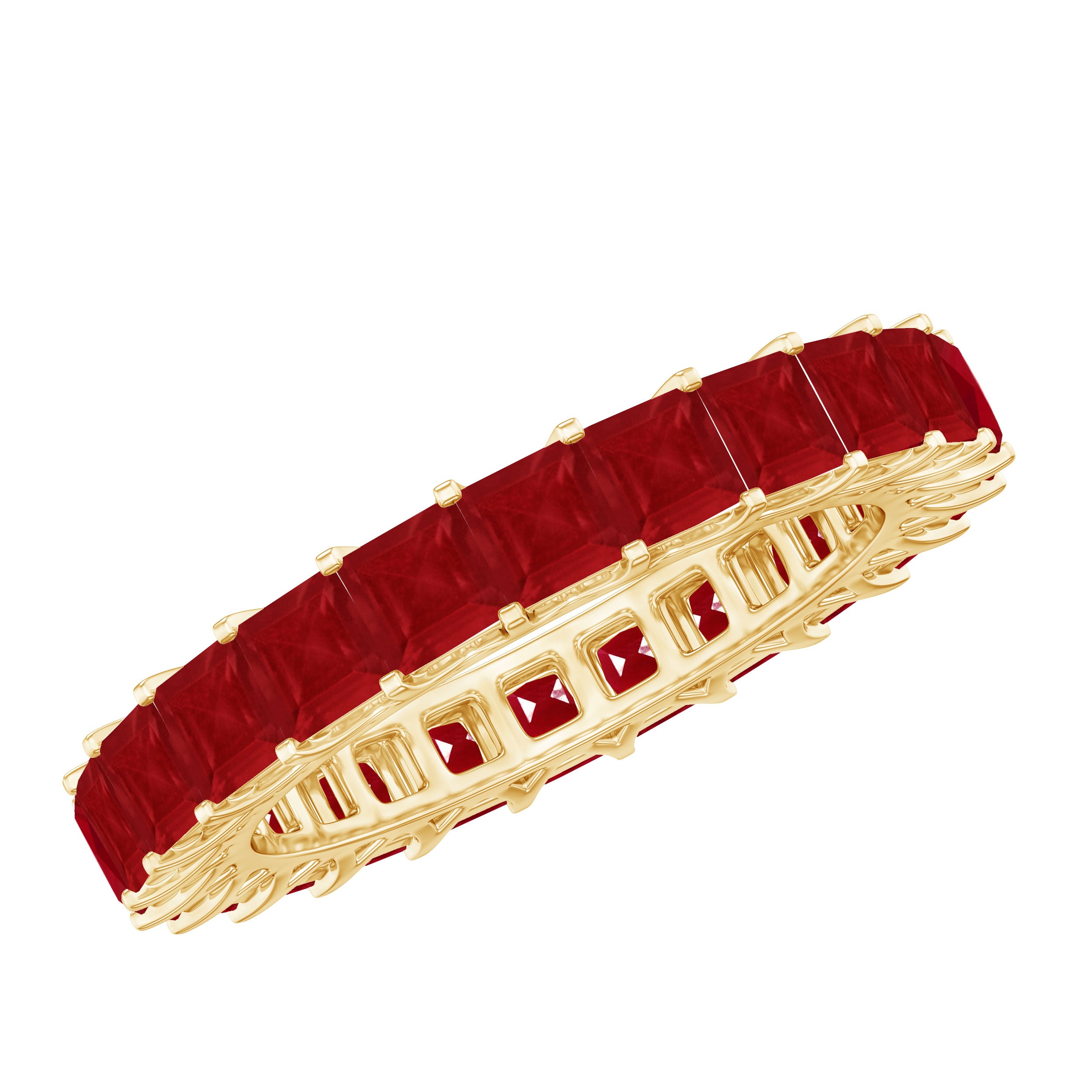 Yellow gold enhances ruby’s warmth, white gold creates crisp contrast, and rose gold softens the overall appearance. The best choice depends on your preferred aesthetic.
