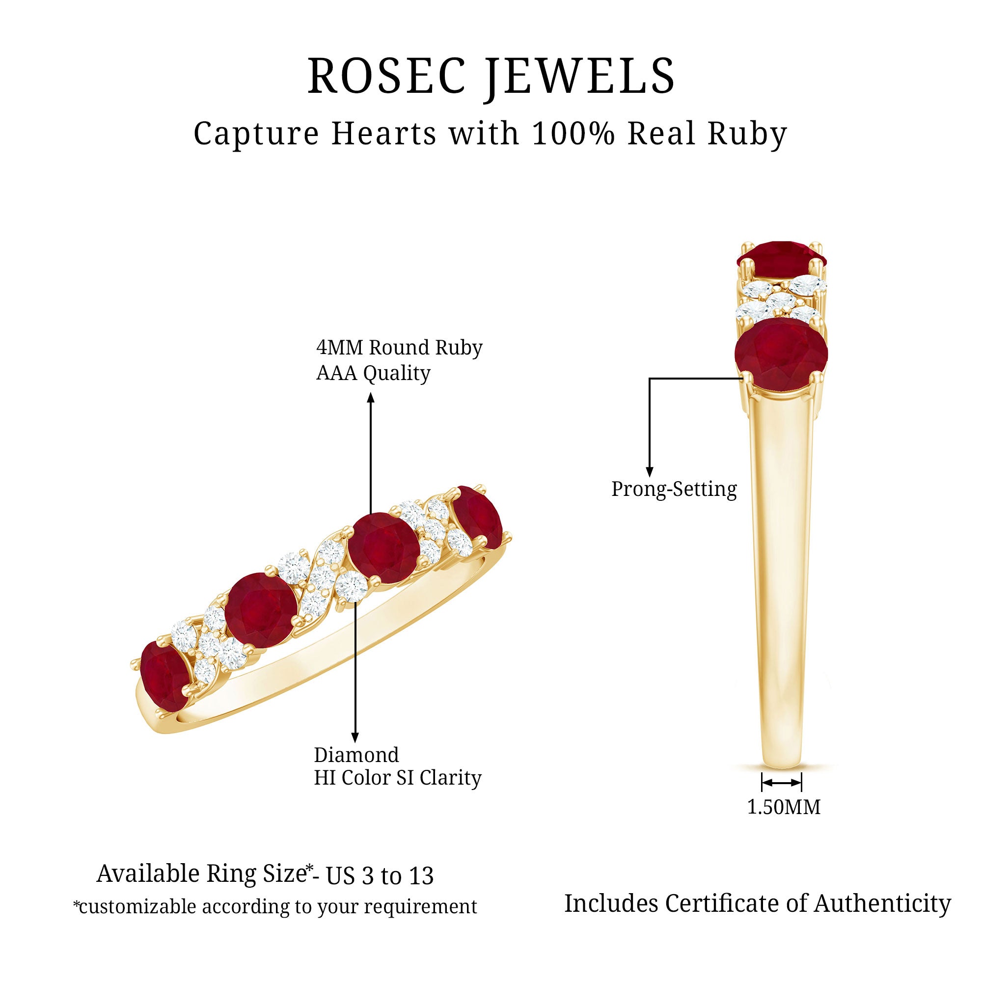 Ruby is a durable gemstone and can be worn daily when secured in a well-constructed setting. Designs with protective prongs or halo frames help reduce exposure to impact.