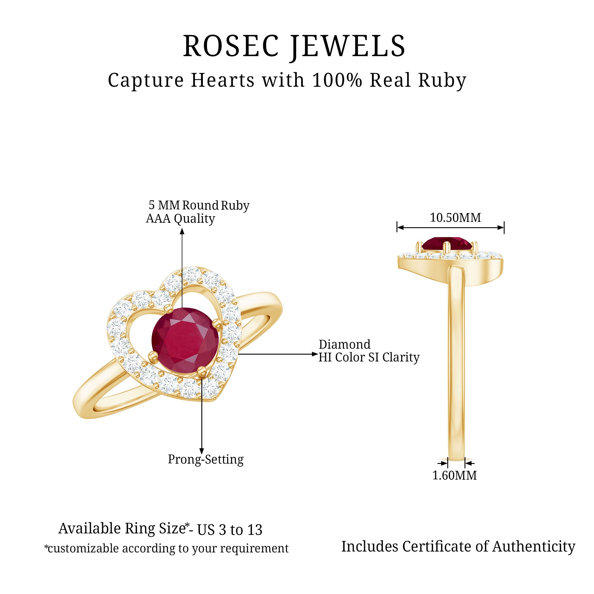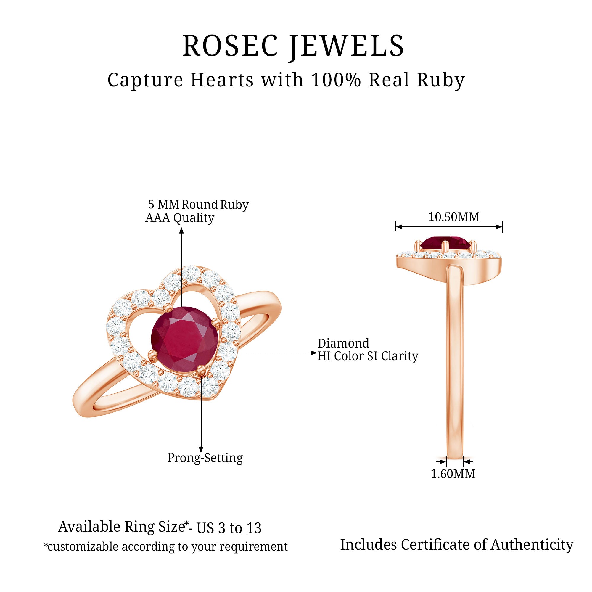 Heart Rings: - our heart ruby rings are elegantly secured in a prong setting or bezel setting. These rings feature a heart-shaped ruby as the center of attraction, which is the symbol of love, passion, and devotion, a popular choice for romantic occasions and daily wear. The deep red ruby makes the stunning contrast with the white gold metal, a must-have accessory to your wardrobe.