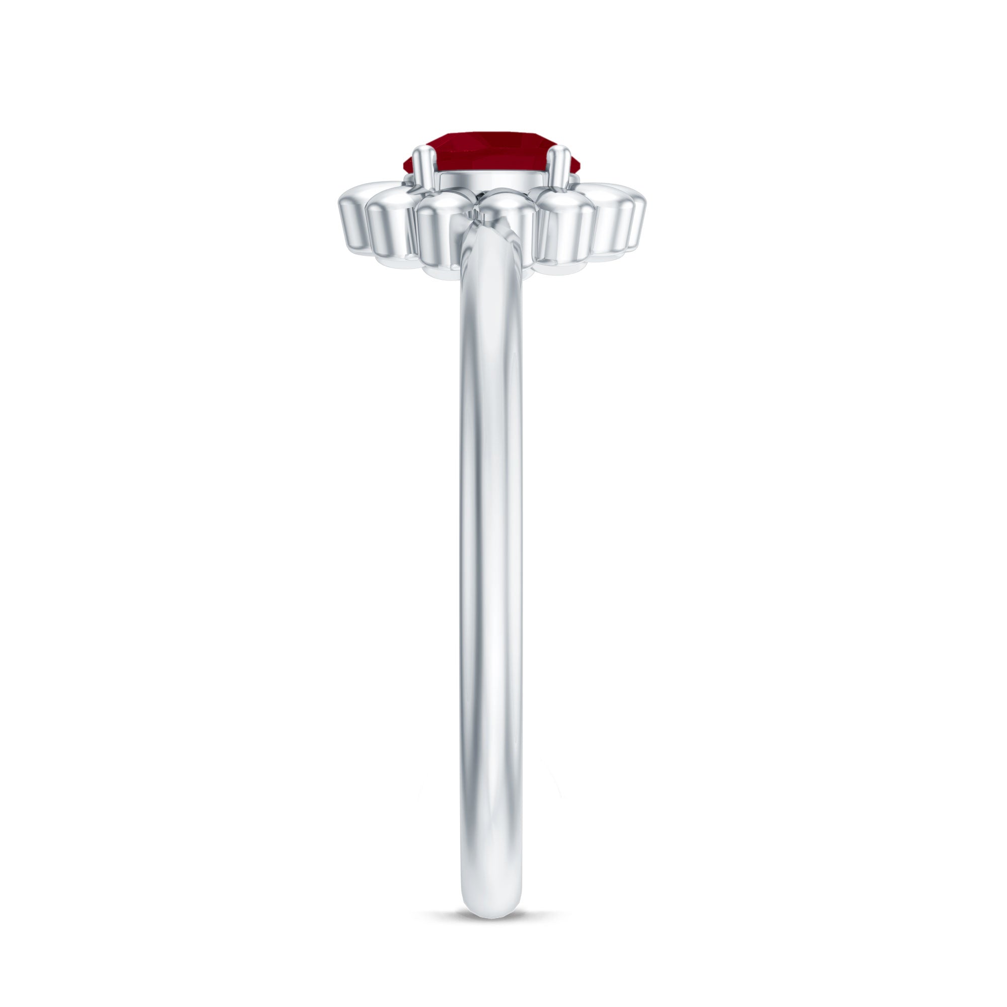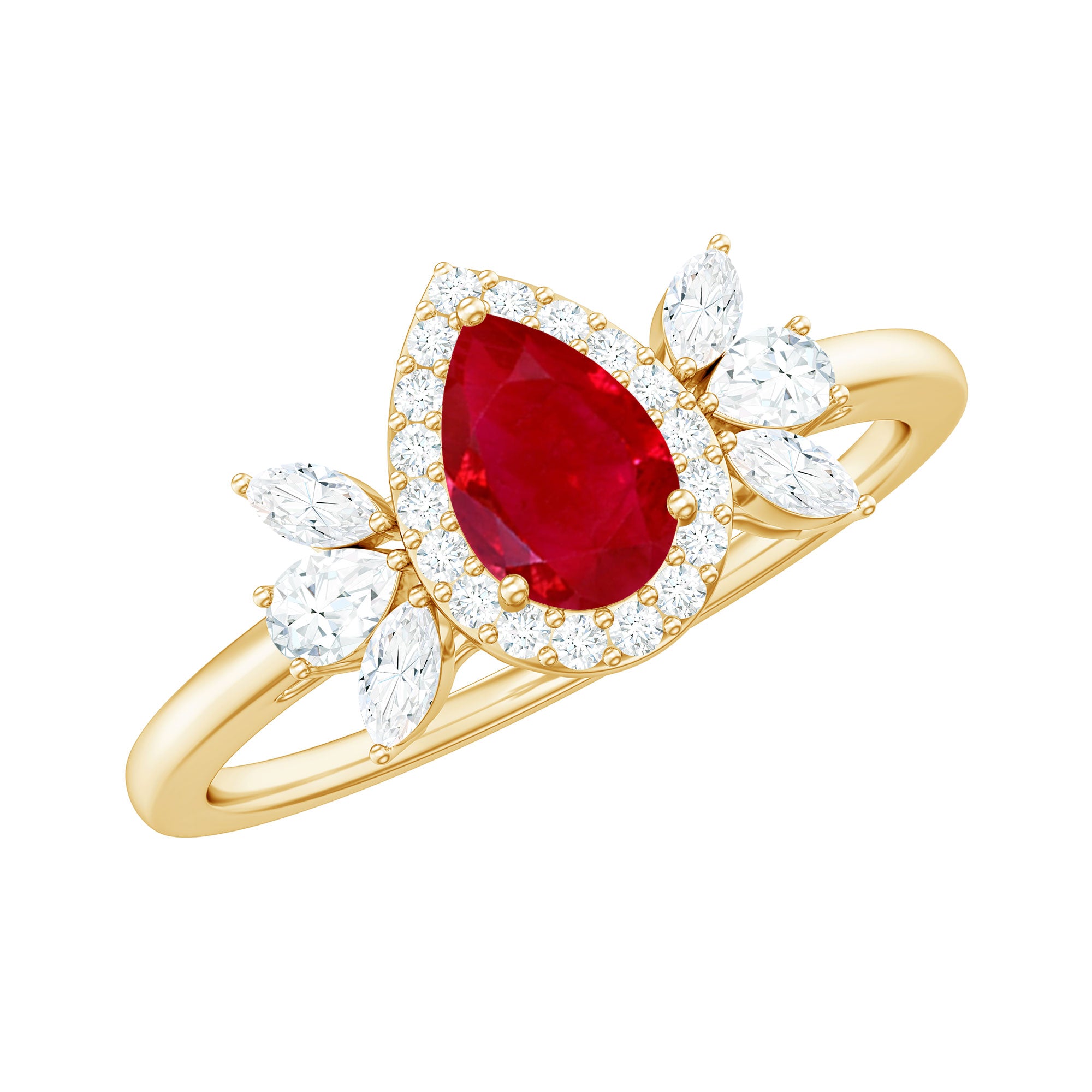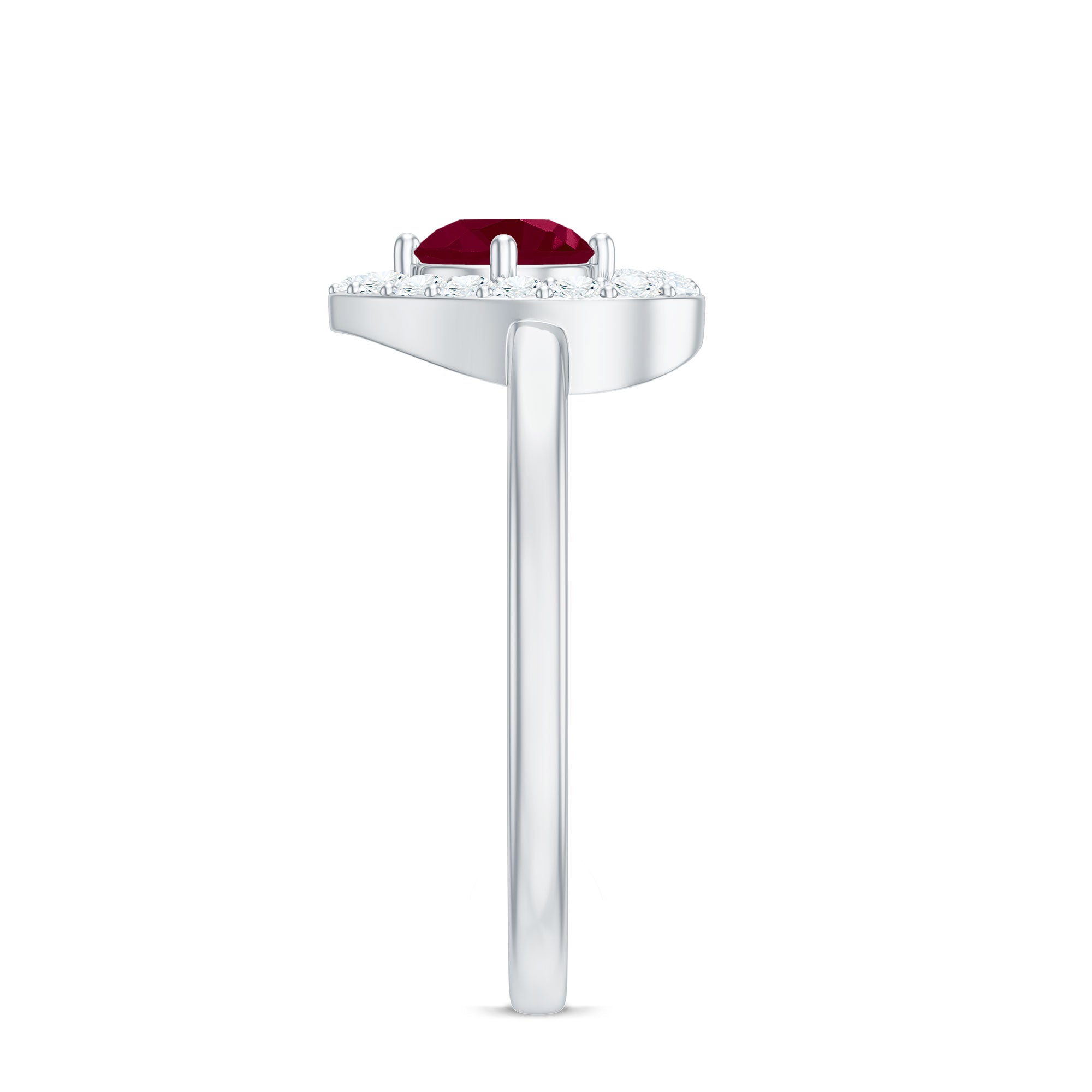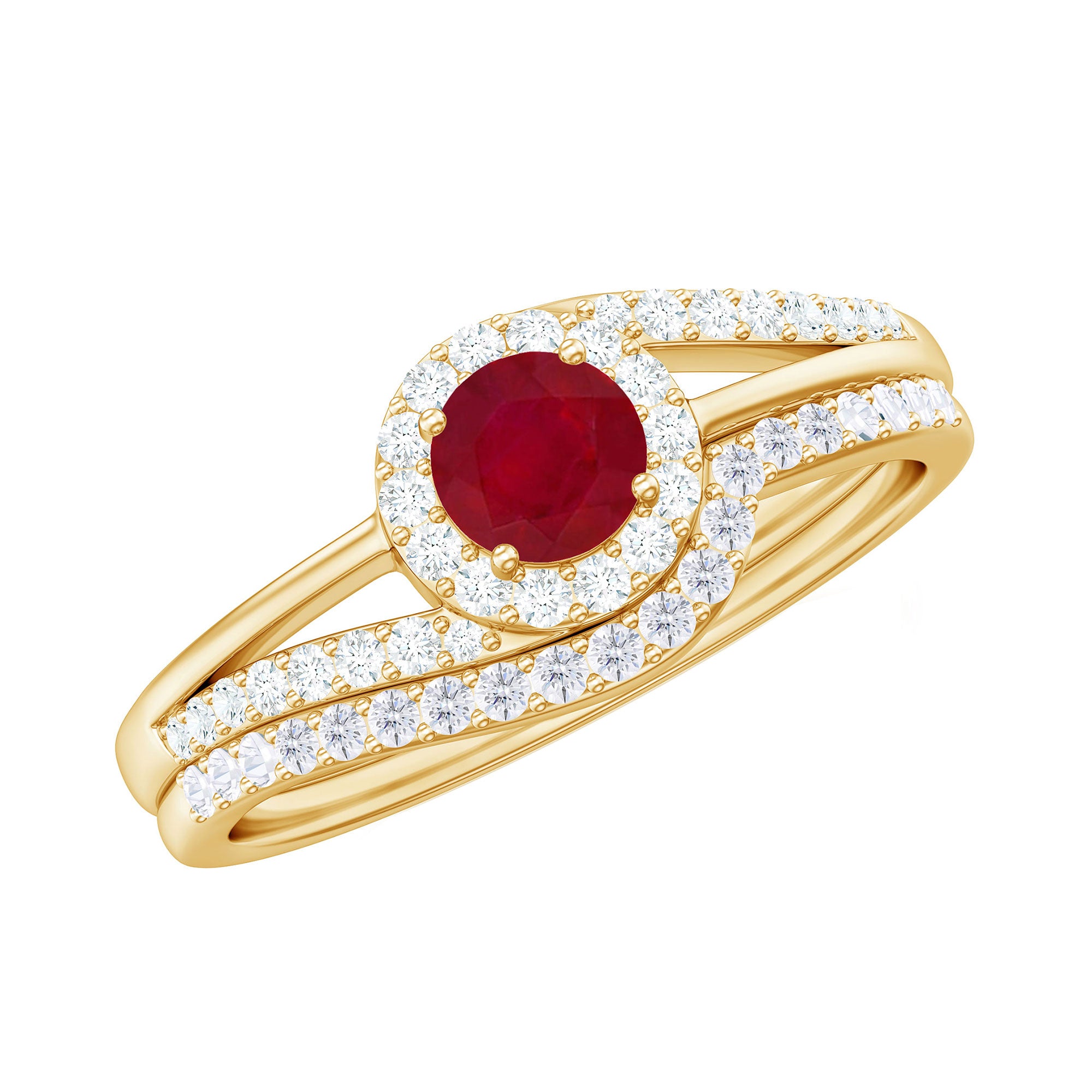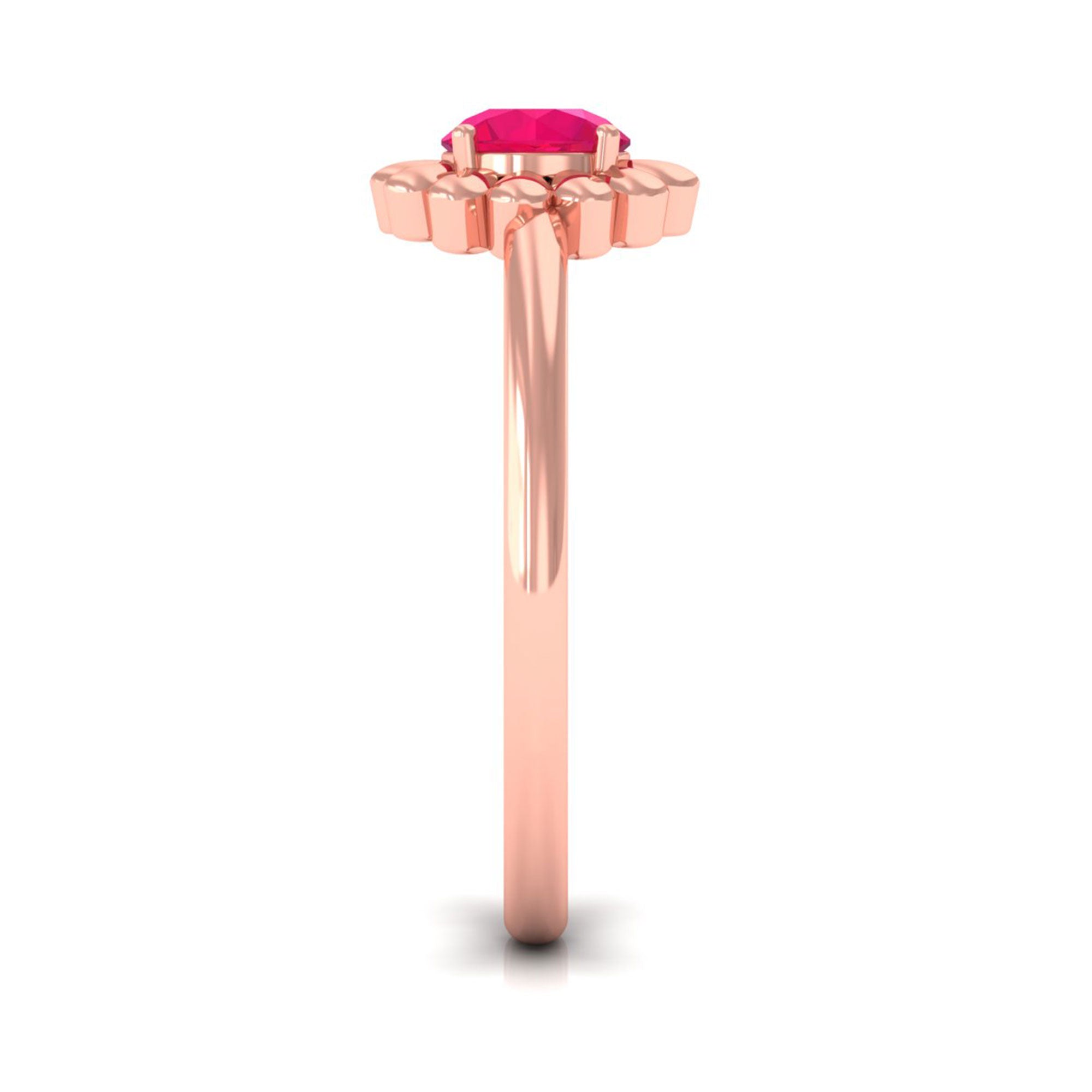 Halo Rings:- This style of ring features a vibrant ruby gemstone encircled by a diamond or moissanite halo, showing the beauty and brilliance of the center gemstone. These ruby halo rings become very popular and an ideal choice for those who want the touch of sparkle in their accessory.