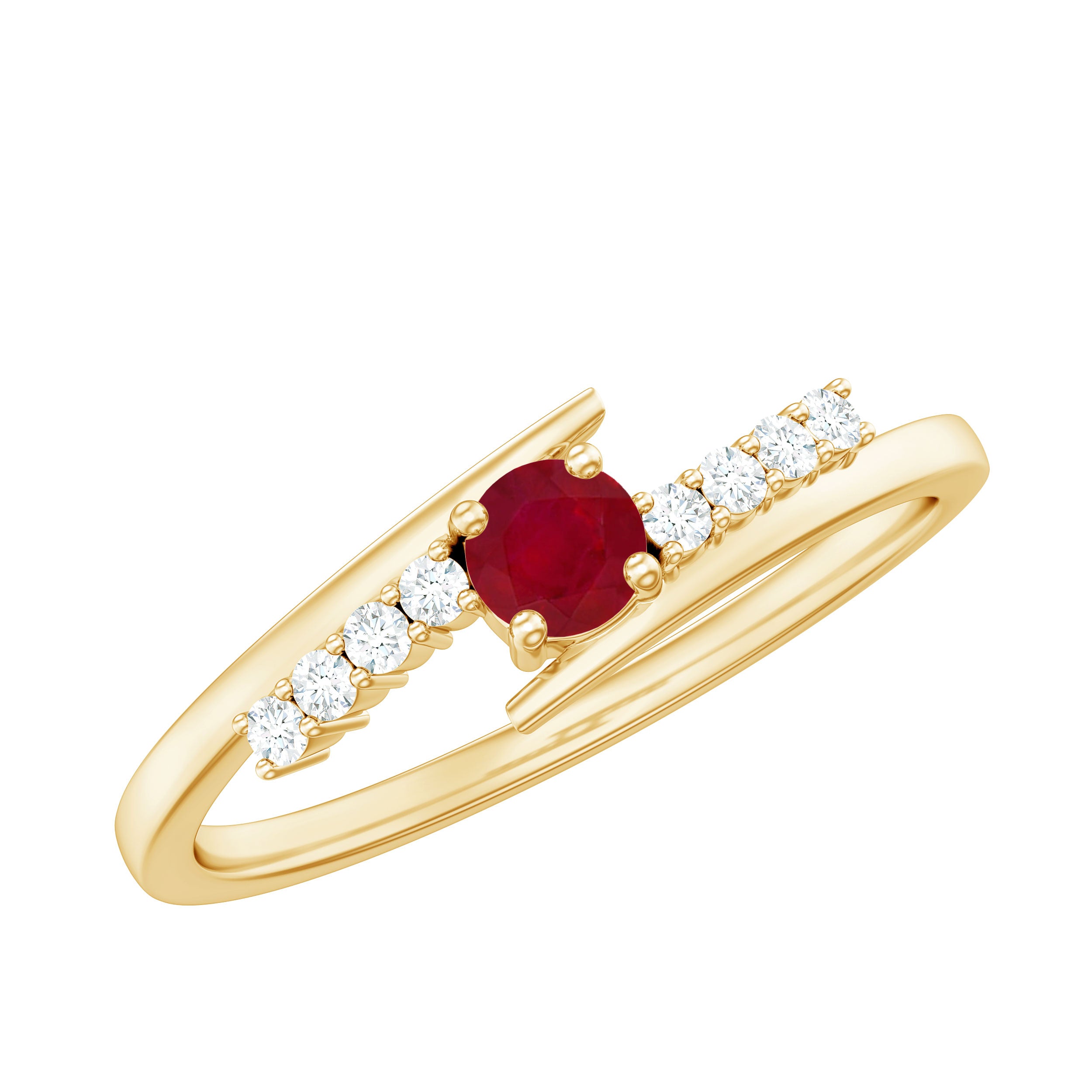 Solitaire Rings: - Graced by a single ruby gemstone, this solitaire ring holds a distinctive vibe. The simplicity of this solitaire ruby rings capture the hearts of onlookers. This type of style is best for those women who appreciate it as simple yet classic. Each ruby in solitaire ring set on yellow gold, or white gold metal brightens the design with its unlimited sparkle.