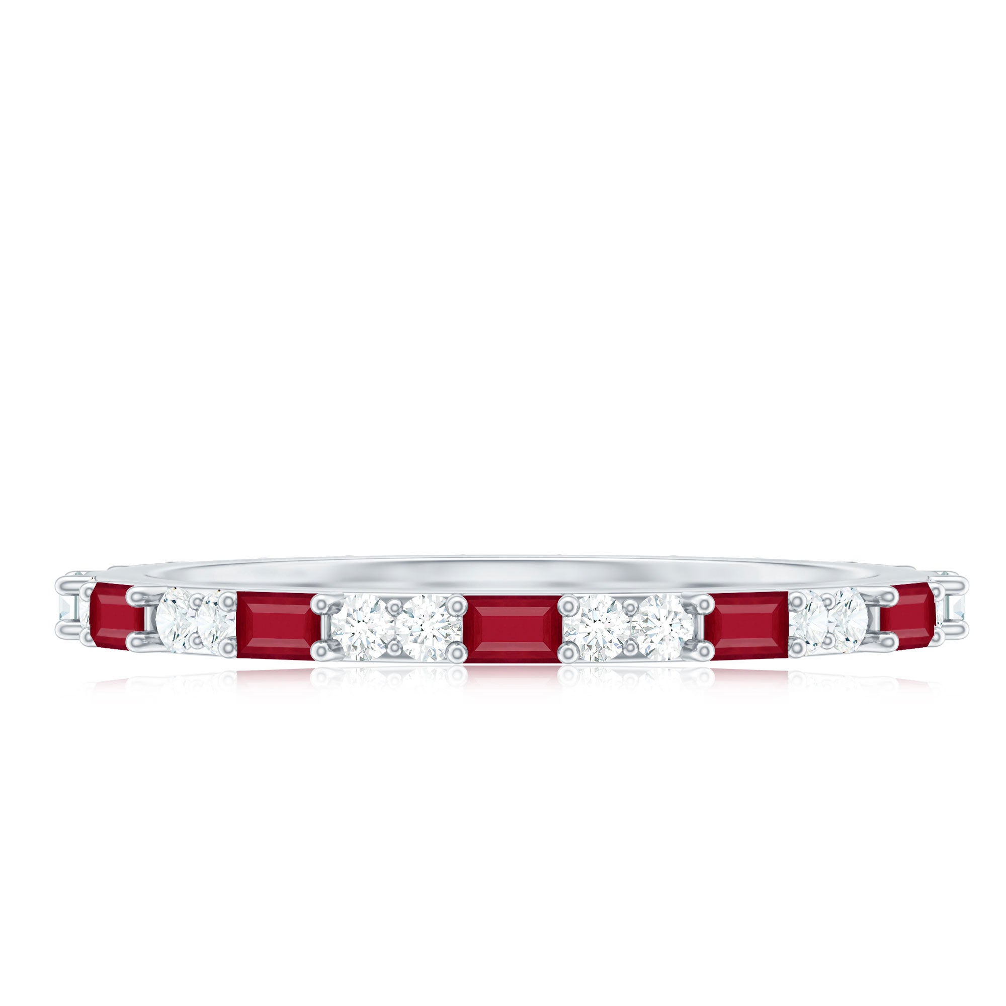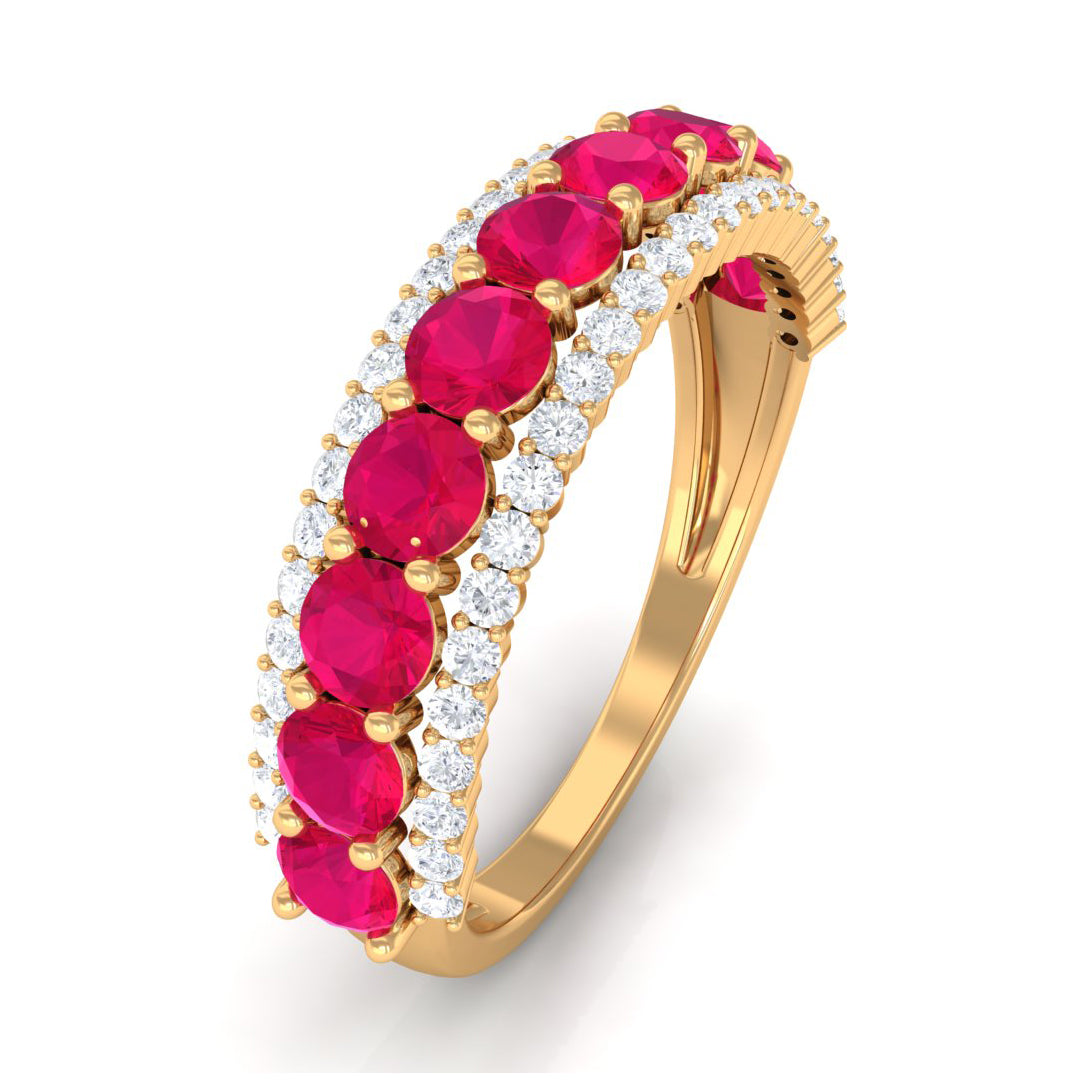 Eternity Rings: - Offering timeless elegance and beauty the ruby eternity rings are crafted with a stunning ruby gemstone, and precious white gold or yellow gold metal. Each half-eternity and full-eternity ring is carefully designed to stay forever while keeping the shine of the ruby stone.