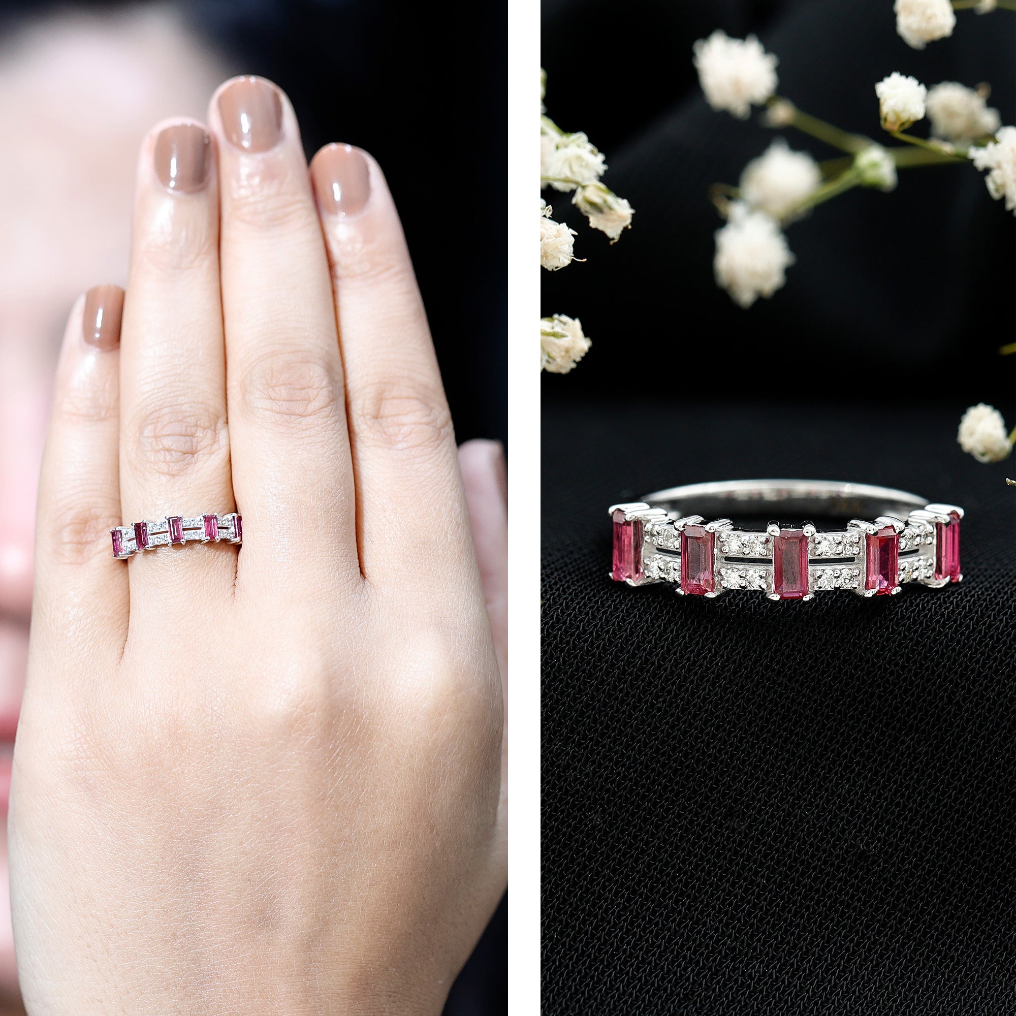 Rubies are fascinated for their natural fiery beauty and rarity among couples. The blazing hues and exceptional hardness vouch for the suitability of rubies in wedding rings.