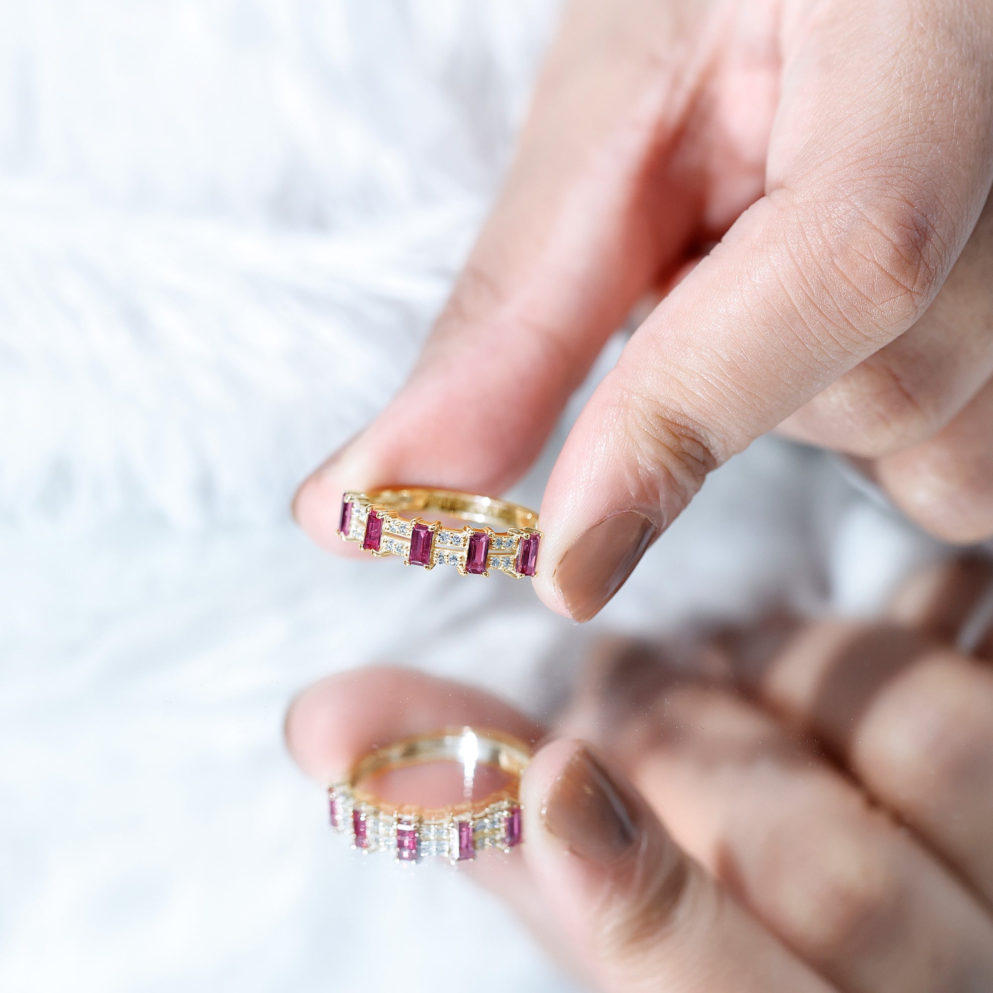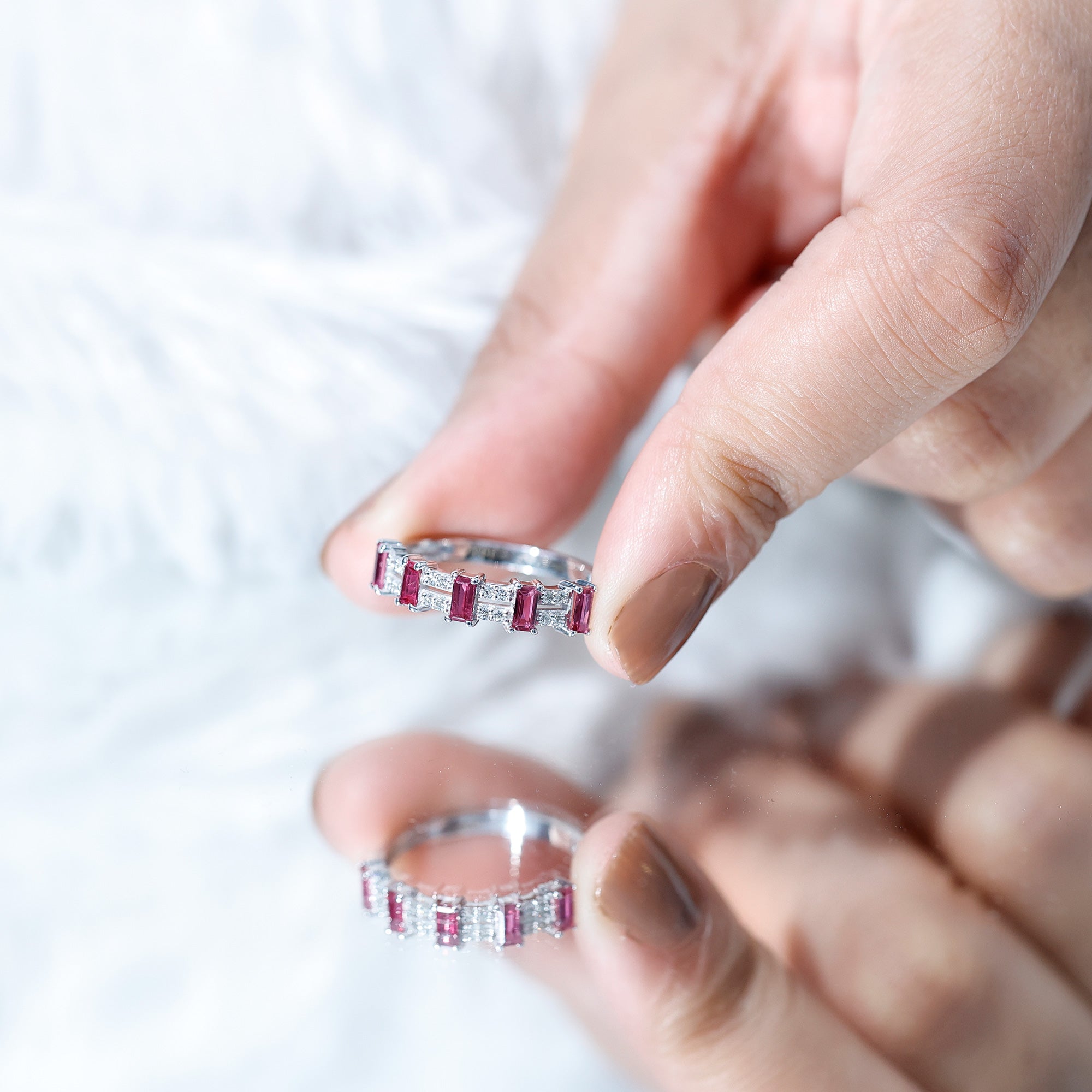 • Clarity: Rubies are expected to have inclusions and ensuring eye-clean clarity is a must while buying ruby band rings.