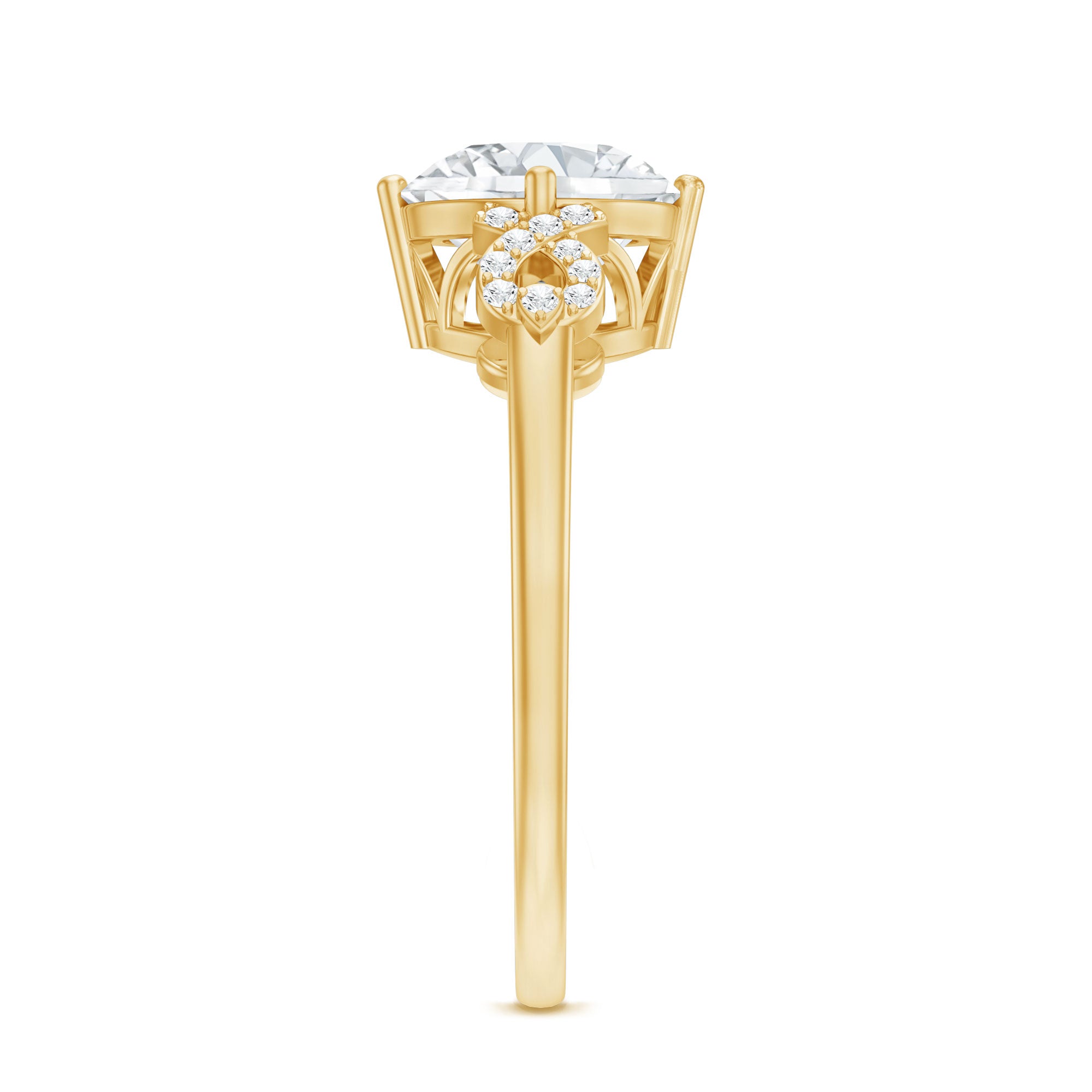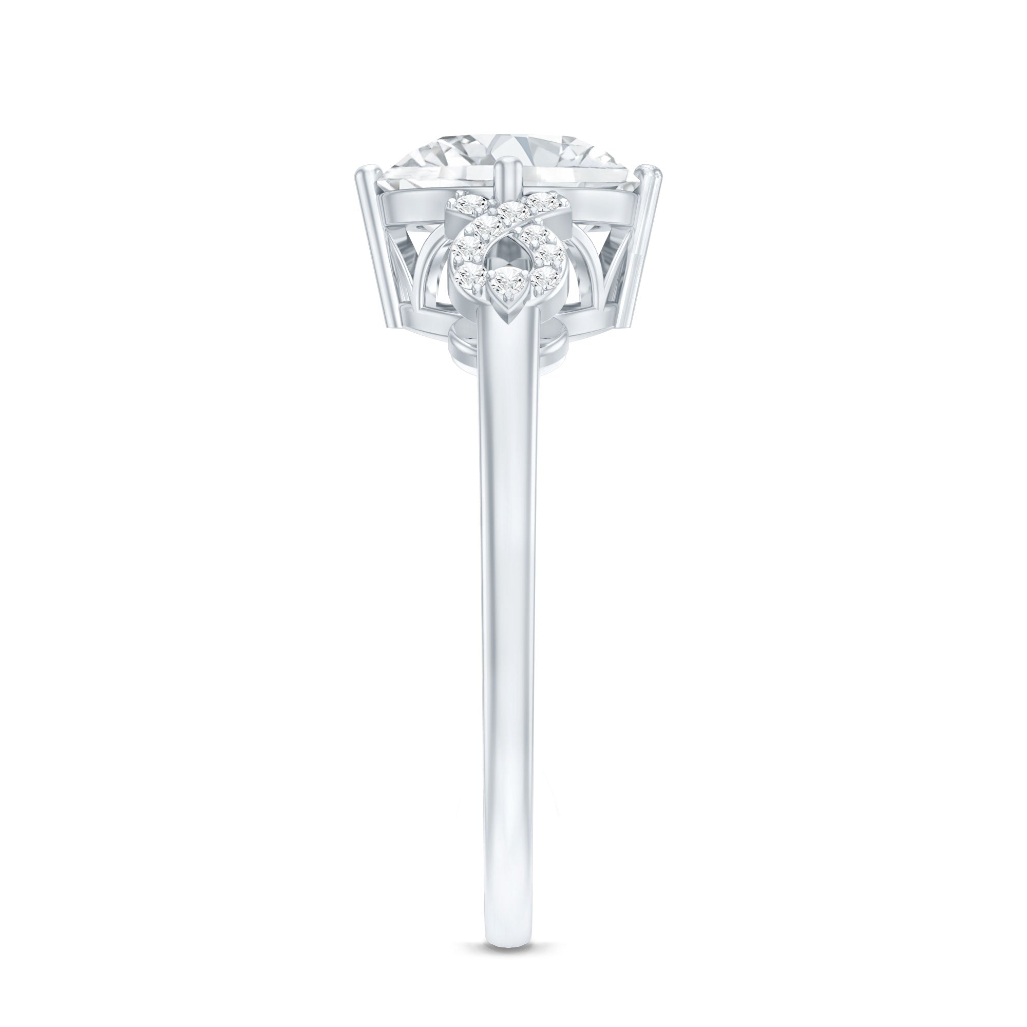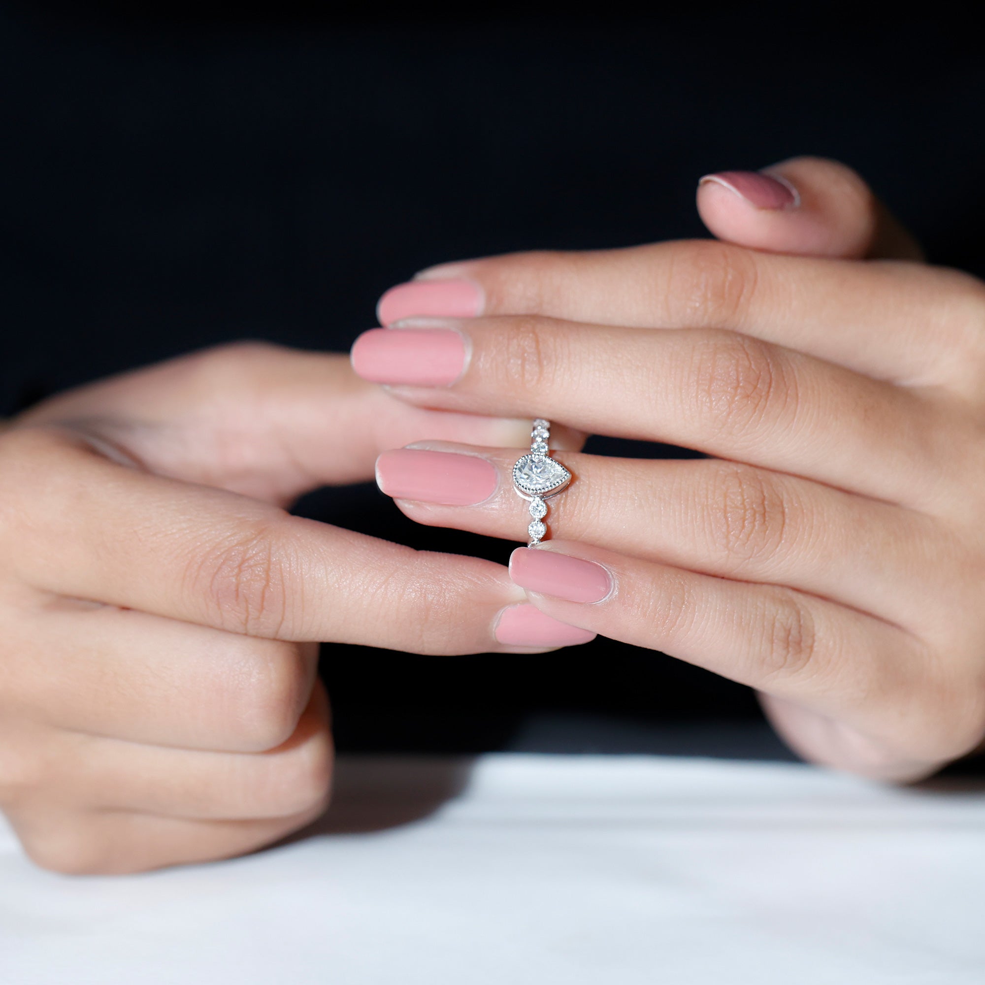 Considered extremely flattering and fancy, a Pear Shaped Solitaire Ring features a Center Stone that is characterized by a pointy end and a rounded edge (often termed as teardrop shape). It makes for one of the most Unique Solitaire Engagement Rings out there, all thanks to the beautiful bow-tie effect that it exudes (as the result of light not reaching the middle of the Center Stone).