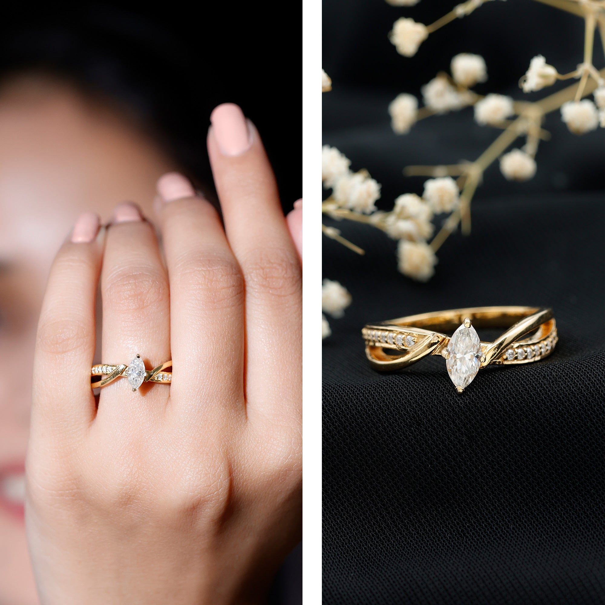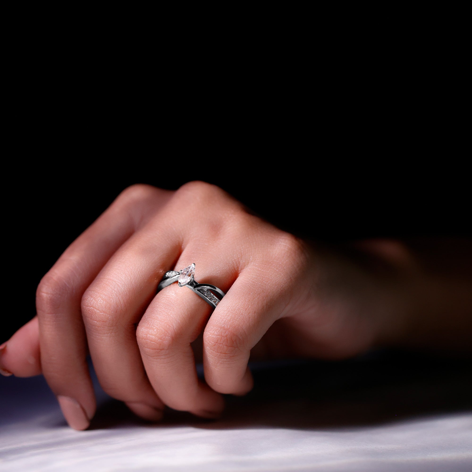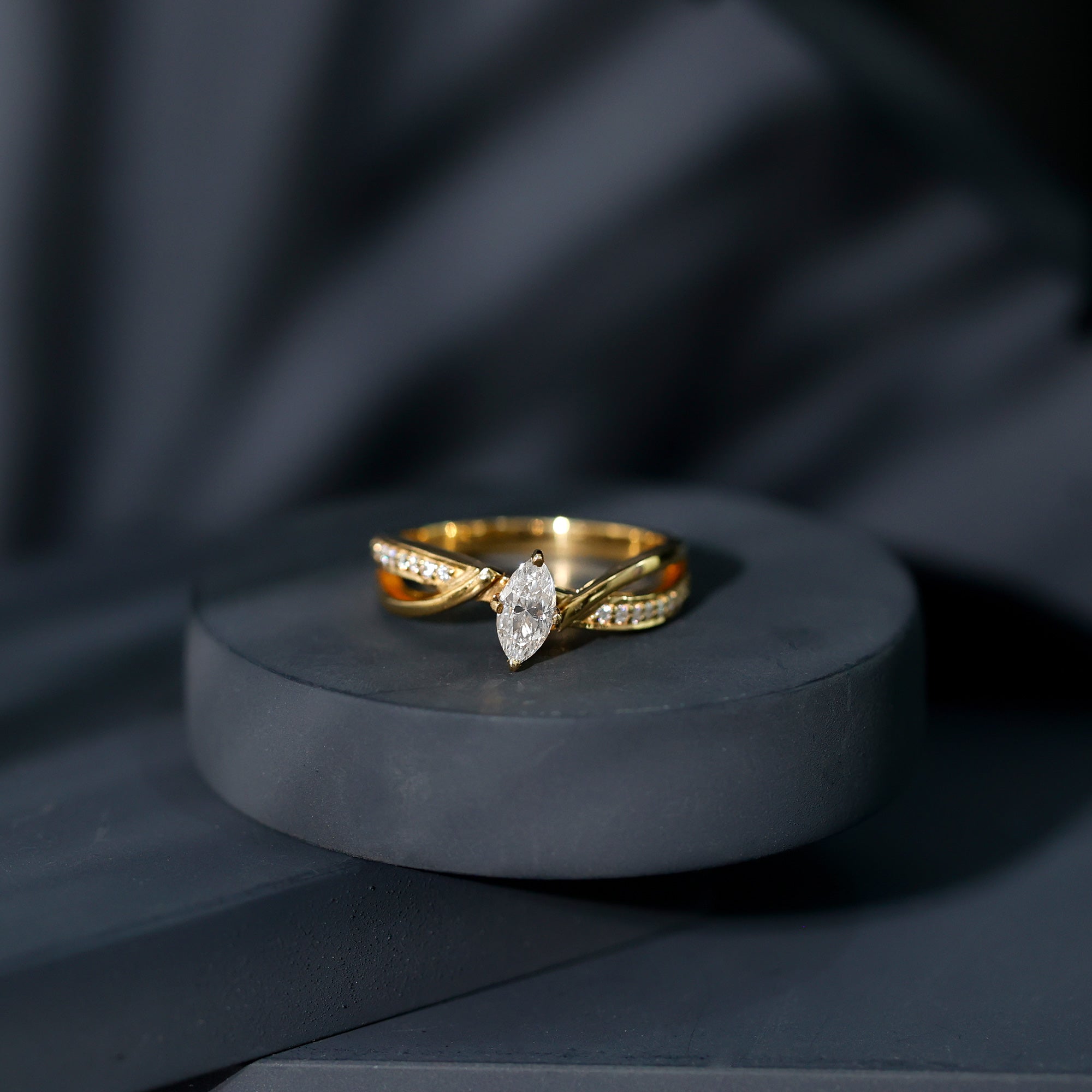 Desired for its fancy look, a Solitaire Marquise Engagement Ring is characterized by a smile-resembling shape that features curved sides and pointed tips. Owing to its elongated shape, it gives off the illusion of a larger looking ring. Moreover, thanks to the arrangement of 58 facets, it also catches the eye with its beautiful bow-tie effect.