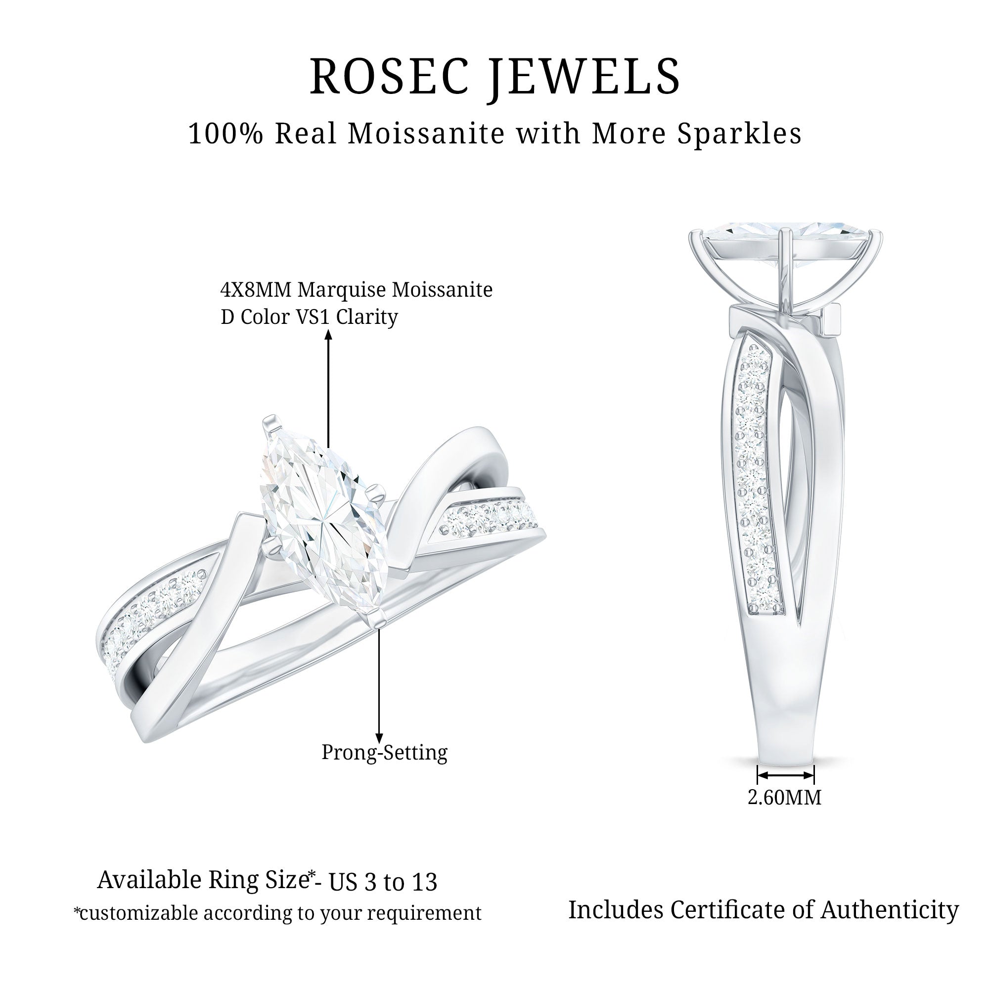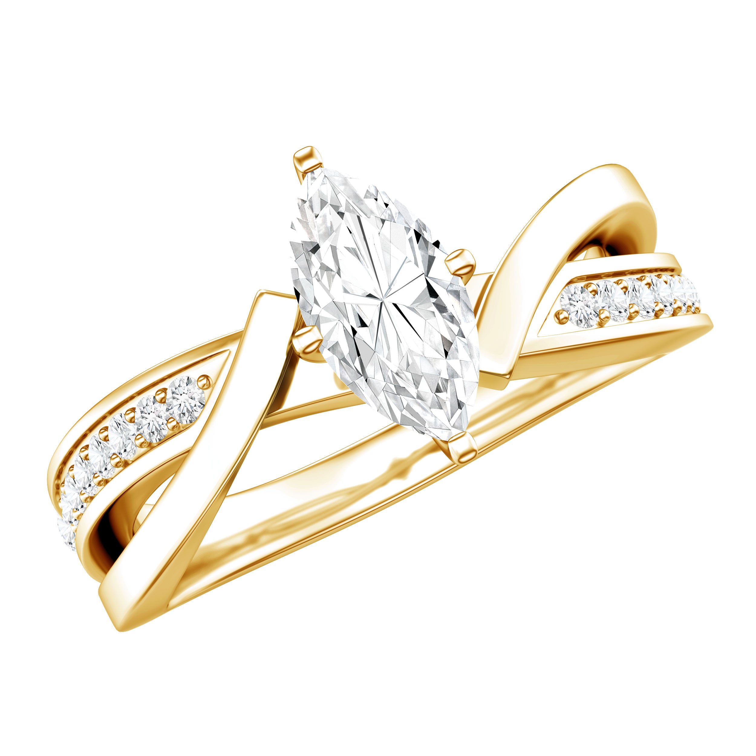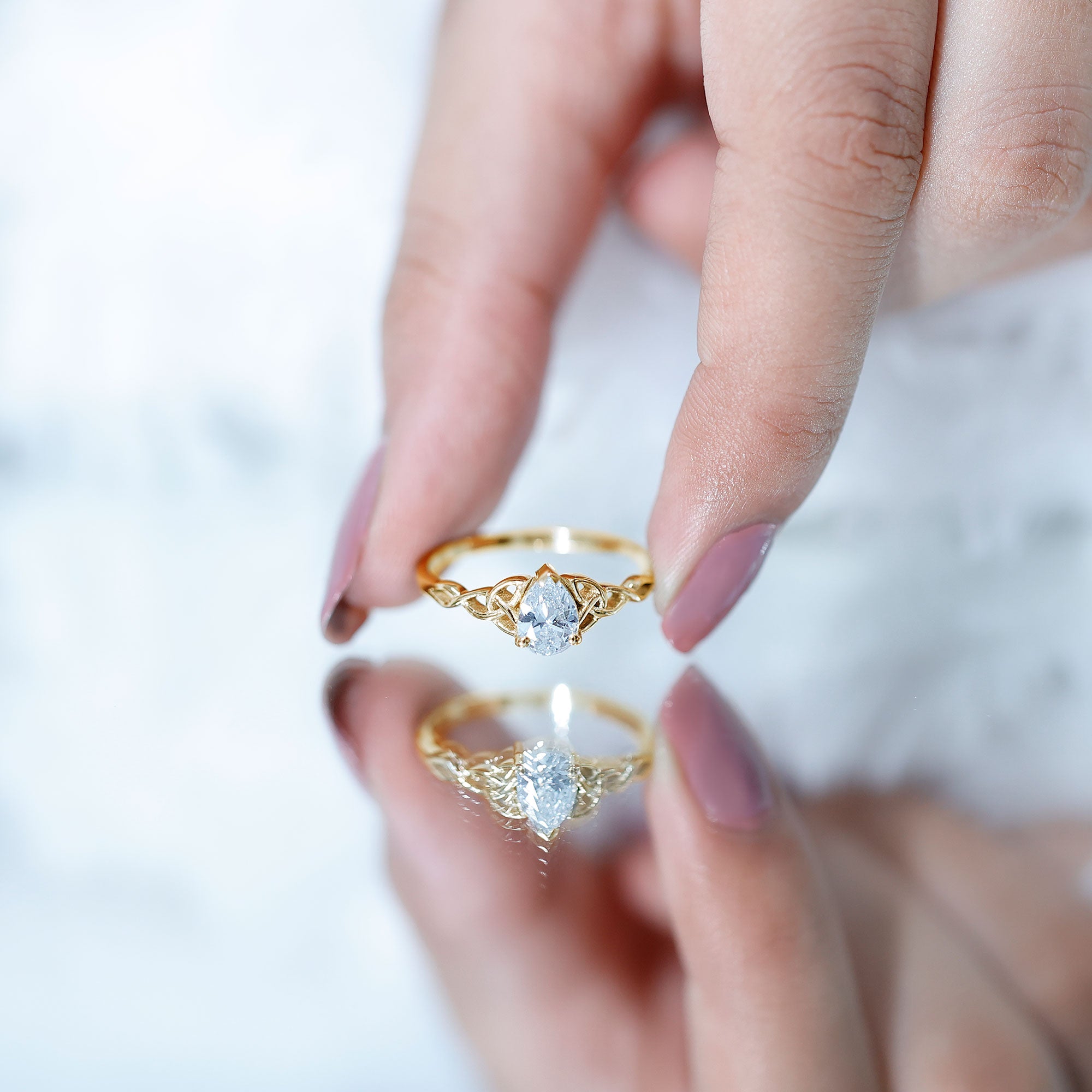 Desired for its fancy look, a Solitaire Marquise Engagement Ring is characterized by a smile-resembling shape that features curved sides and pointed tips. Owing to its elongated shape, it gives off the illusion of a larger looking ring. Moreover, thanks to the arrangement of 58 facets, it also catches the eye with its beautiful bow-tie effect.