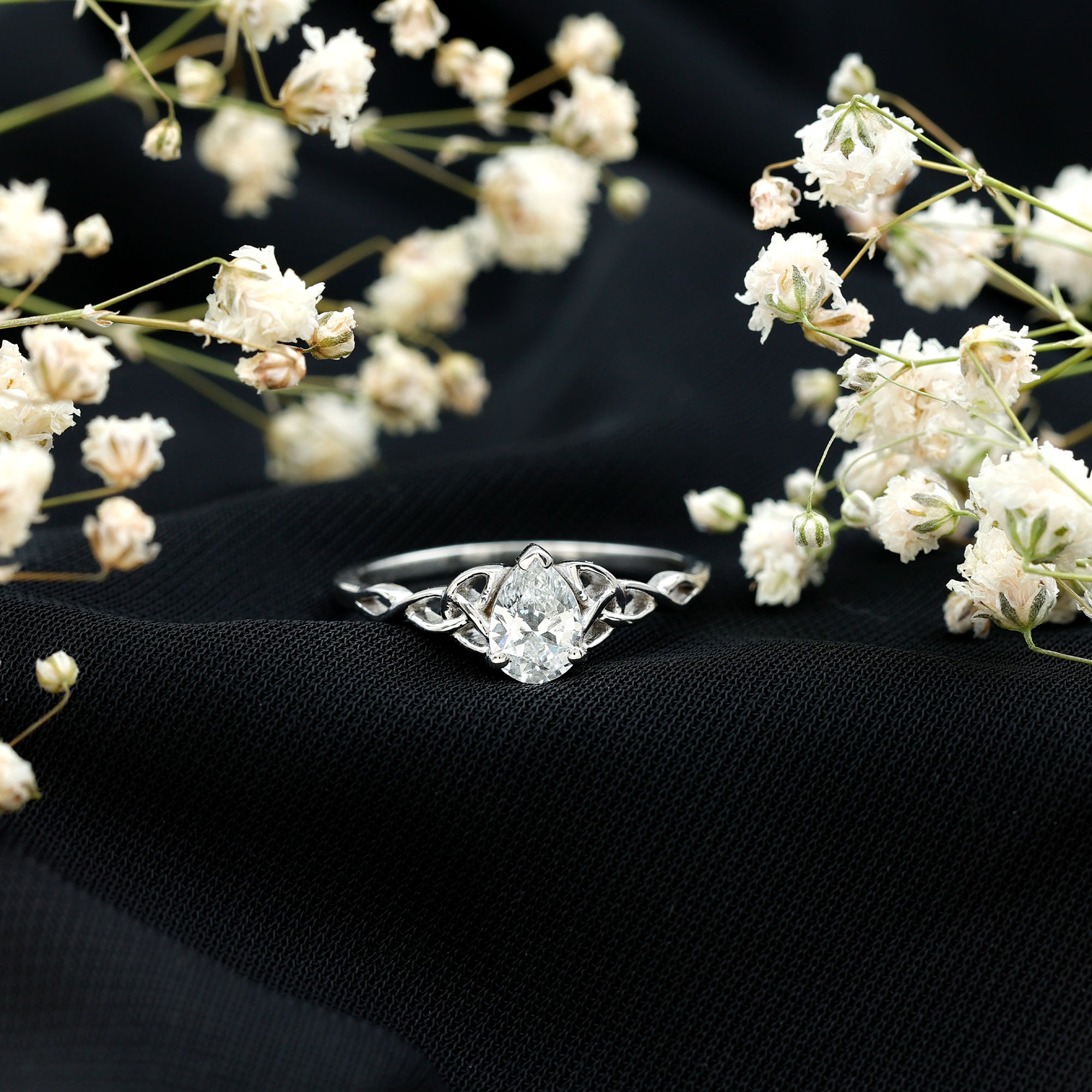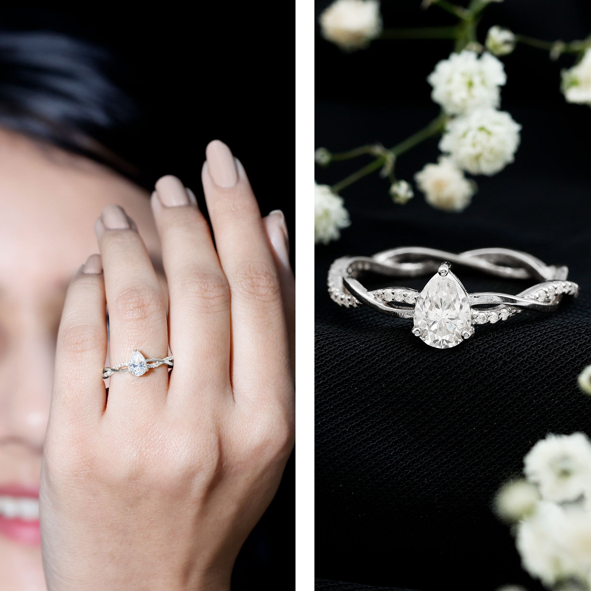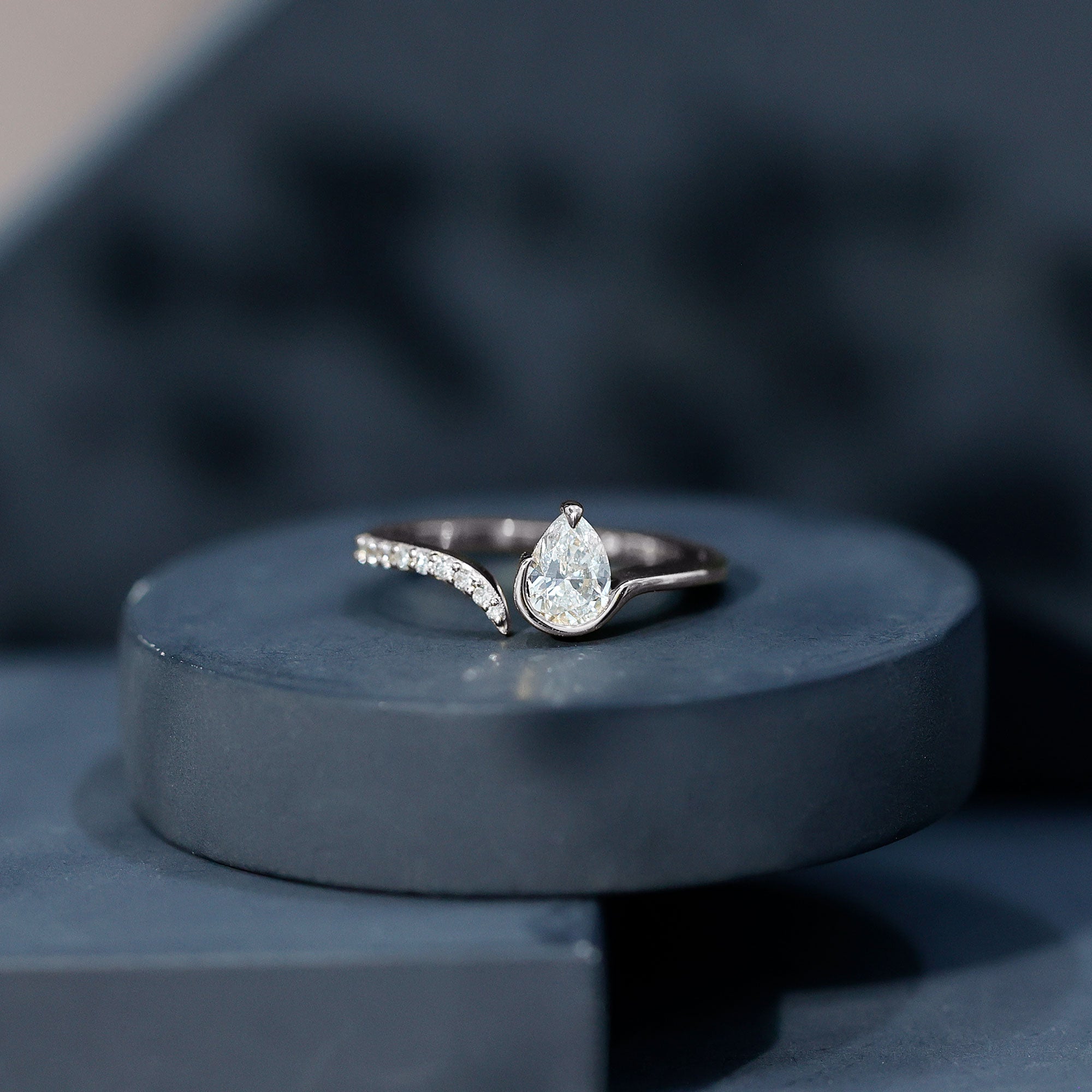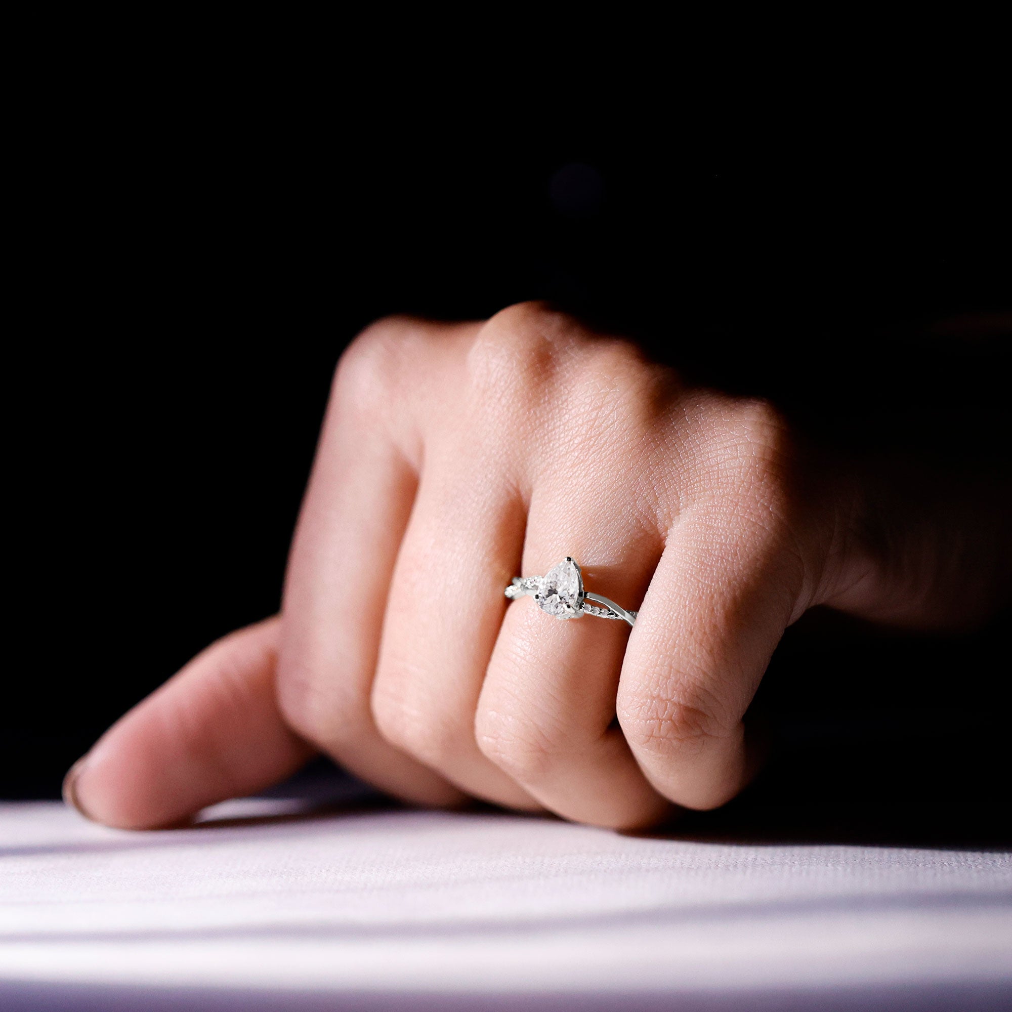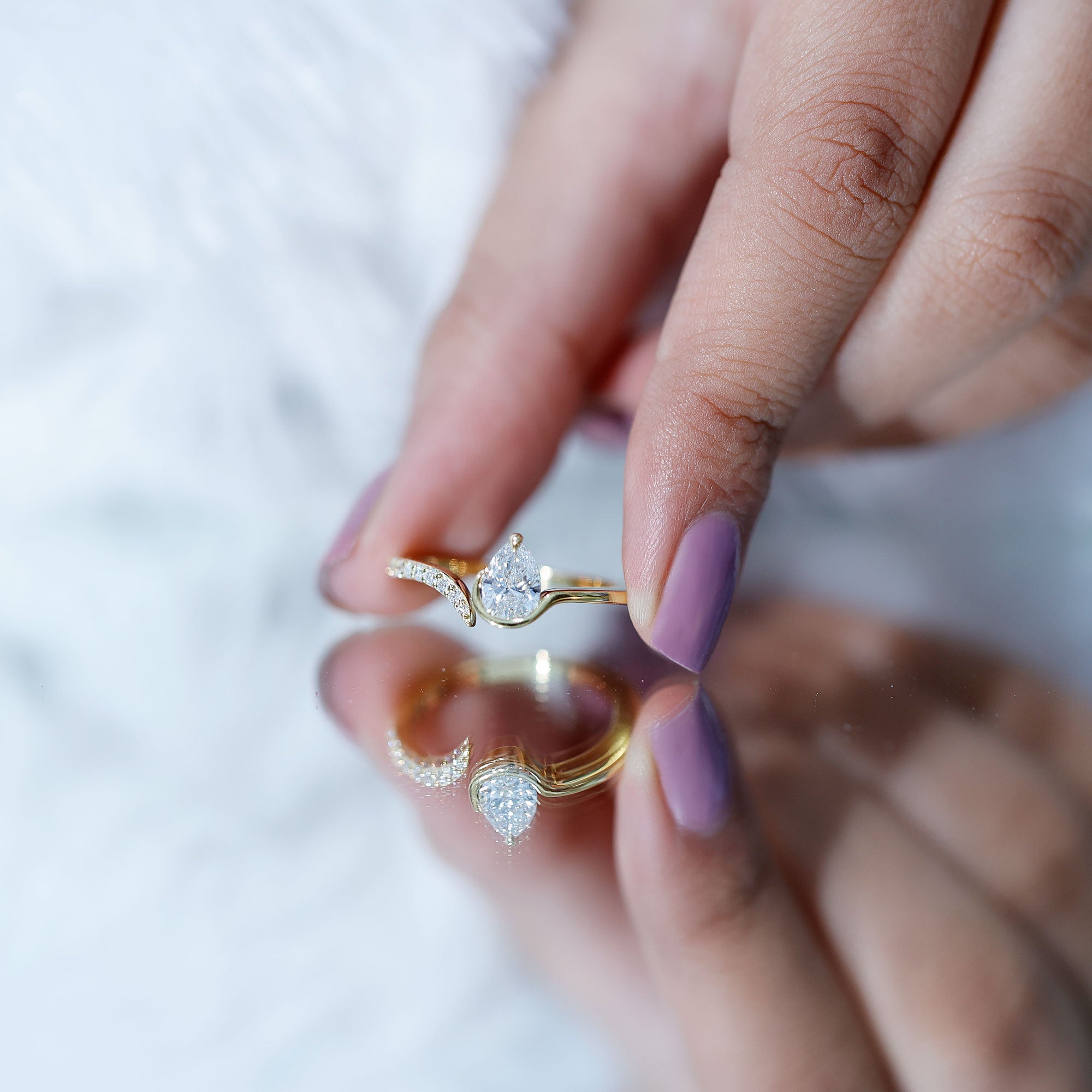Considered extremely flattering and fancy, a Pear Shaped Solitaire Ring features a Center Stone that is characterized by a pointy end and a rounded edge (often termed as teardrop shape). It makes for one of the most Unique Solitaire Engagement Rings out there, all thanks to the beautiful bow-tie effect that it exudes (as the result of light not reaching the middle of the Center Stone).