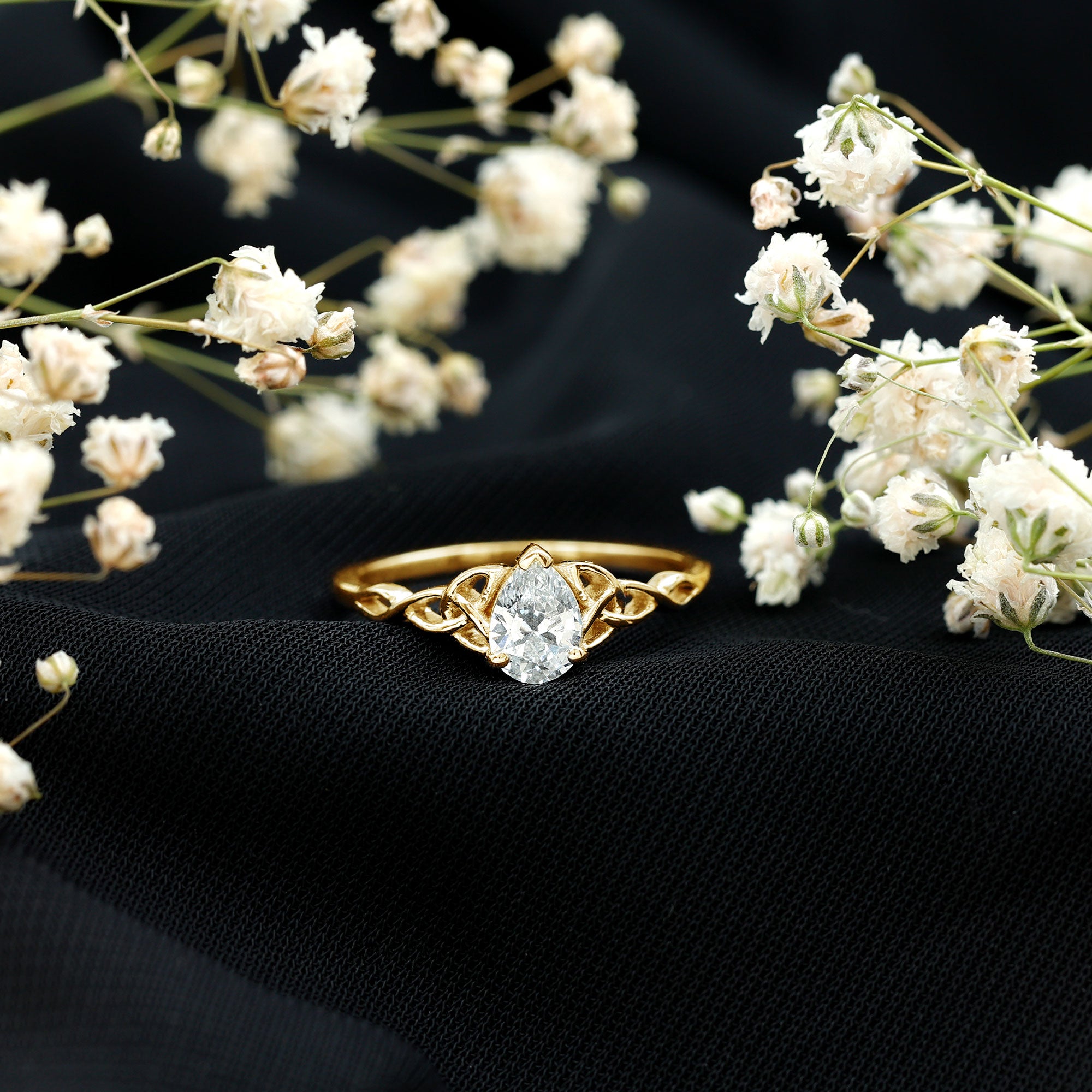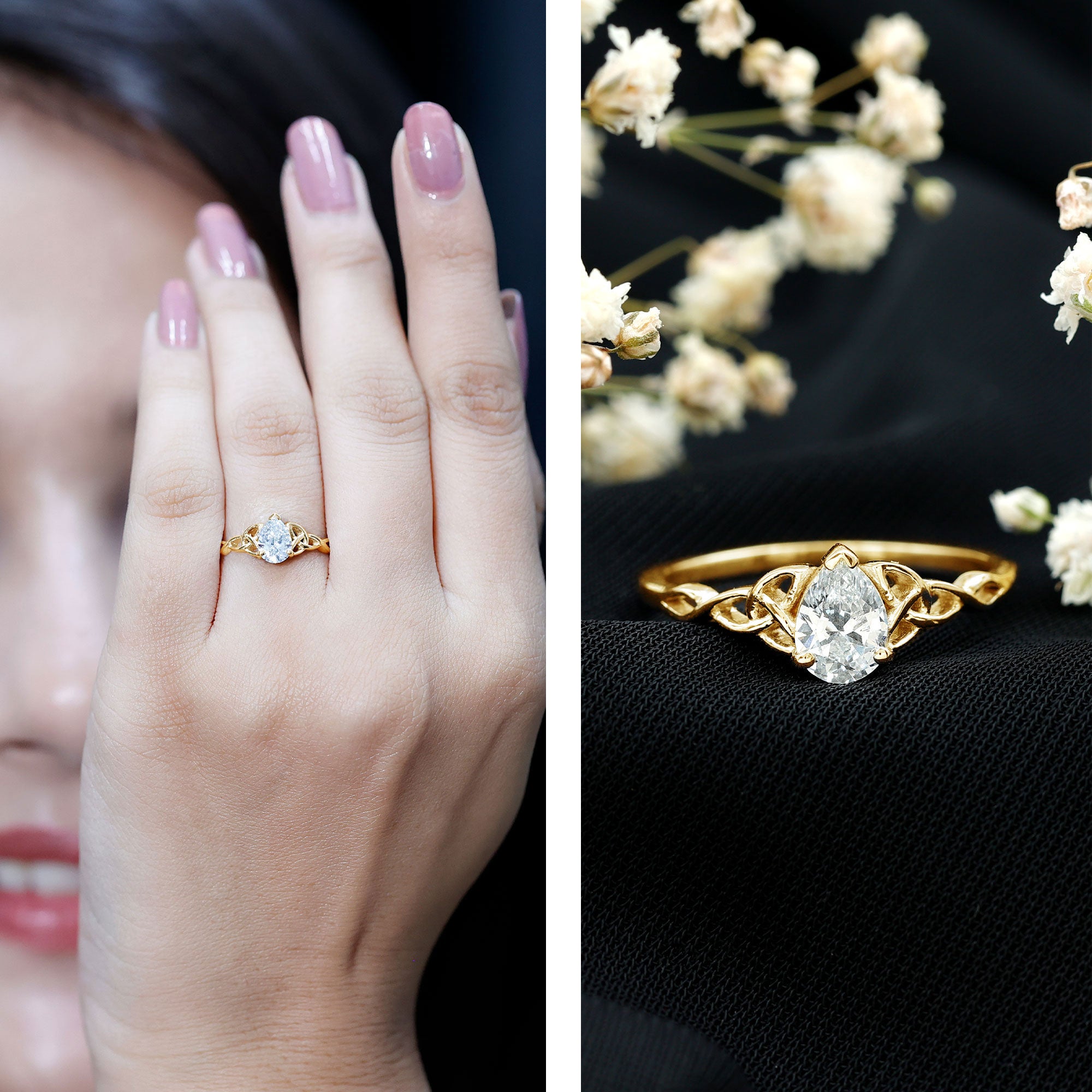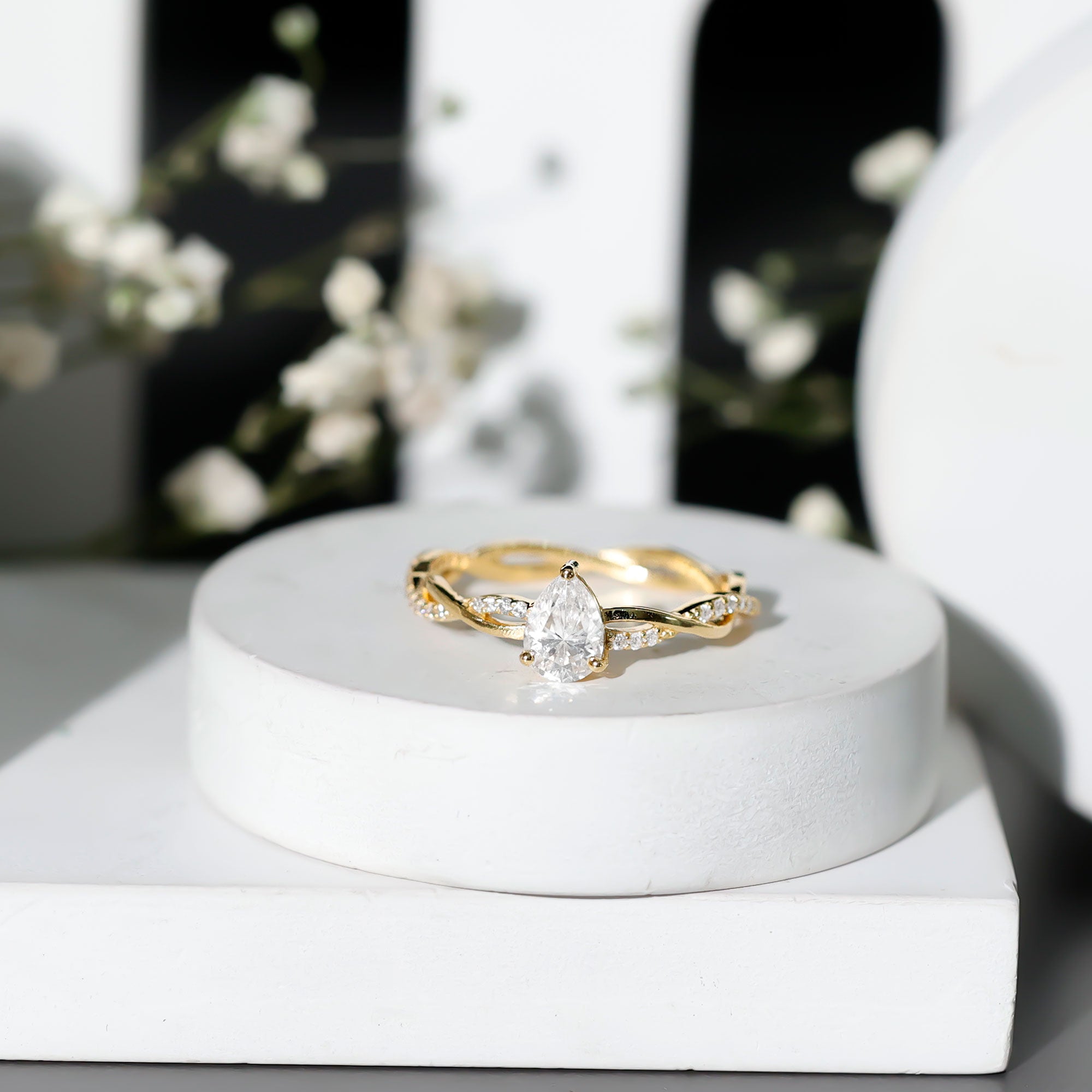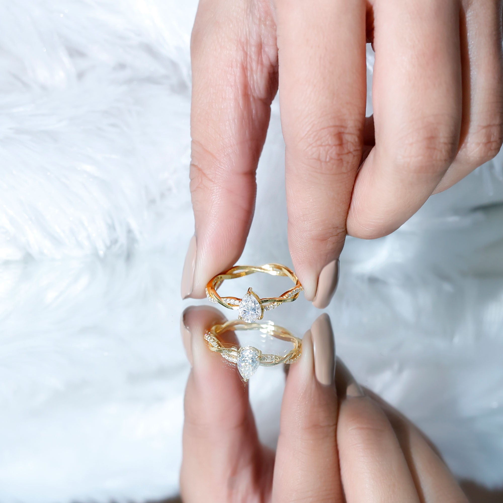 Considered extremely flattering and fancy, a Pear Shaped Solitaire Ring features a Center Stone that is characterized by a pointy end and a rounded edge (often termed as teardrop shape). It makes for one of the most Unique Solitaire Engagement Rings out there, all thanks to the beautiful bow-tie effect that it exudes (as the result of light not reaching the middle of the Center Stone).