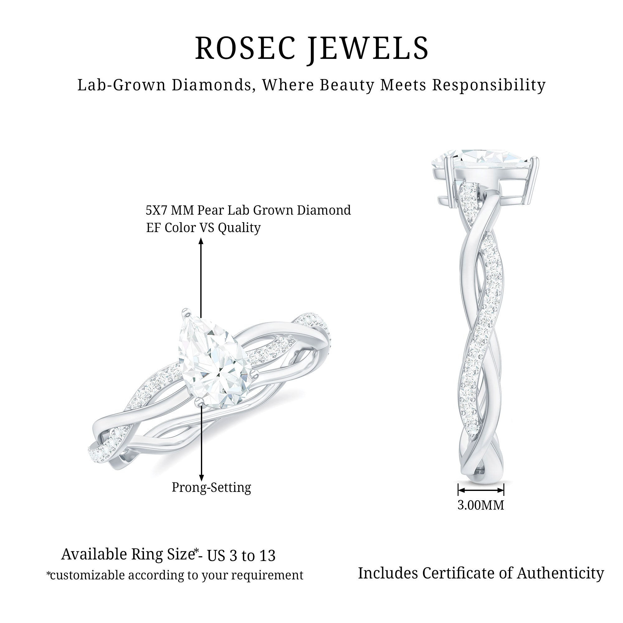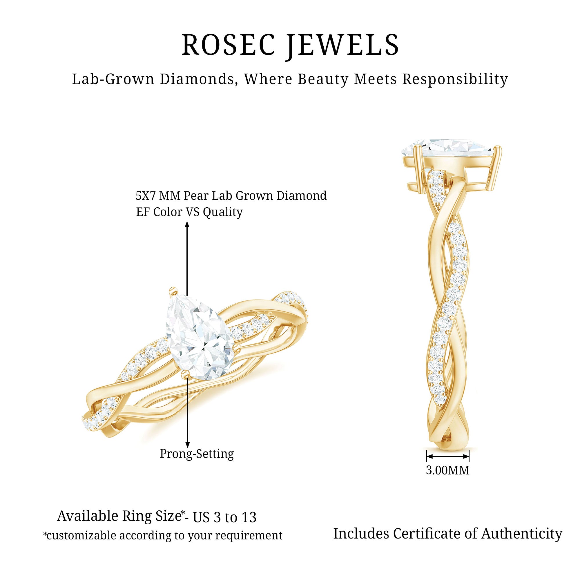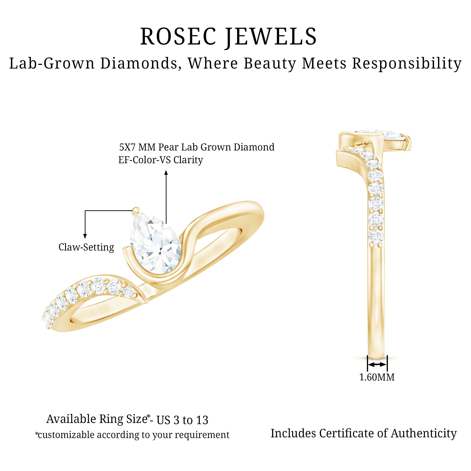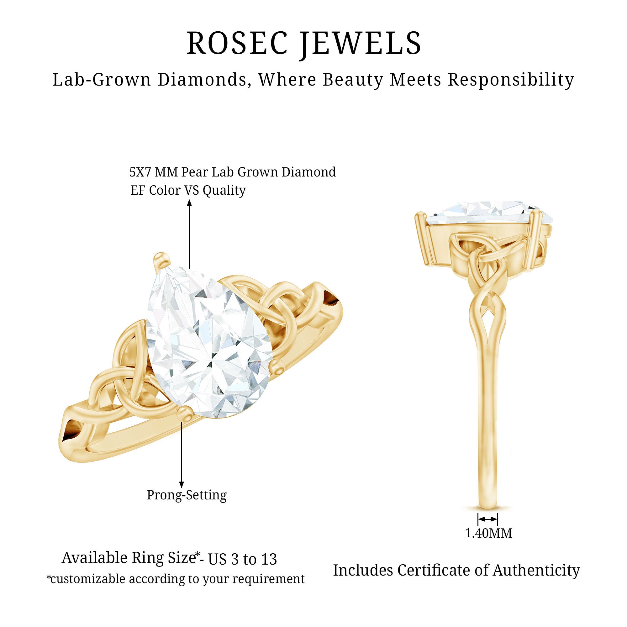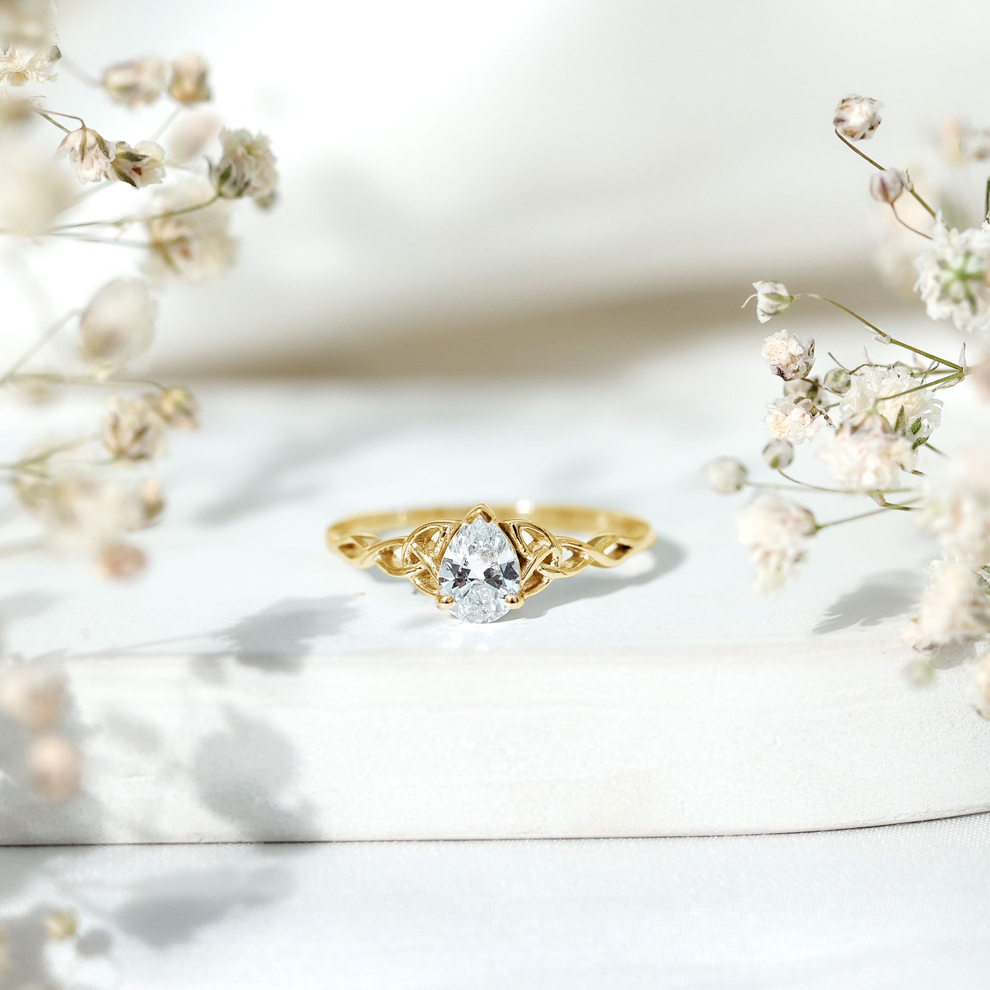 Considered extremely flattering and fancy, a Pear Shaped Solitaire Ring features a Center Stone that is characterized by a pointy end and a rounded edge (often termed as teardrop shape). It makes for one of the most Unique Solitaire Engagement Rings out there, all thanks to the beautiful bow-tie effect that it exudes (as the result of light not reaching the middle of the Center Stone).
