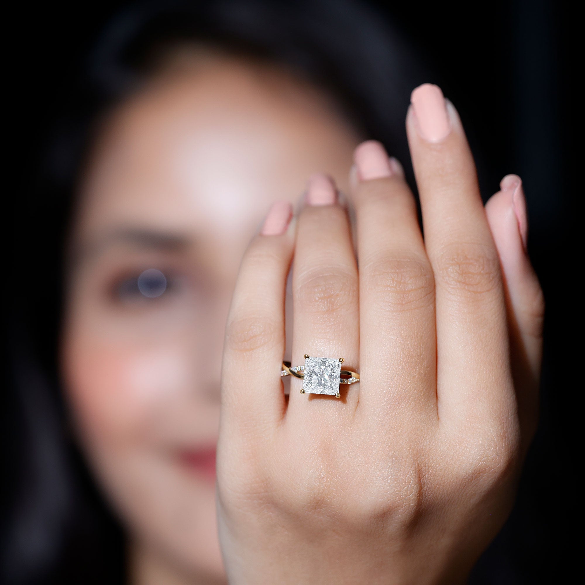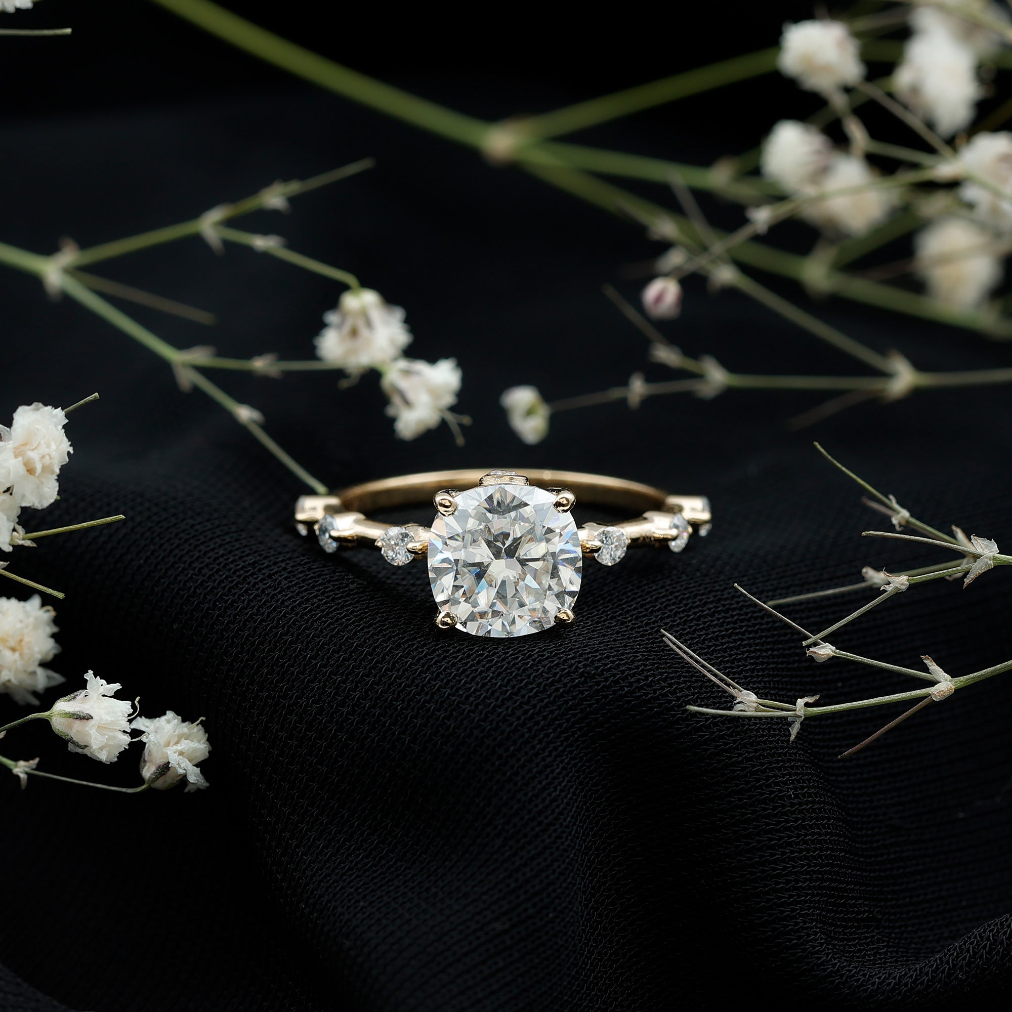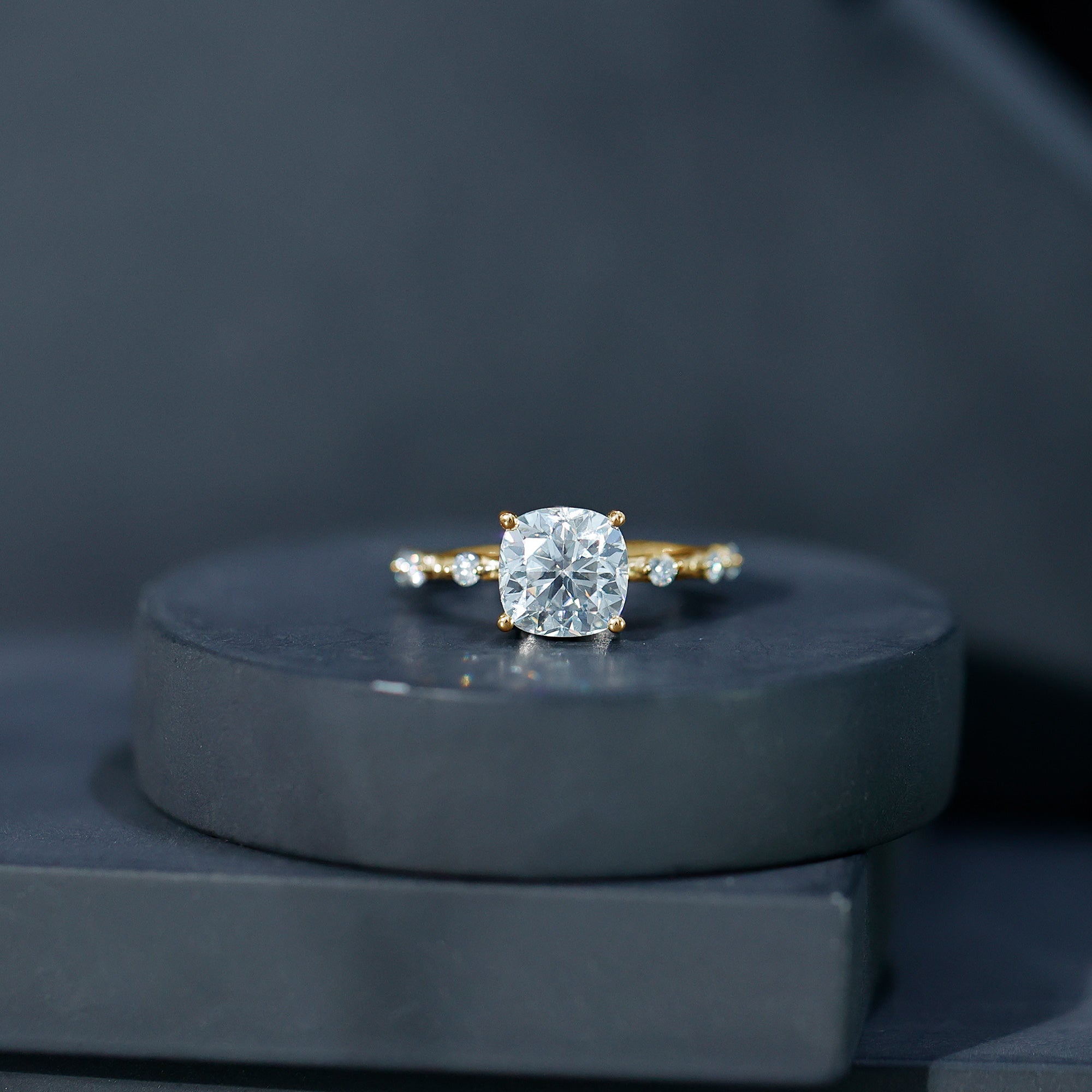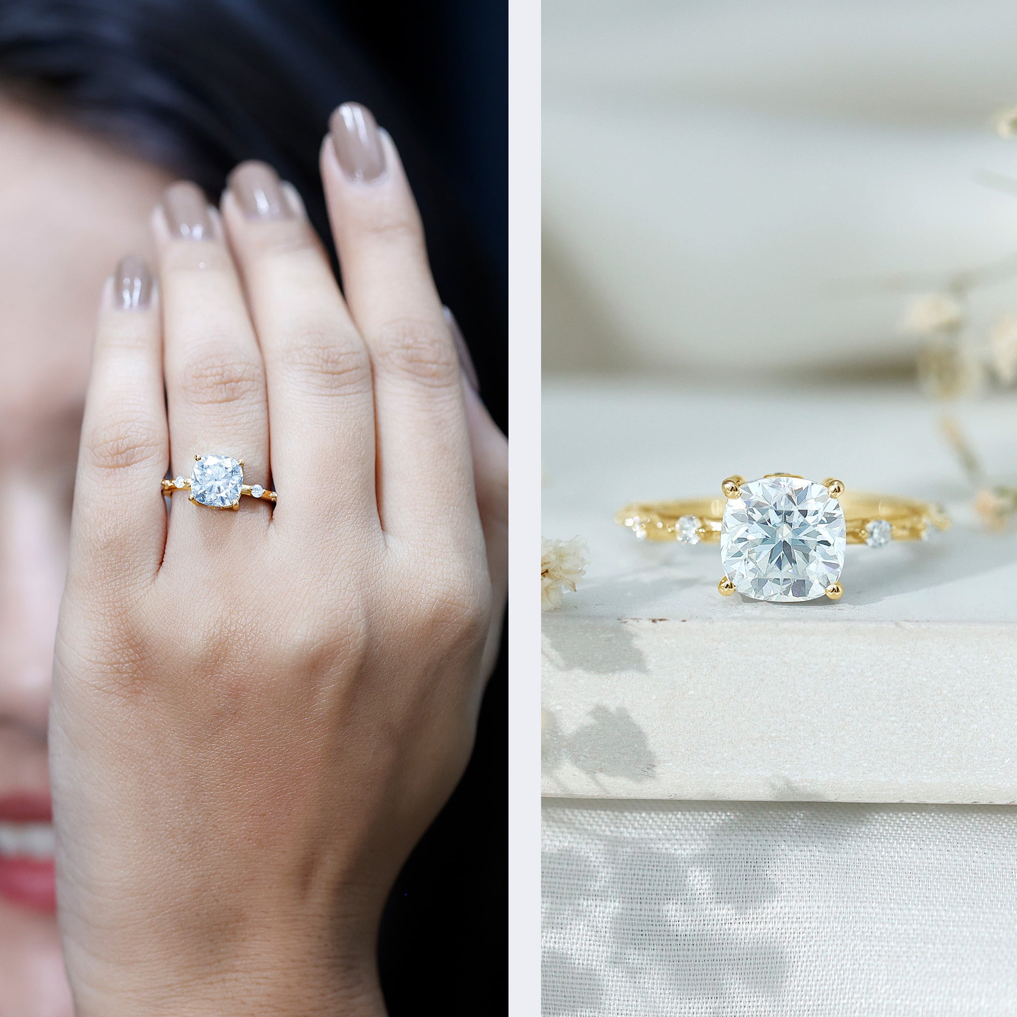 Often referred to as a Rectangle or Square Solitaire Ring (that is distinguished by curved corners), a Single Stone Ring adorned with Cushion Cut stands out for its vintage appeal. It is home to 58 brilliant facets that lend it a one-of-a-kind sparkle. If you’re seeking a grand gesture of love, it is the best way forward.