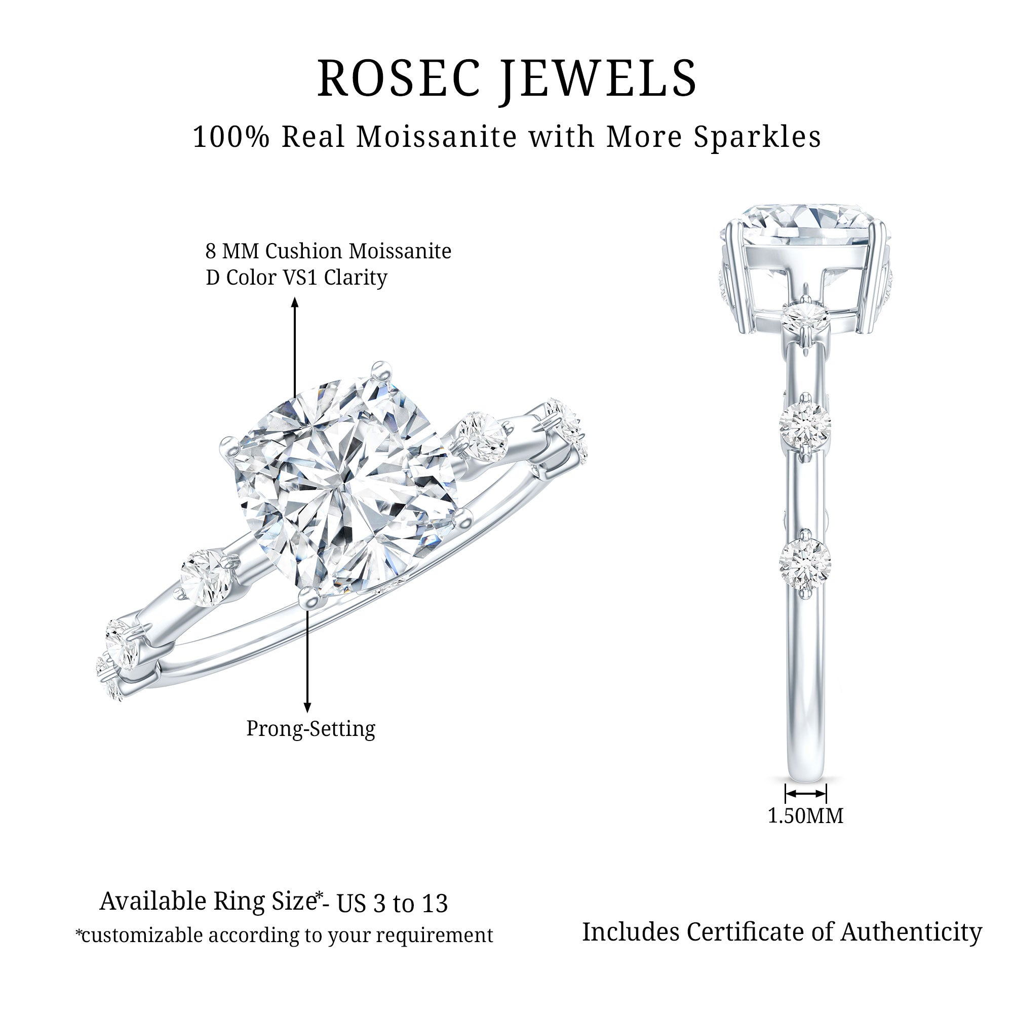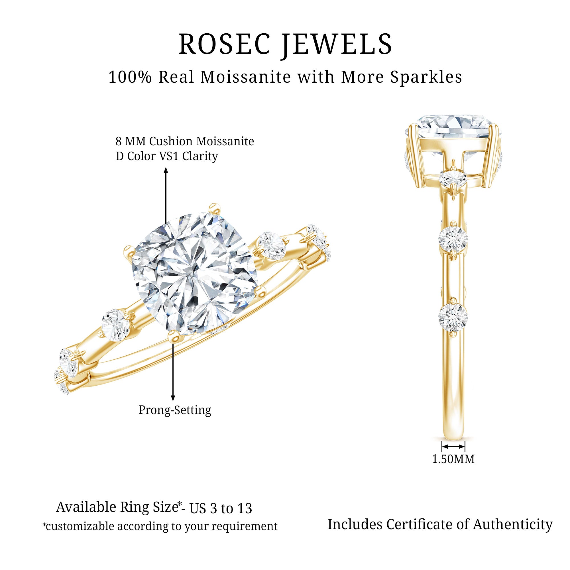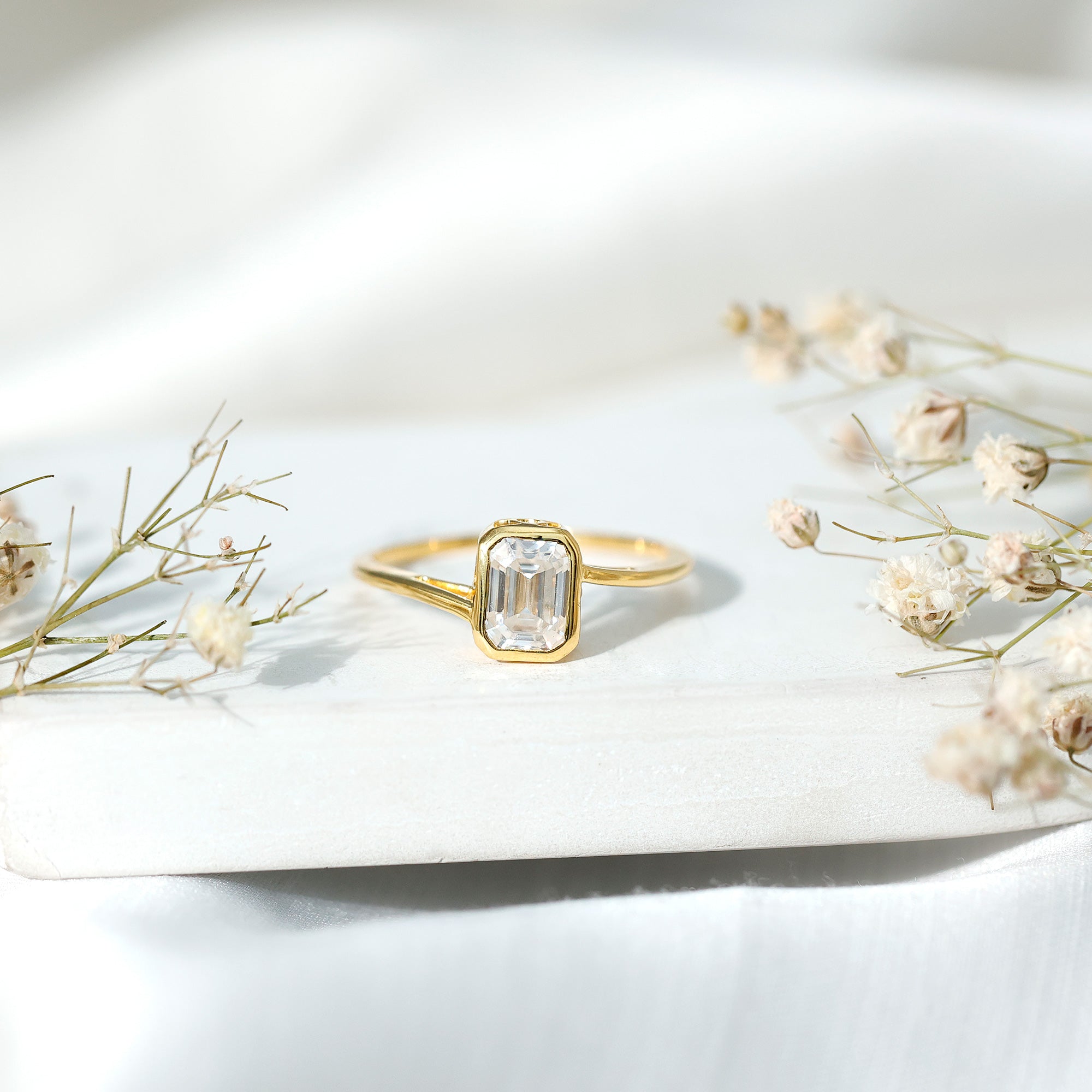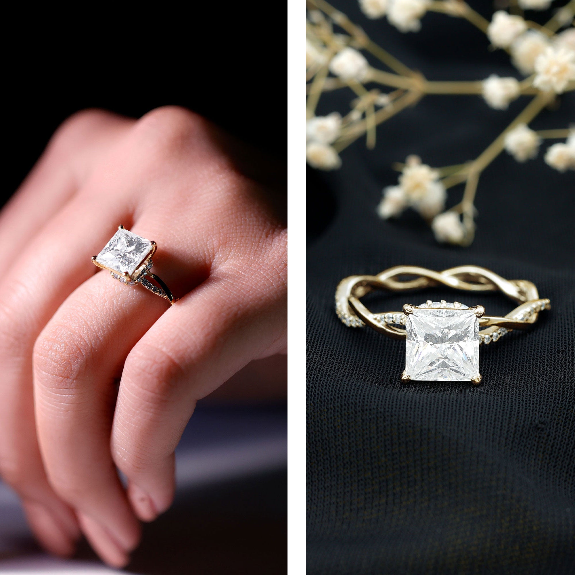 Often referred to as a Rectangle or Square Solitaire Ring (that is distinguished by curved corners), a Single Stone Ring adorned with Cushion Cut stands out for its vintage appeal. It is home to 58 brilliant facets that lend it a one-of-a-kind sparkle. If you’re seeking a grand gesture of love, it is the best way forward.