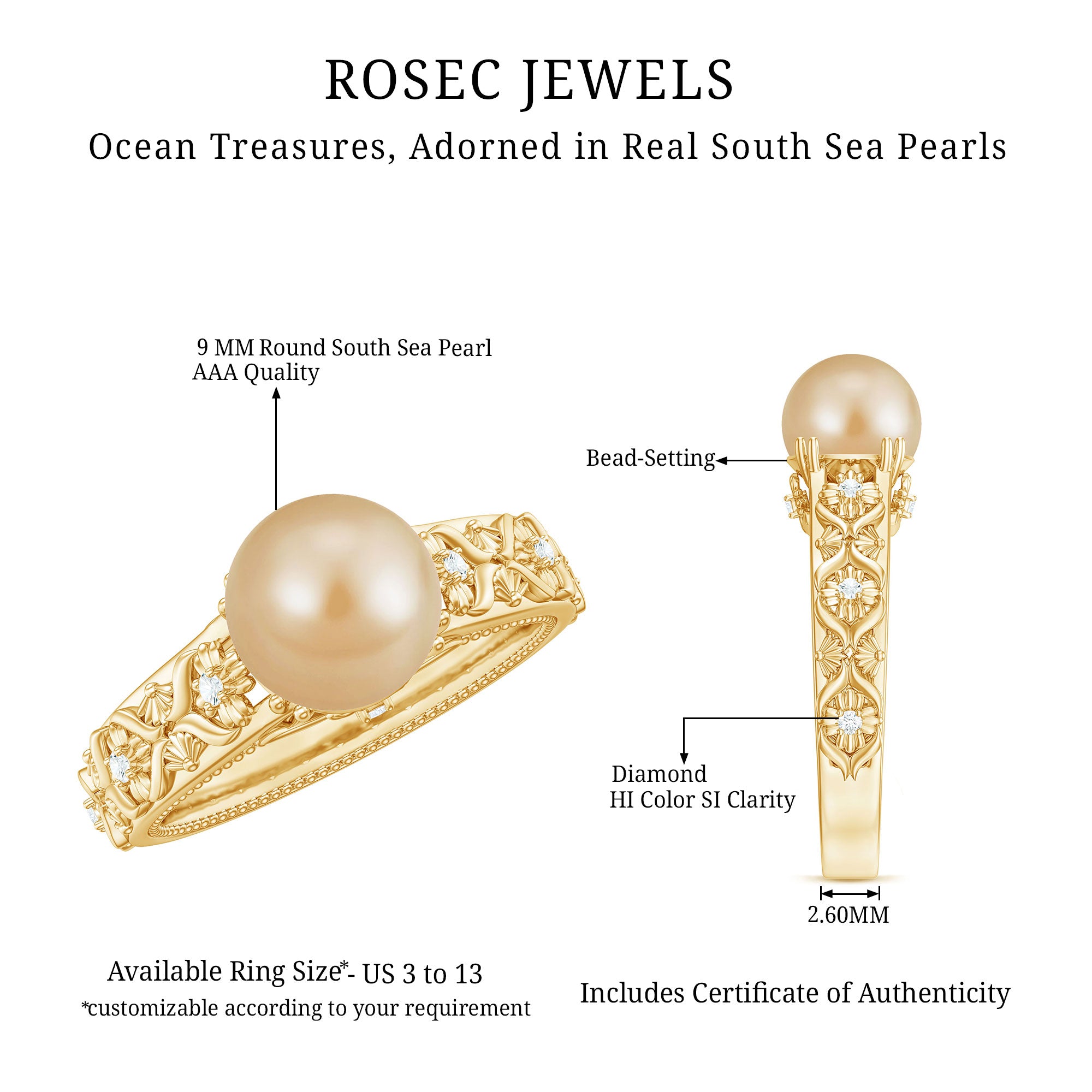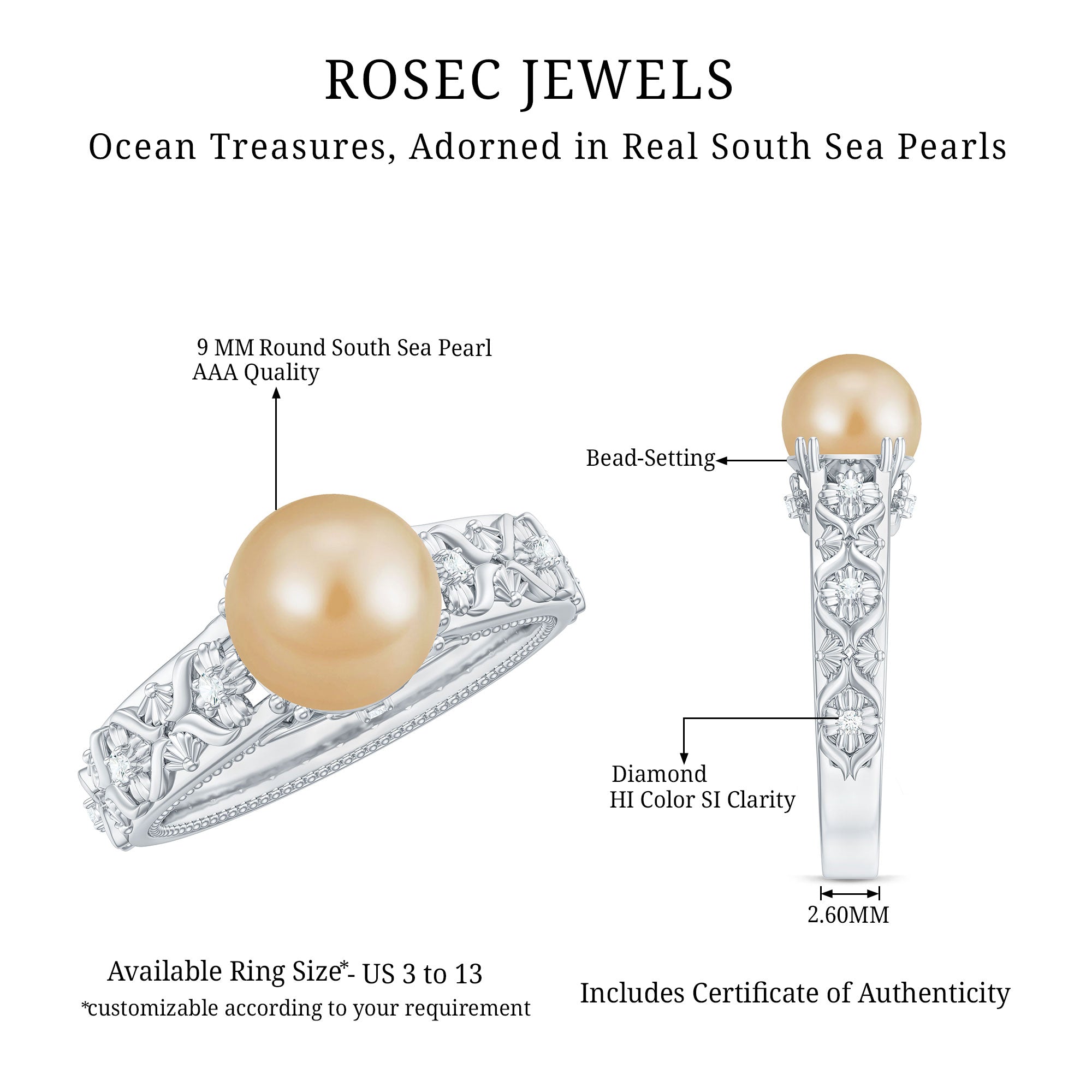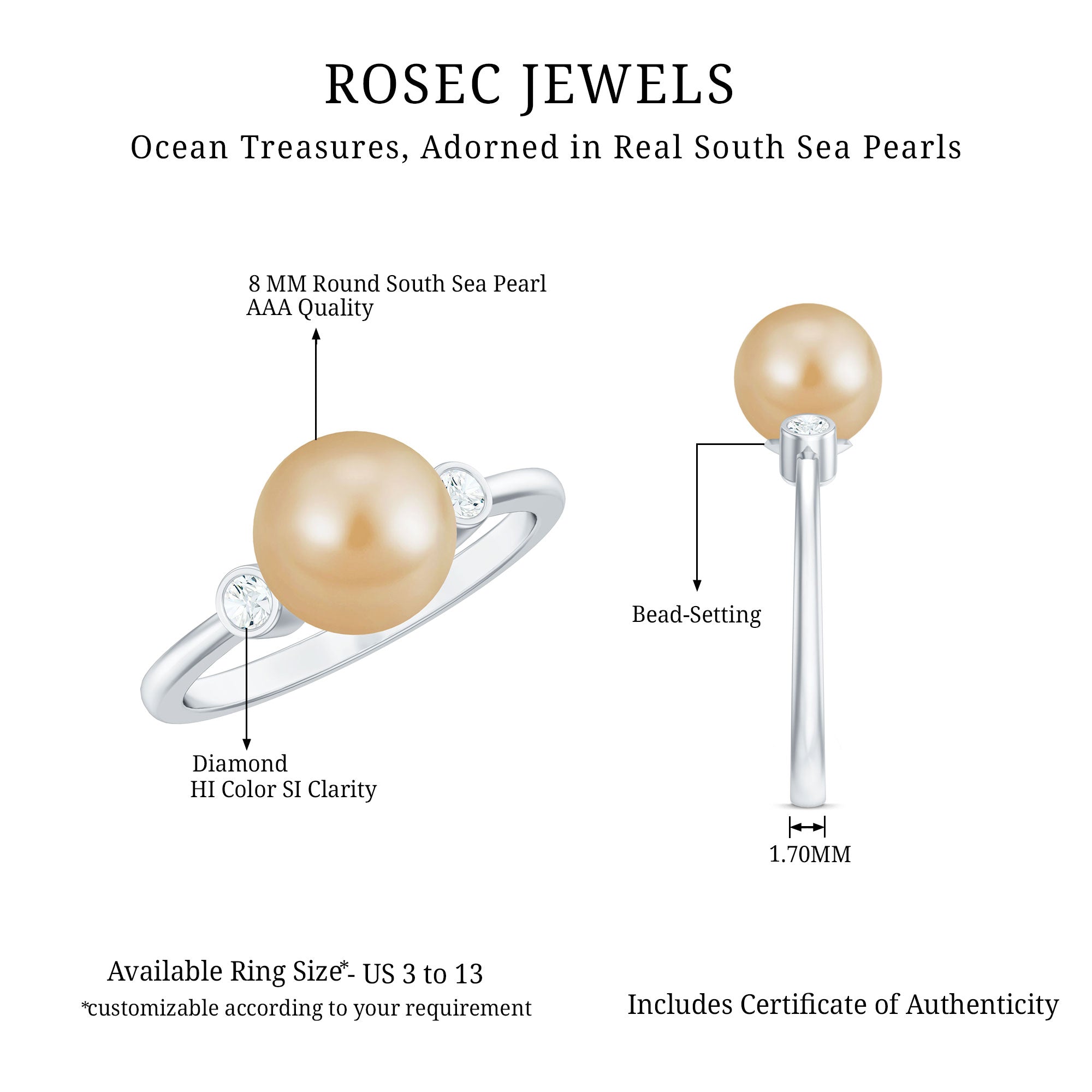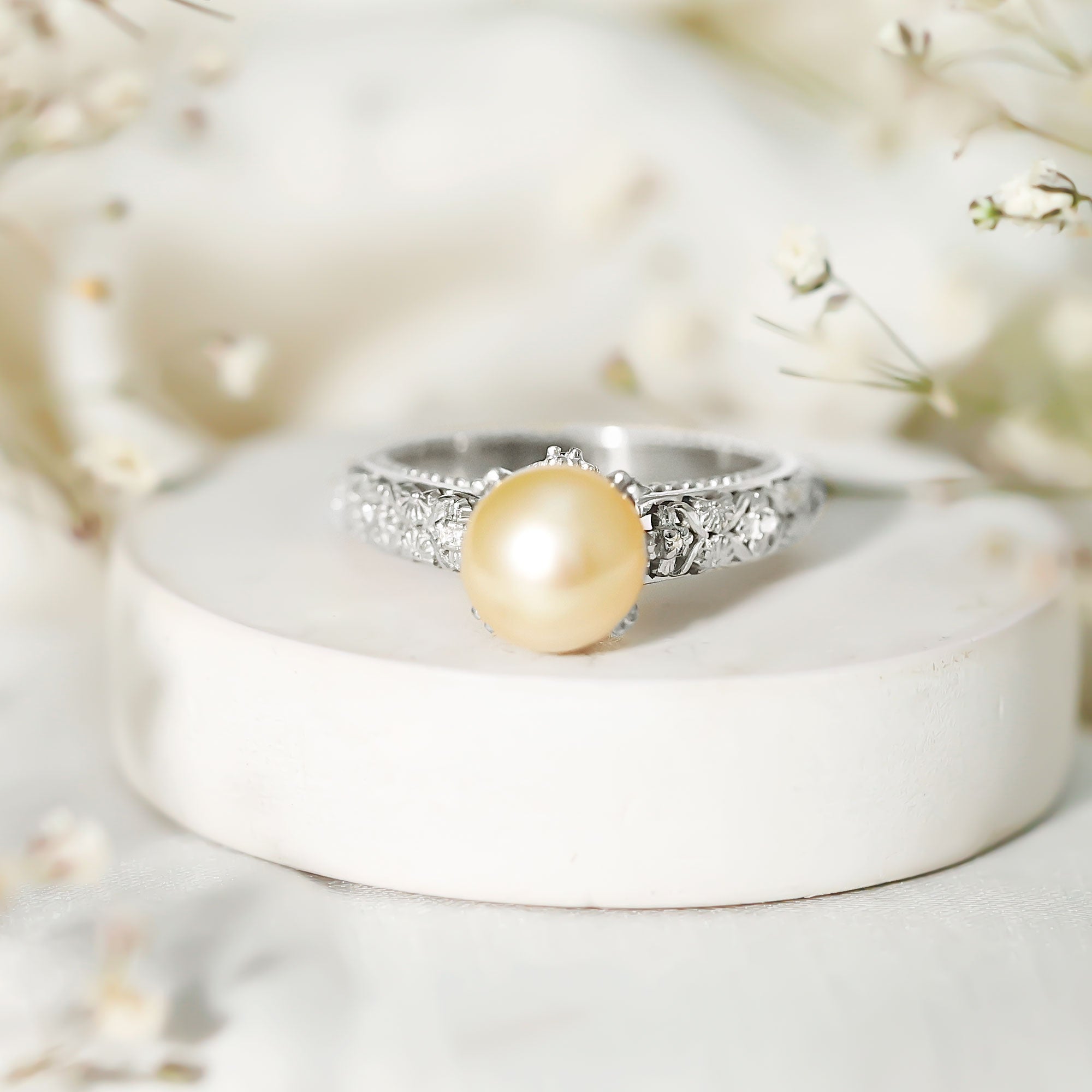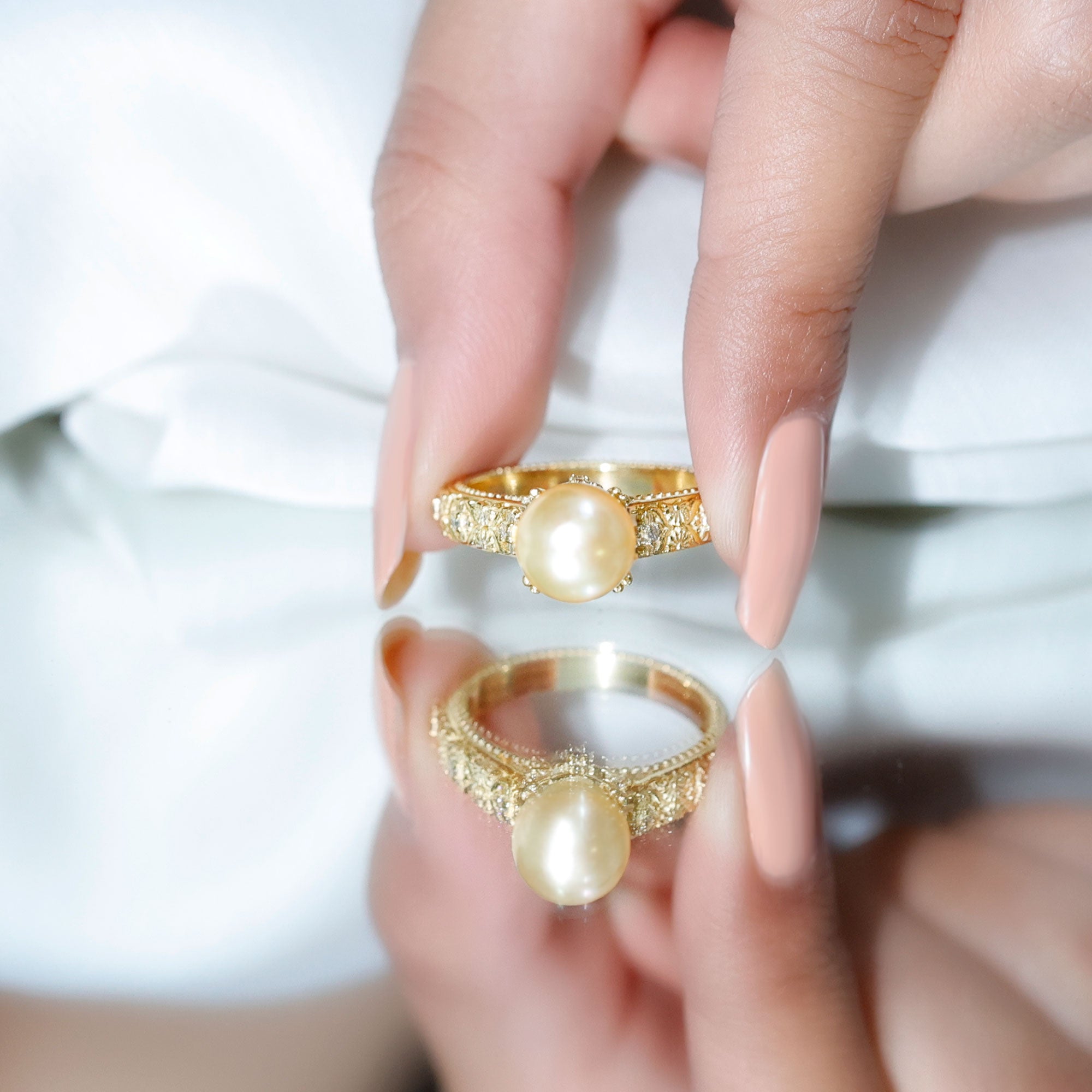 South sea pearl engagement rings from the mesmerizing collection of engagement rings by Rosec Jewels are an exceptional range of pearl engagement rings featuring the soft silvery and gold body colors of the South sea pearl. South sea pearl rings for women are a site to adore which speak for the wonderful creation of this organic gem biological activities of silver and gold lipped oysters. The serene luster of our south sea pearl rings will be an essential addition to the jewelry wardrobe of women with a knack for trending jewelry.