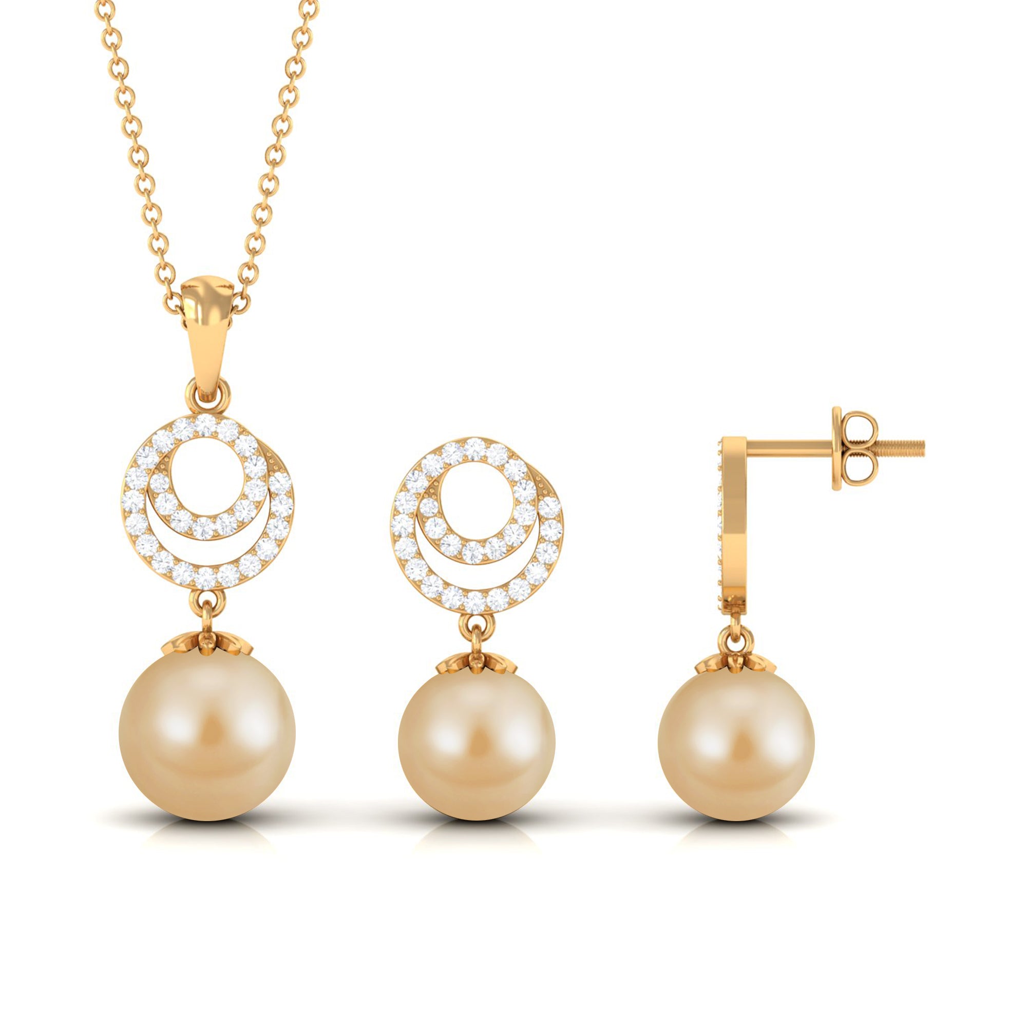 Meant to make a statement, a Designer South Sea Pearl Necklace (just like the name suggests) incorporates eye-striking designs that lend its Golden Pearl Centerpiece a contemporary touch. It can even be complemented with other gemstones (or series of gemstones) like Moissanite for a bold and color-contrasting appeal.