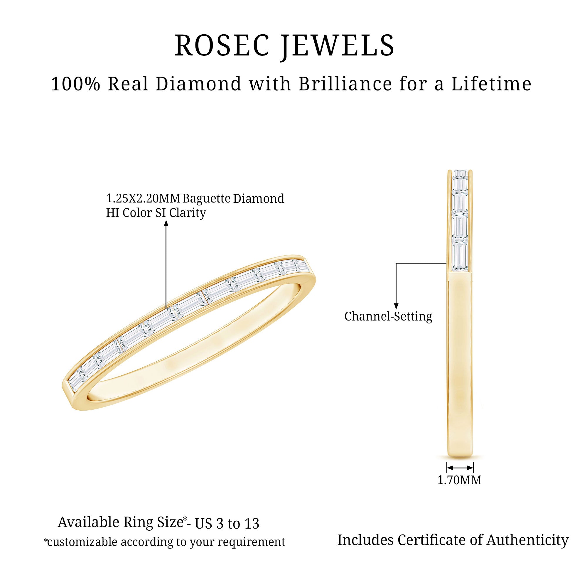 • Mixed Color and Metal stacks: Different metals in different colors leave a different effect. Like a yellow gold diamond band, when stacked with a blue sapphire eternity silver band makes a totally different appeal. Rose gold is another option for adding warmth and a romantic touch to your stack.