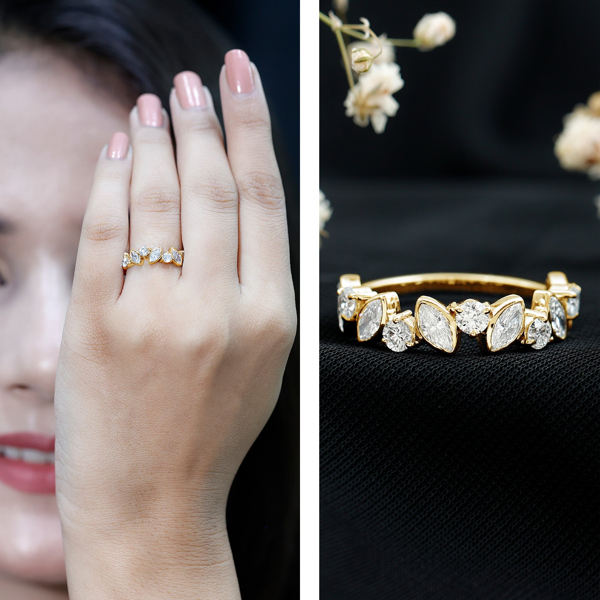 - Versatile combinations: Stack across fingers or pair with engagement rings.