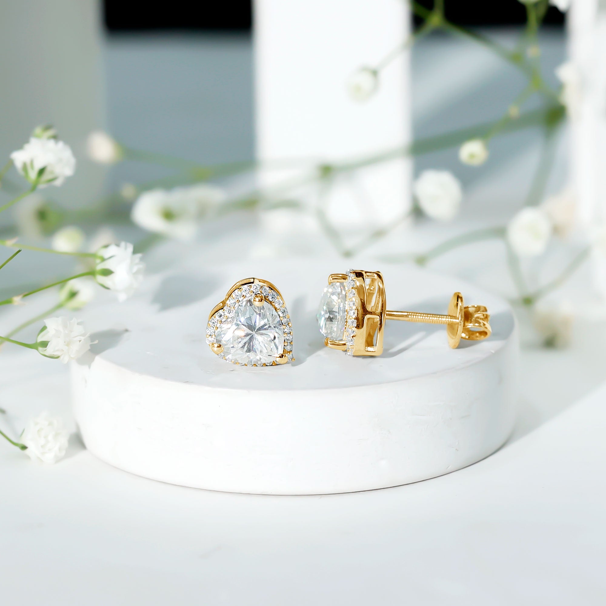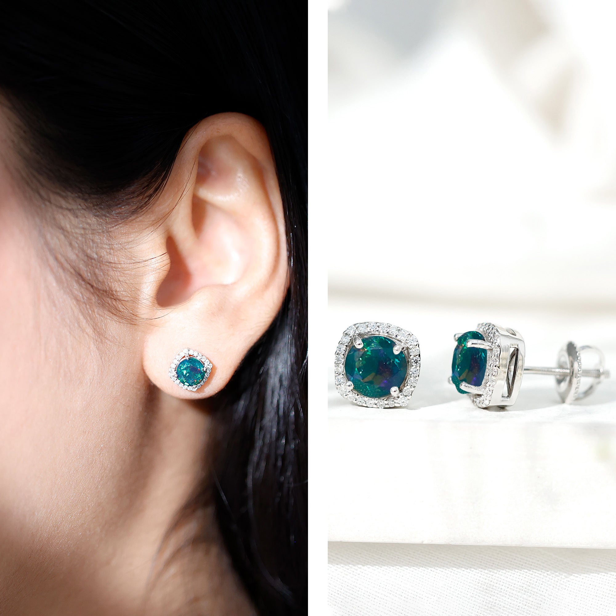 • Halo Studs: Instantly elevate your style with halo stud earrings, featuring a circle of gems that enhances the center stone, creating a dazzling effect.