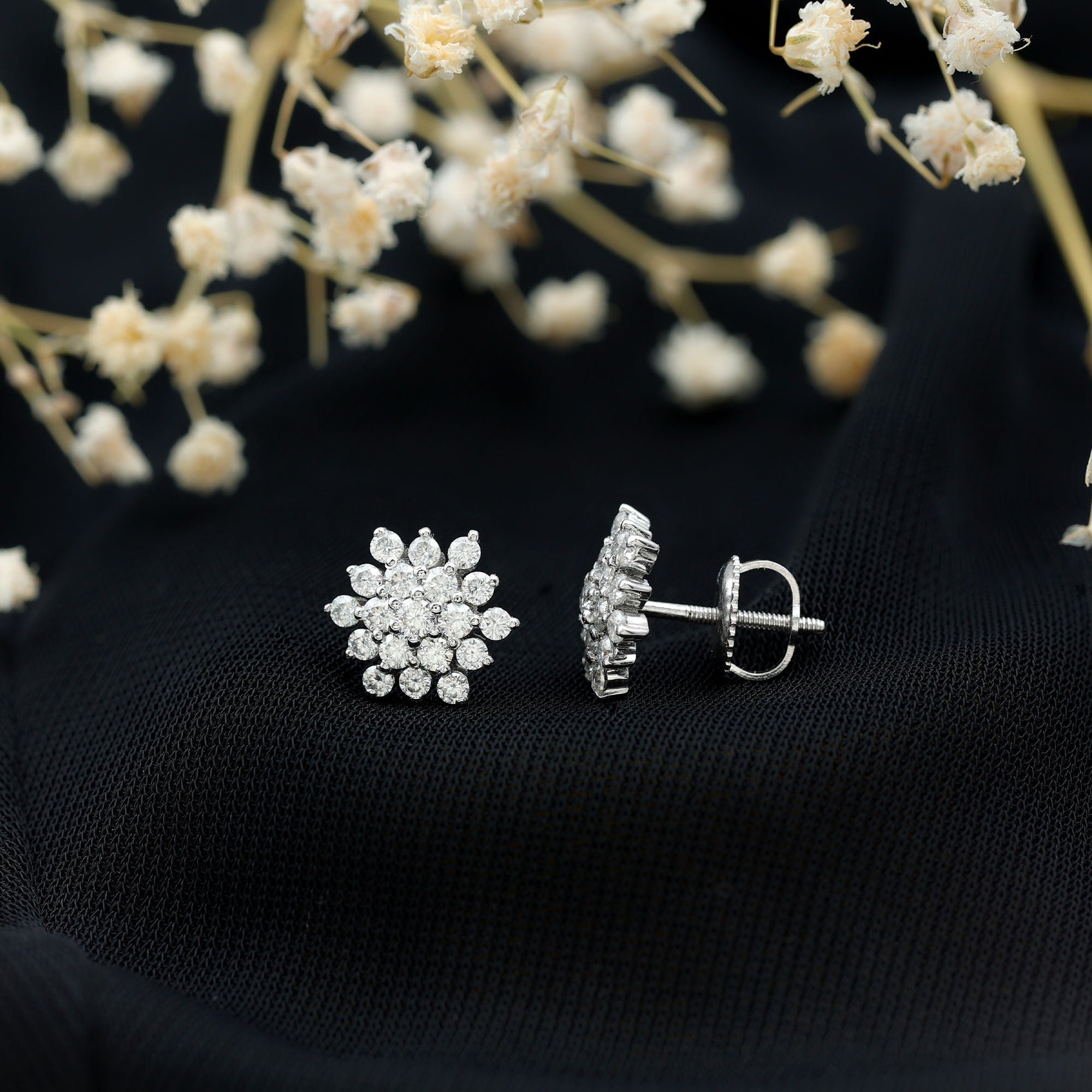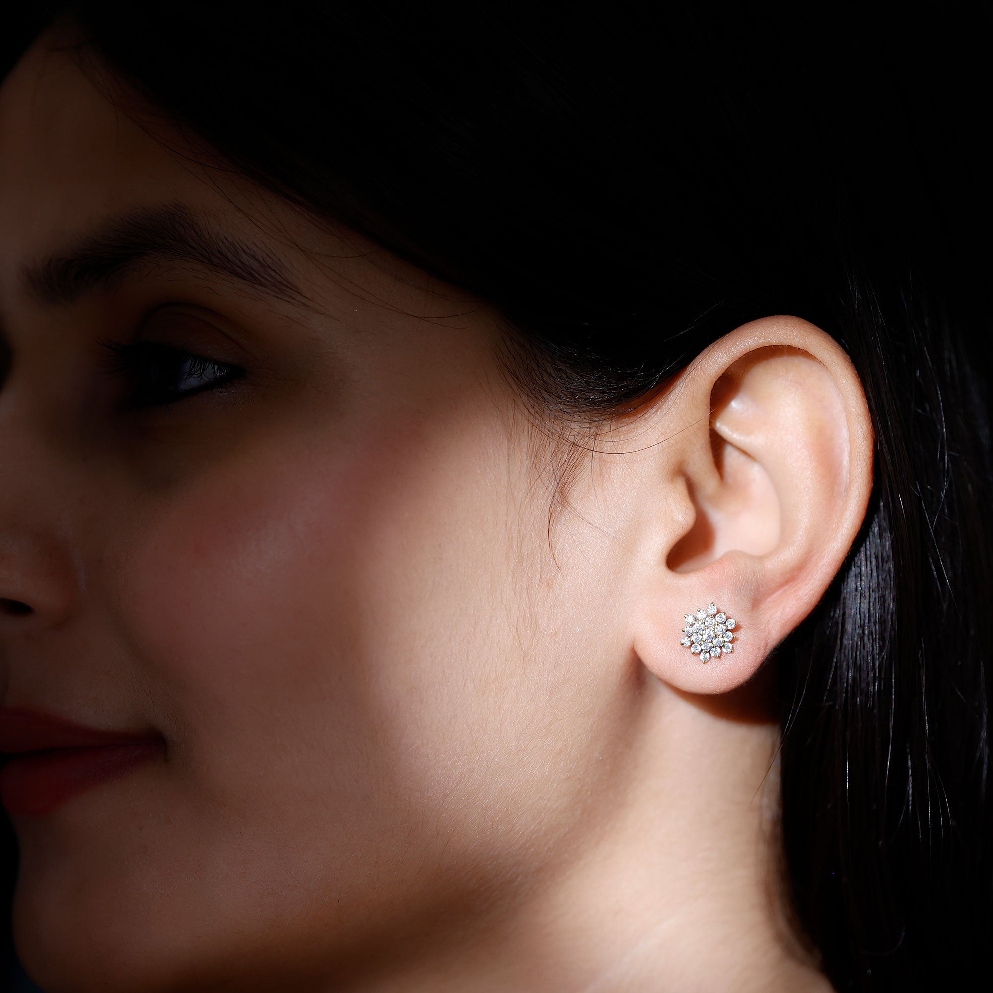 • Cluster Studs: Offering dazzling brilliance, cluster stud earrings with multiple stones create a stunning focal point, adding glamour and sophistication.
