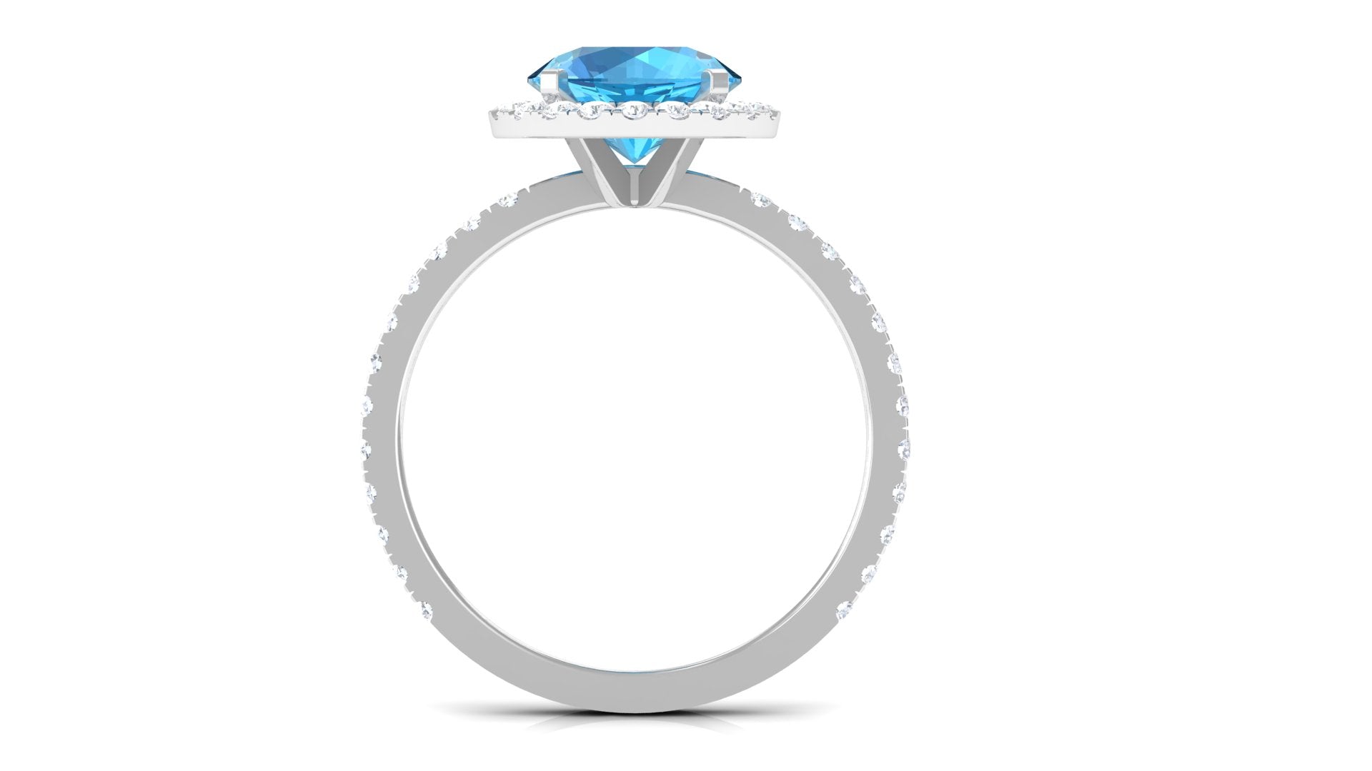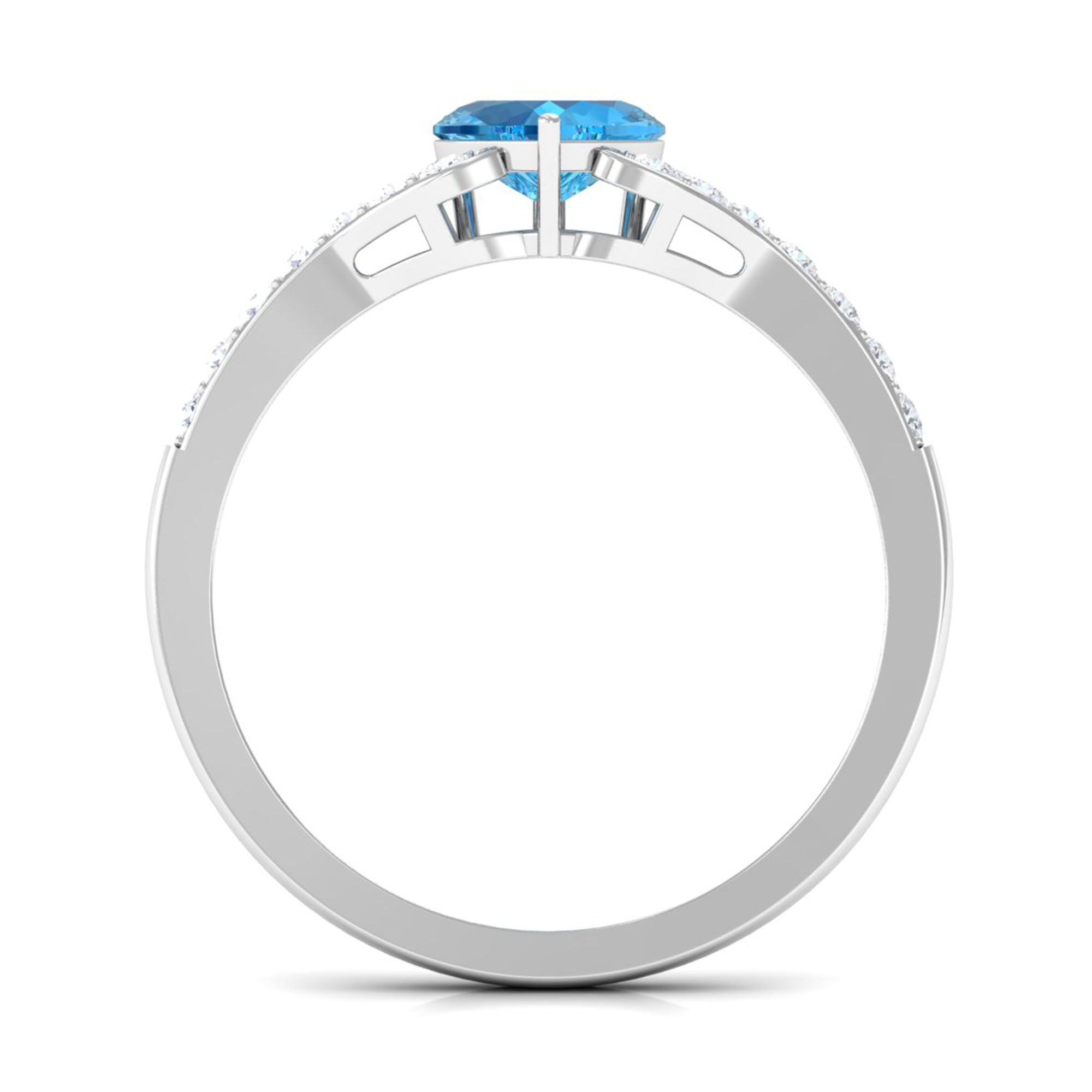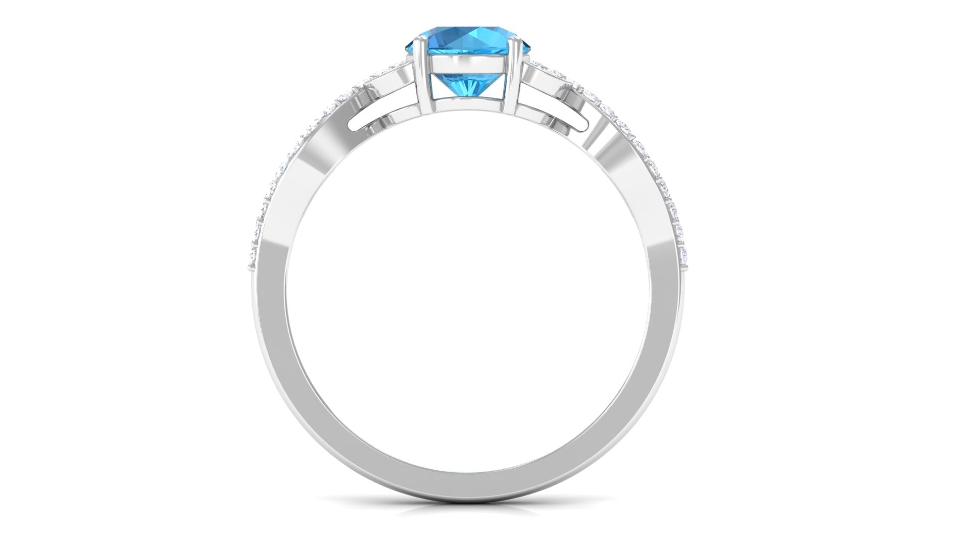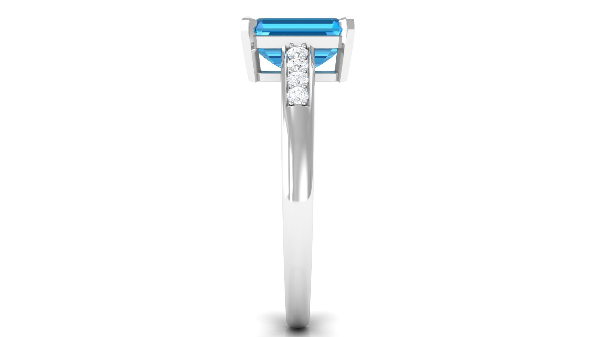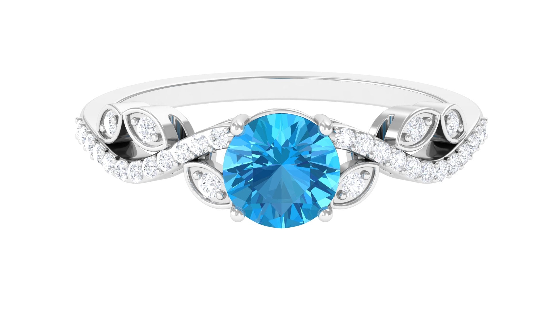 • Color: The color specific to Swiss blue topaz engagement rings is defined by bright and light shades falling in the mid-range of London Blue to Sky Blue Topaz.