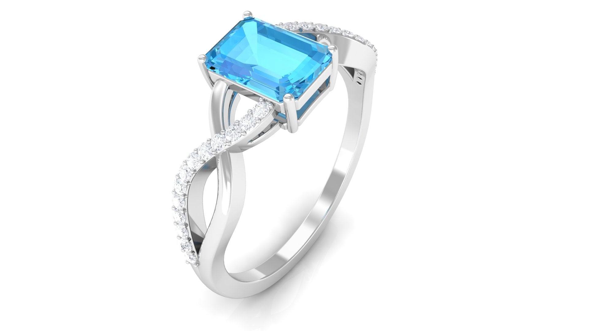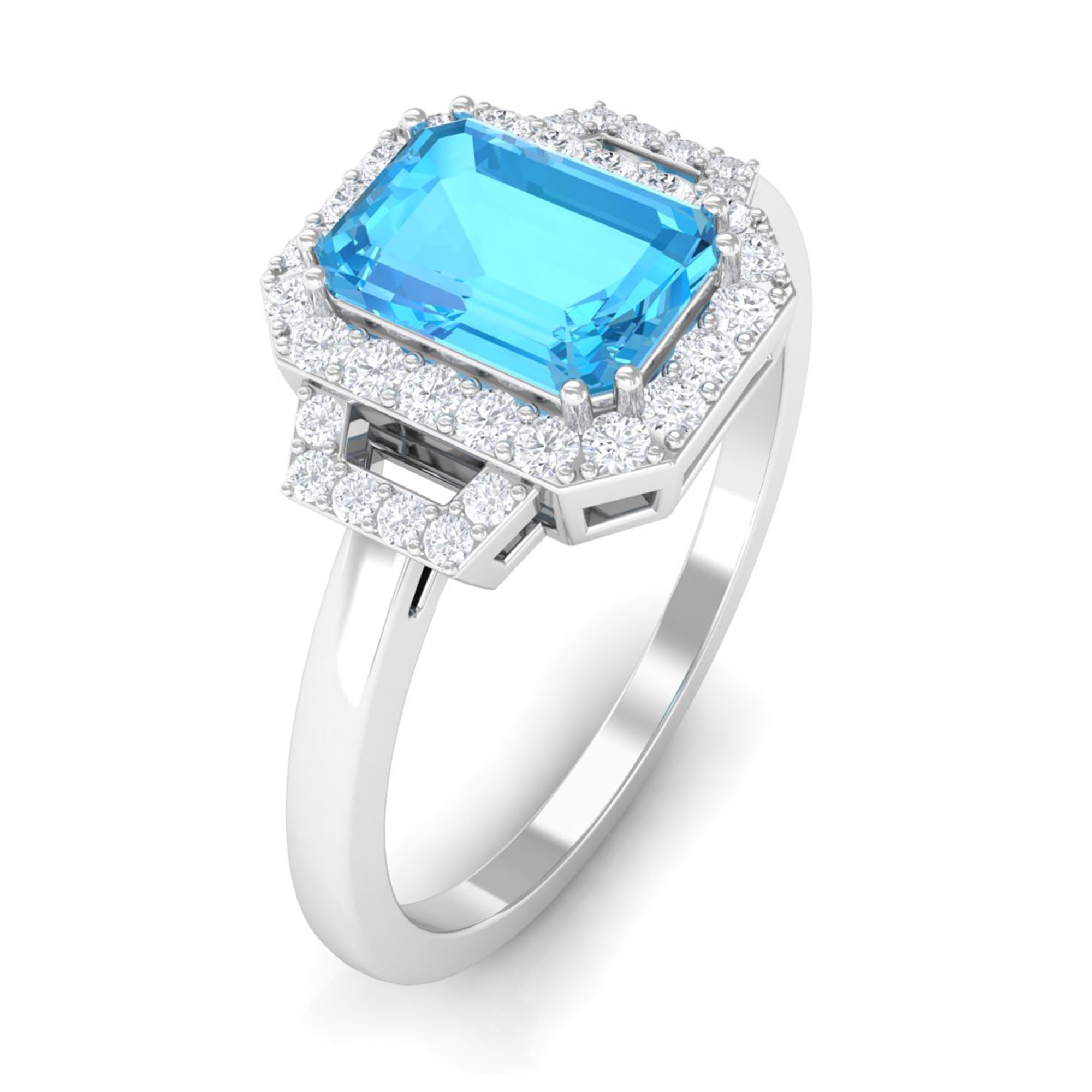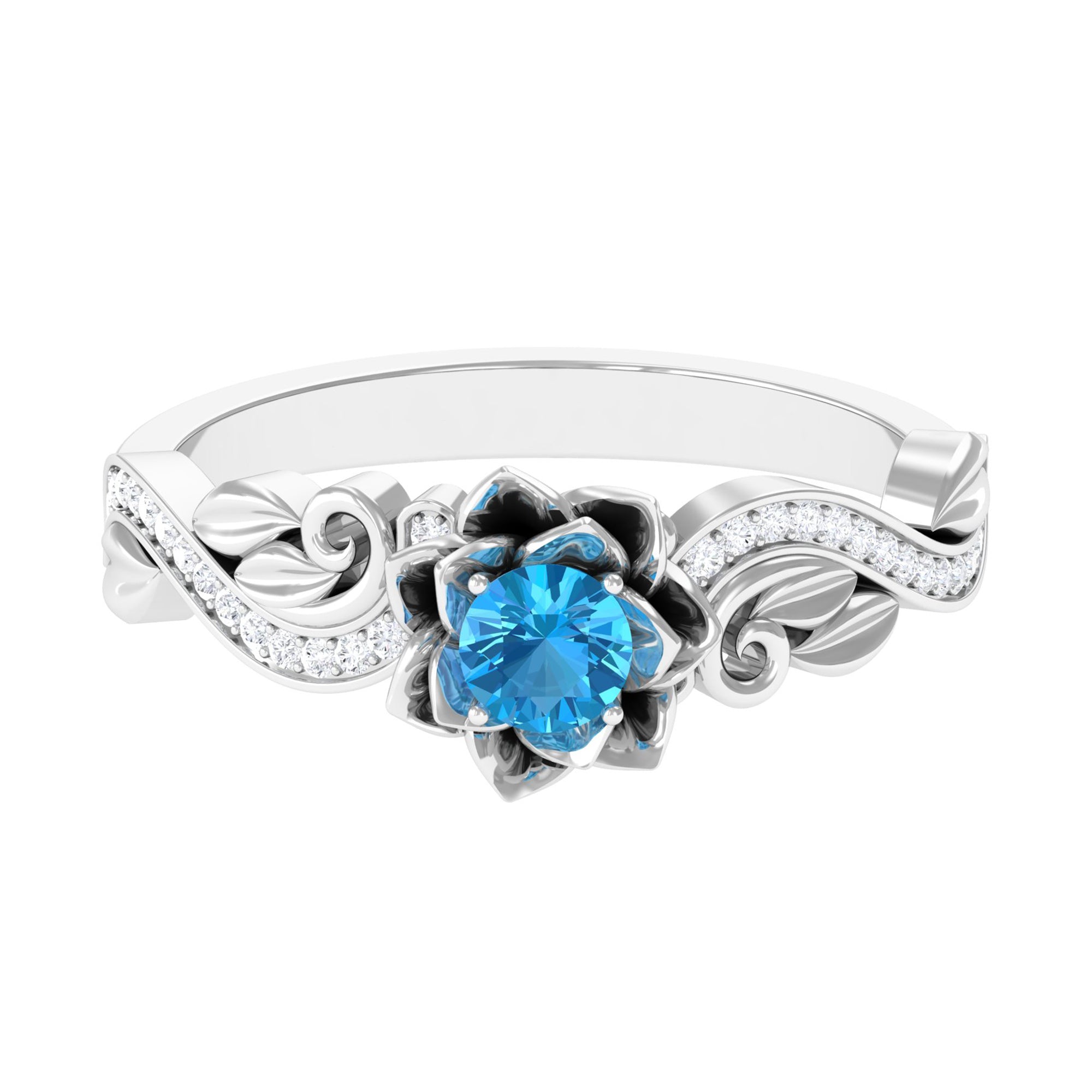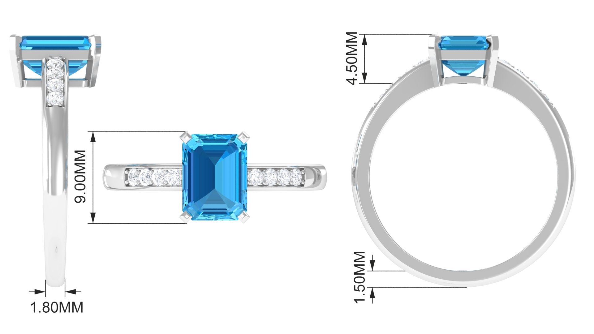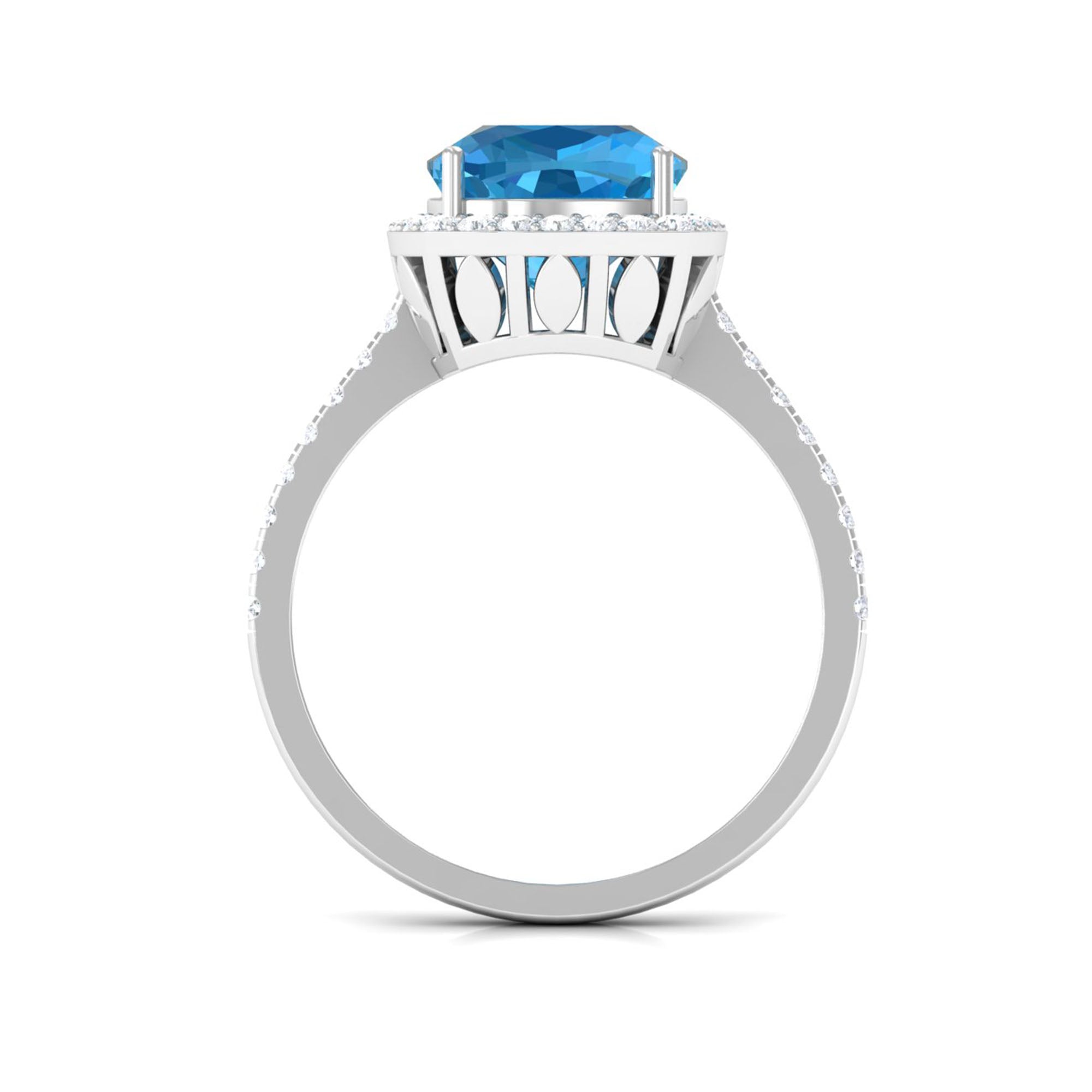 • Color: The color specific to Swiss blue topaz engagement rings is defined by bright and light shades falling in the mid-range of London Blue to Sky Blue Topaz.